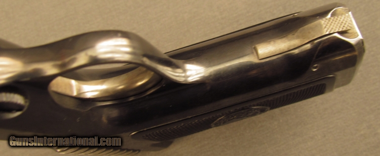 Description: Serial #130914, .32 ACP, 3 3/4" barrel with an excellent, bright bore. This is a handsome pistol that retains 98% plus of the original lustrous blue finish with only some mild silvering at the muzzle and along the exposed edges and projections. The trigger and magazine release have muted color case-hardening remaining and the checkered hard rubber grip panels are in excellent shape with only some mild flattening of the points and a few miniscule surface scratches and marks. The pistol comes with a single original magazine and is housed in a modern two-piece black box with reproduction Savage labels. Also included is a 2011 dated letter from Savage historian John Callahan in which he states the factory ledgers list a warehouse acceptance date of May 27, 1915, and a shipping date of May 28, 1915, to Kirkwood Bros. in Boston. A further work number is attached to the pistol (6710) which seems to indicate a return to the factory for repair sometime between 1920 and 1921. This is an excellent example of a rather scarce Model 1915 Hammerless and would make a great addition to any collection. {Ref. "Savage Pistols" by Bailey Brower Jr.; 2008} FFL or C&R SOLD Curio/Relic: Yes Manufacturer: Savage Model: 1915 Serial Number: 130914 Caliber Info: .32 ACP Gauge Info: .32 ACP |