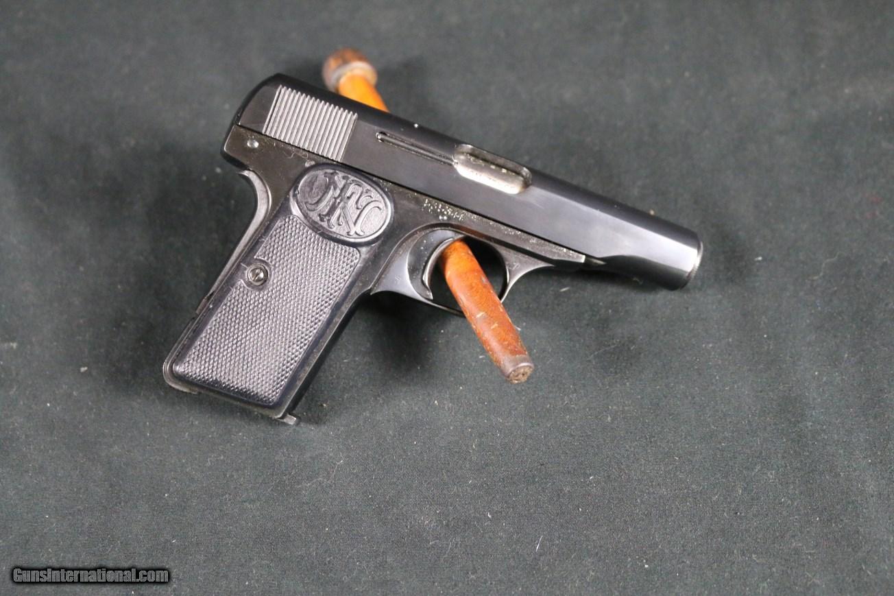 Description: MADE IN BELGIUM. VERY GOOD CONDITION WITH FACTORY MAG. PLEASE ADD $25 FOR SHIPPING. RETURN POLICY: We offer a 3 day return policy. Items must be returned in the same condition as received. Notification must be made with-in 3 days of receipt at dealer. All fees are non-refundable no exceptions. LAW-A-WAY: We offer a 60 day law-a-way with a 1/3 up front and 1/3 every 30 days. Once started all sales are final with no exceptions. CONDITIONS OF SALE: Art’s Gun Shop makes no express or implied warranty or representation with respect to items being advertized or sold. In no event shall Art’s Gun Shop be held responsible for correctness of description, representation, or warranty of items sold by them or their representatives. All items sold as collector items. All liability concerning the use of any weapons purchased from Art’s Gun Shop or its representatives is assumed by the purchaser. SOLD Manufacturer: FN Bore: VERY GOOD Condition: VERY GOOD Metal Condition: VERY GOOD Bore Condition: VERY GOOD Action: SEMI Triggers: SINGLE Finish: BLUE Extras: NONE |