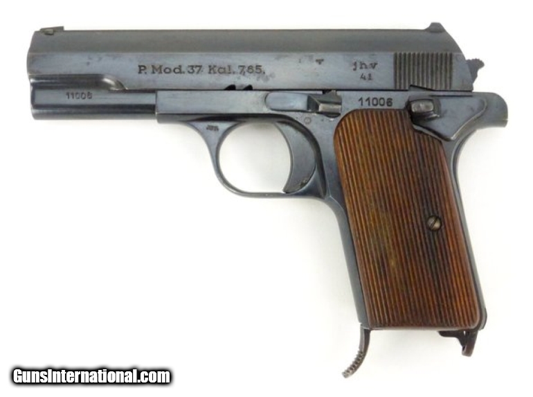 Description: " Hungarian Metalwarn 37 .32 ACP caliber pistol. Produced in 1941 for the German Military. Matching serial numbers including the magazine. Excellent condition bore and grips. About 90% finish with patina. Very good plus condition. SOLD Curio/Relic: Yes |
