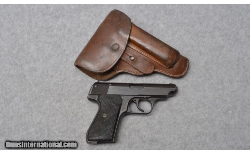 Description: German military marked, no magazine, original flap holster SOLD Manufacturer: S/N - 3499XX Caliber Info: 7.65 (.32ACP) Metal Condition: Good Bore Condition: Good Barrels: 3.5 Triggers: Factory Stock: Black Plastic Grips Weight: 24 oz Sights: Fixed Item Location: West Chester, OH |