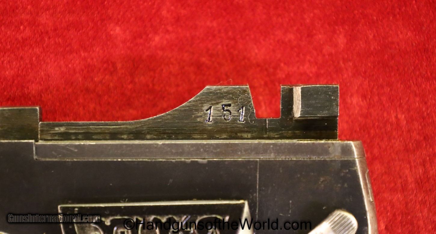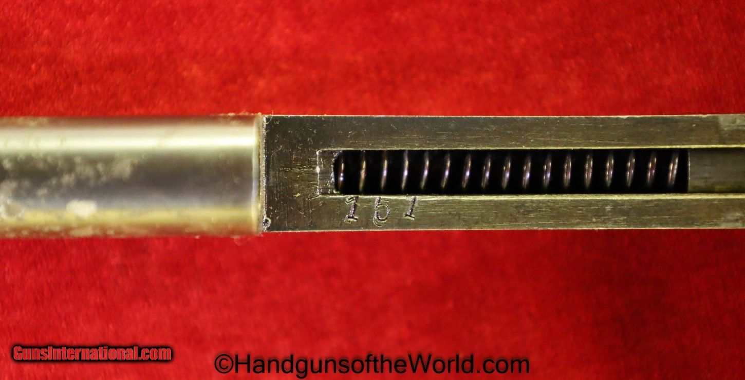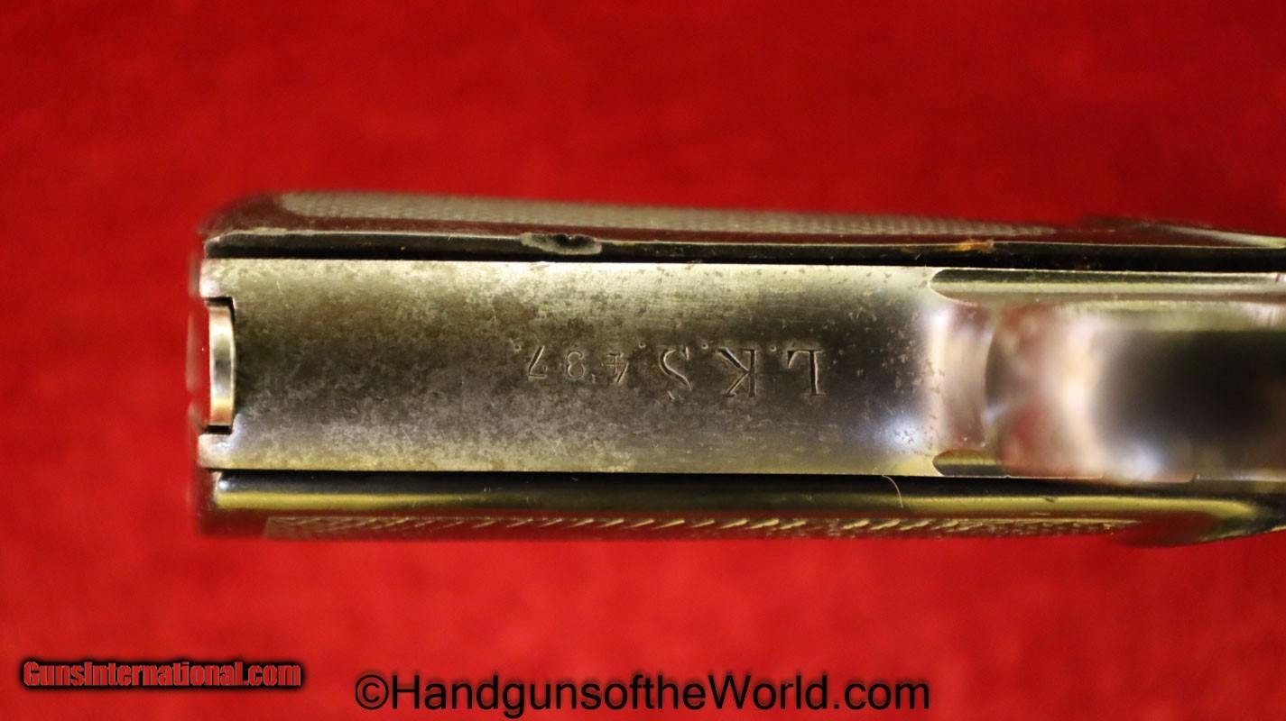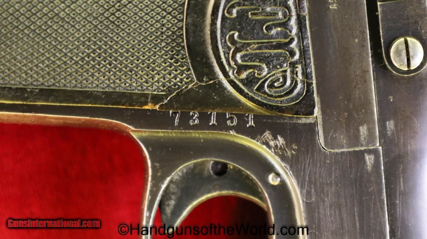 Description: Langenhan Army Model, 7.65mm. This is German Crown N proofed and had the FL logo horn grips-right panel show a crack. This is German Military Division marked LKS 497 on the front strap. The blue rates about 80% and the bore is excellent. Curio/Relic: Yes Handgun Caliber: .32 ACP (7.65x17mm Browning SR) Manufacturer: Langenhan Model: Army Price: $745.00 Shipping: $35.00 Contact Seller |