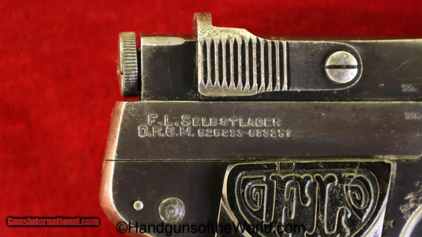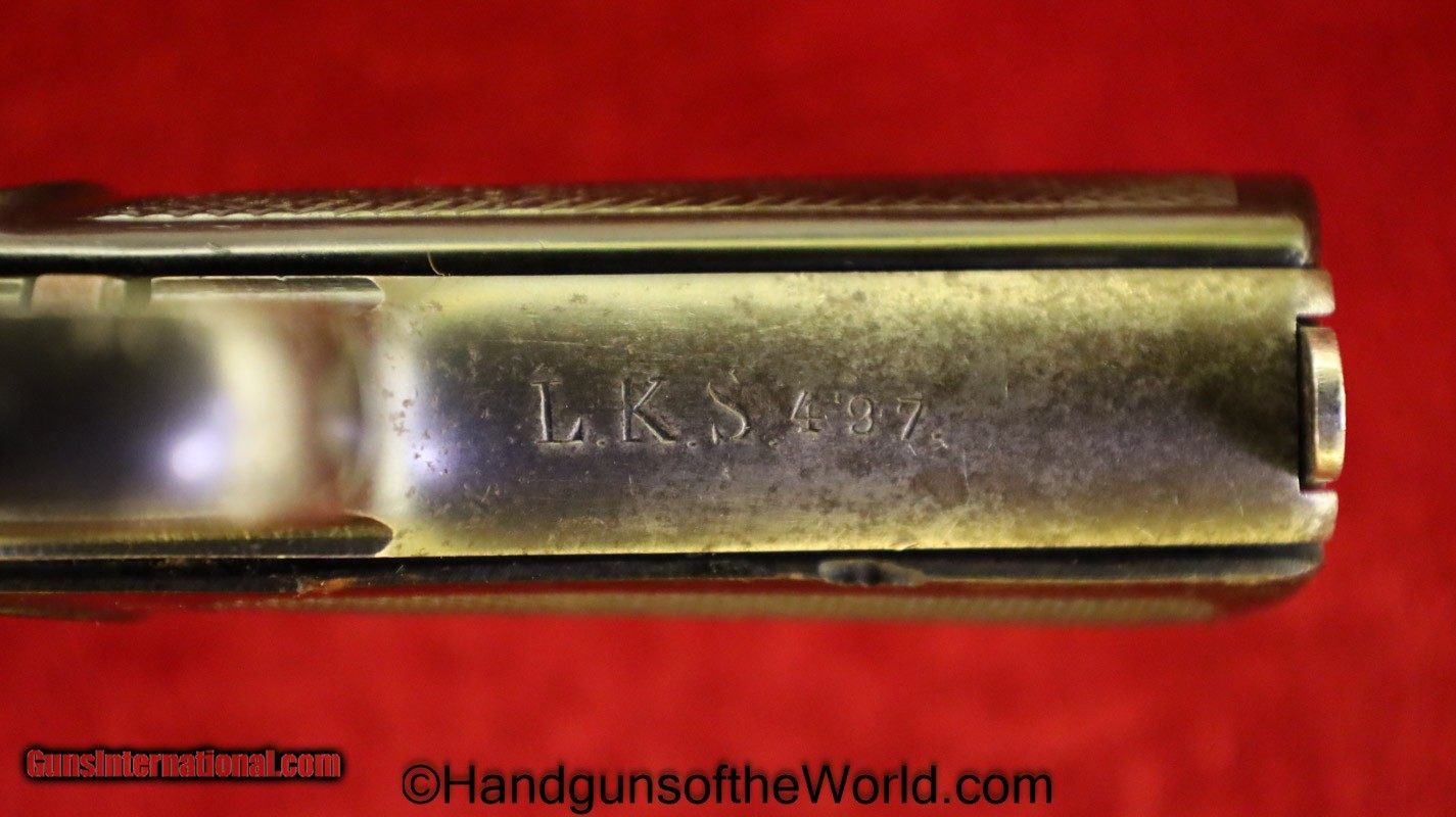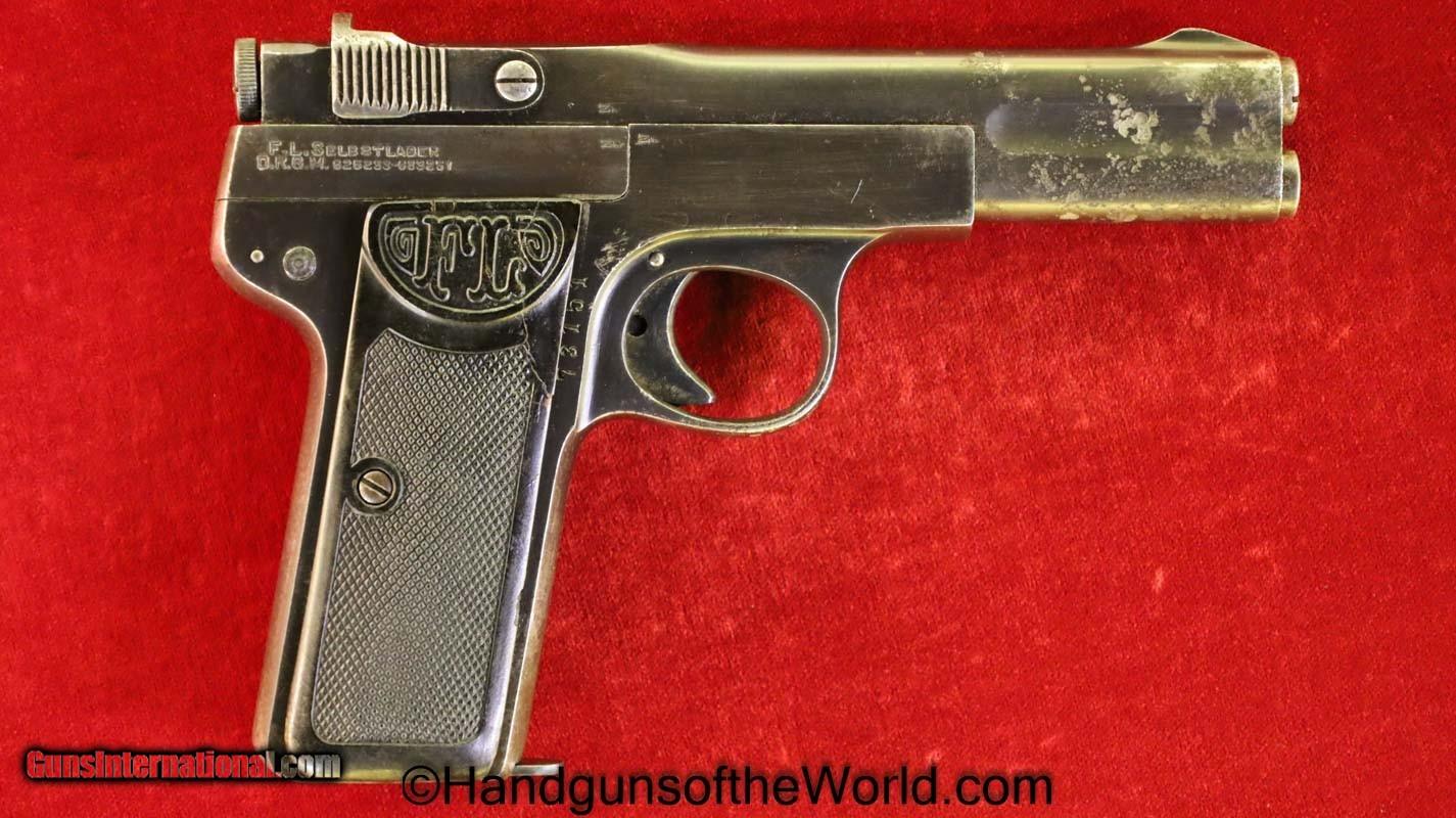 Description: Langenhan Army Model, 7.65mm. This is German Crown N proofed and had the FL logo horn grips-right panel show a crack. This is German Military Division marked LKS 497 on the front strap. The blue rates about 80% and the bore is excellent. Curio/Relic: Yes Handgun Caliber: .32 ACP (7.65x17mm Browning SR) Manufacturer: Langenhan Model: Army Price: $745.00 Shipping: $35.00 Contact Seller |