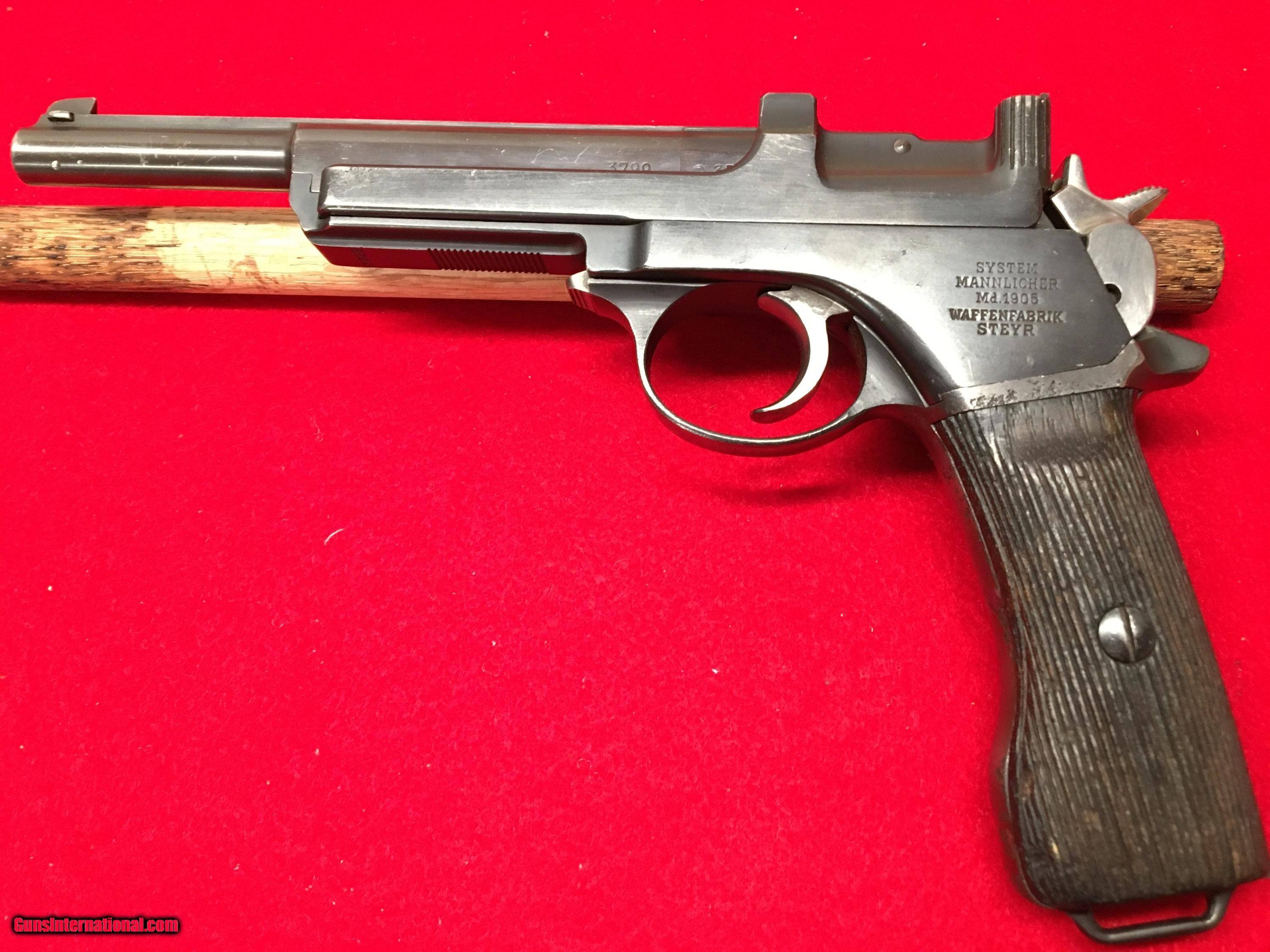 Description: Mannlicher Argentina Model 1905. Cal 7.65mm. This is the model where the Argentina Crest on the right side was machined off. In very good condition for its age. SN 3799 Bore is excellent. Sold: AS IS. Payment: USPS Money Order, Certified Check, Personal Check. Buyer pays shipping, handling and insurance costs; flat rate $35 SOLD Manufacturer: Mannlicher Model: 1905 Serial Number: 3799 |