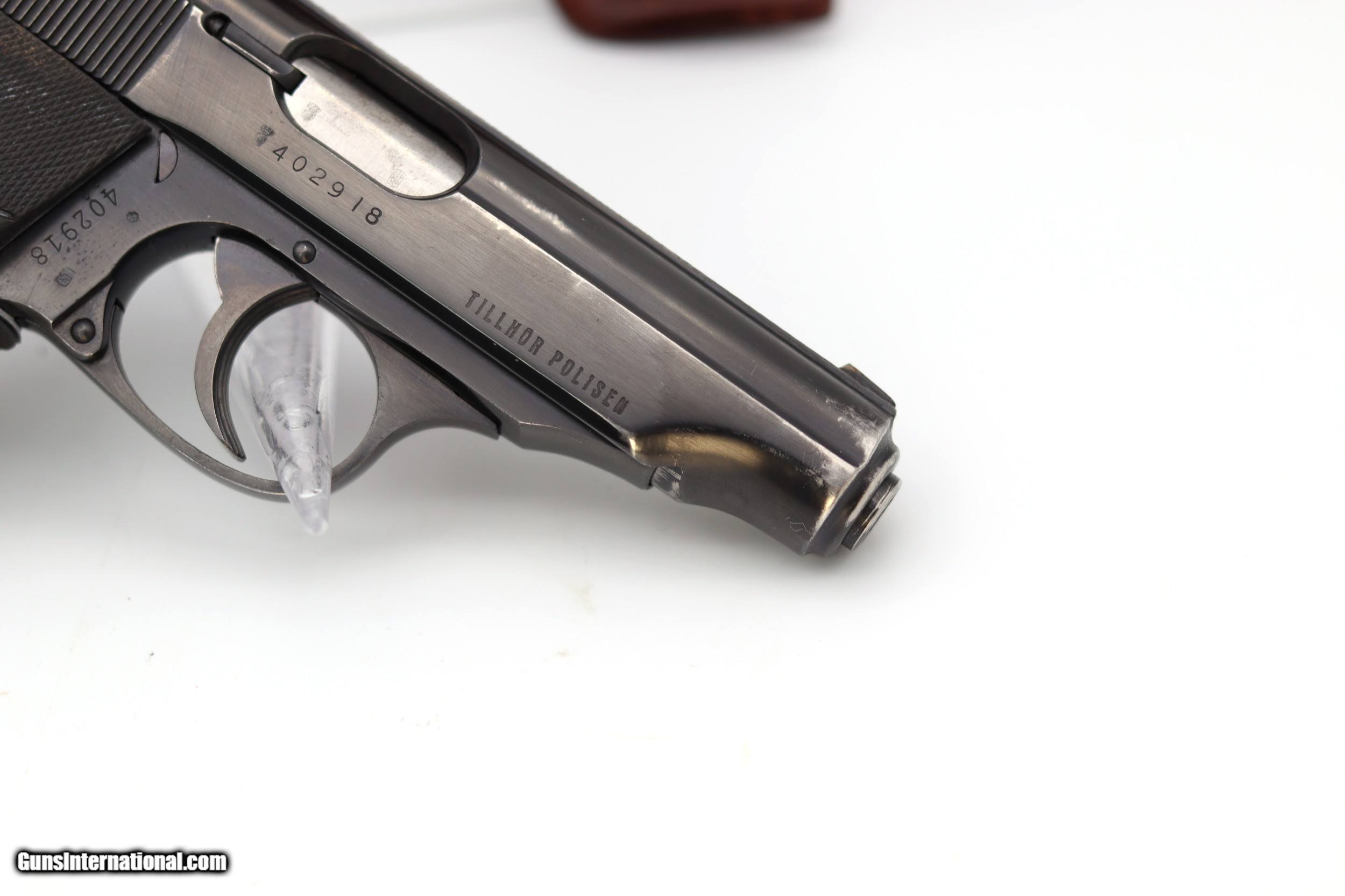 Description: Swedish police marked Manurhin PP in .32acp ships with holster and spare magazine. pachmayr grips installed as issued by the swedish PD. C&R ok. Shipping $30 lower 47 no Cali sales. FL buyers sales tax applies. No local pickup. SOLD Curio/Relic: Yes Handgun Caliber: .32 ACP (7.65x17mm Browning SR) Manufacturer: Manurhin Model: PP Item Location: 352 |