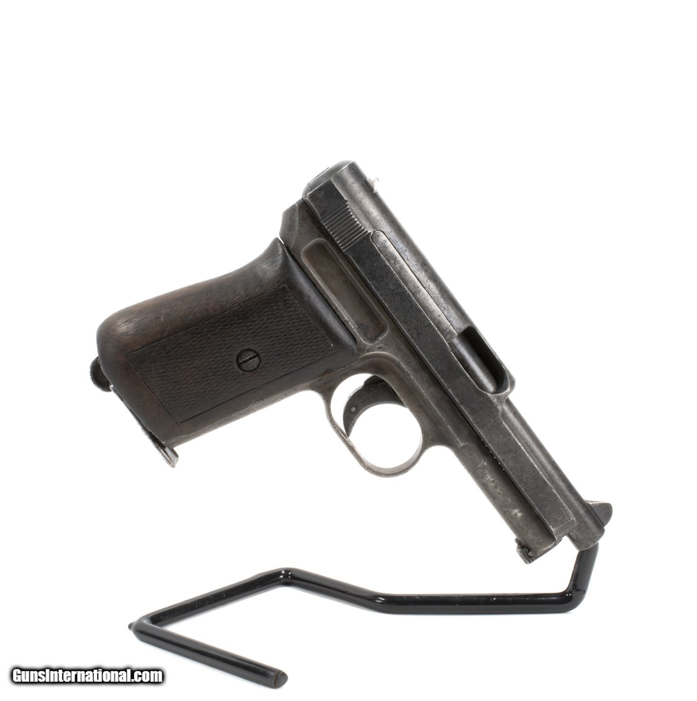 Description: Guns Listing ID: 586404 Mauser Model 1914 Handgun .32ACP w/ Matching Serials & No Import Mark Manufacturer: Mauser Model: 1914 Condition: Good Caliber/Gauge: 32 ACP Action: Semi-Auto Barrel Length: 3.25\" Capacity: 8 Finish: Black Grips: Wood Origin: Made in Germany What‚s Included: Firearm & (1) 8-rd magazine only. • Please be aware that we have not test-fired this firearm. Unless stated otherwise, expect this firearm to fire and function safely. Manufacturer: MAUSER Model: Model 1914 Caliber Info: .32 ACP Condition: Used - Non-Certified Barrels: 3.25" BARREL Action: SEMI AUTOMATIC Finish: black Price: $399.99 Contact Seller |