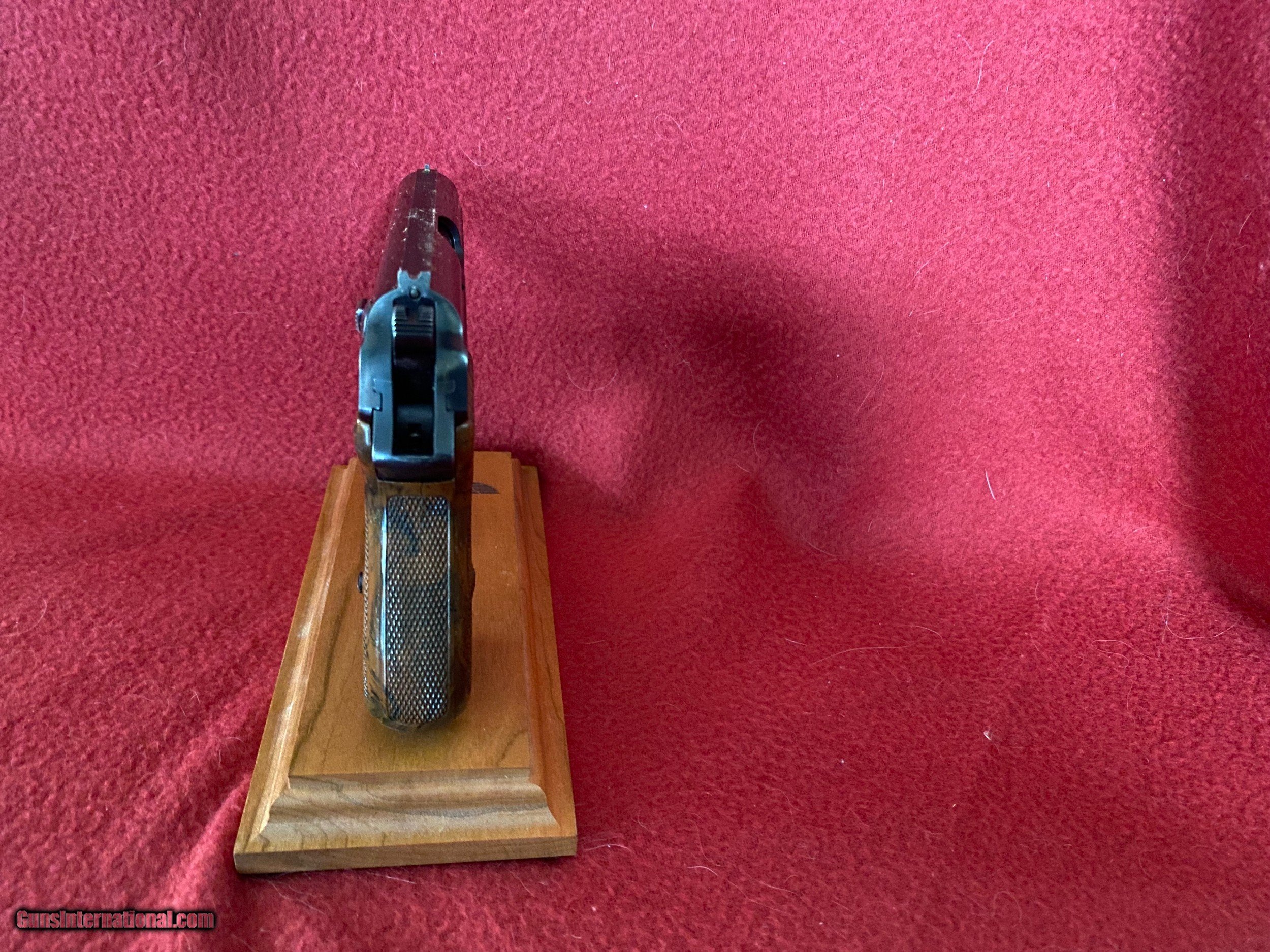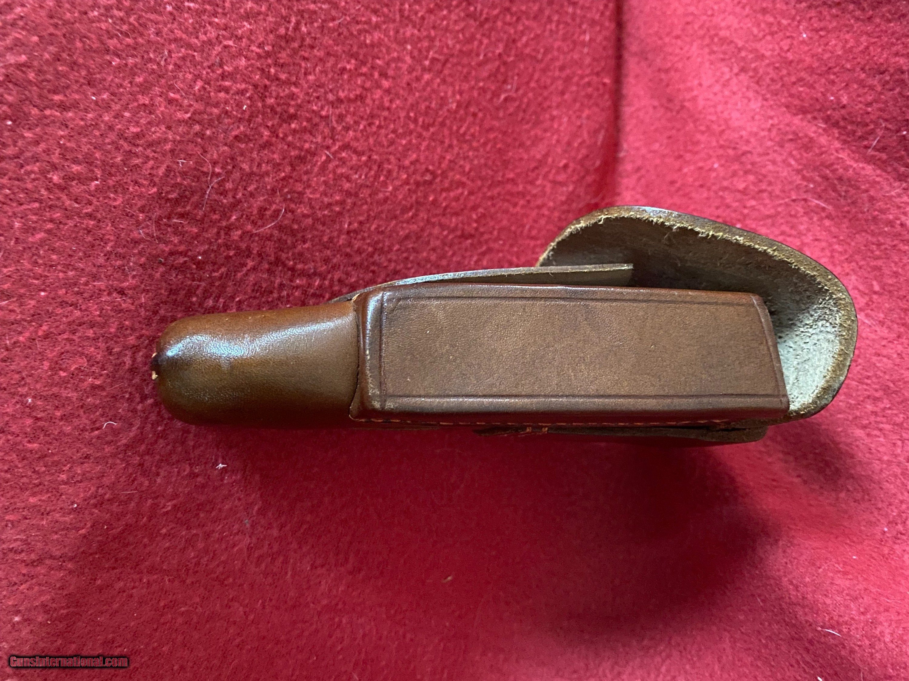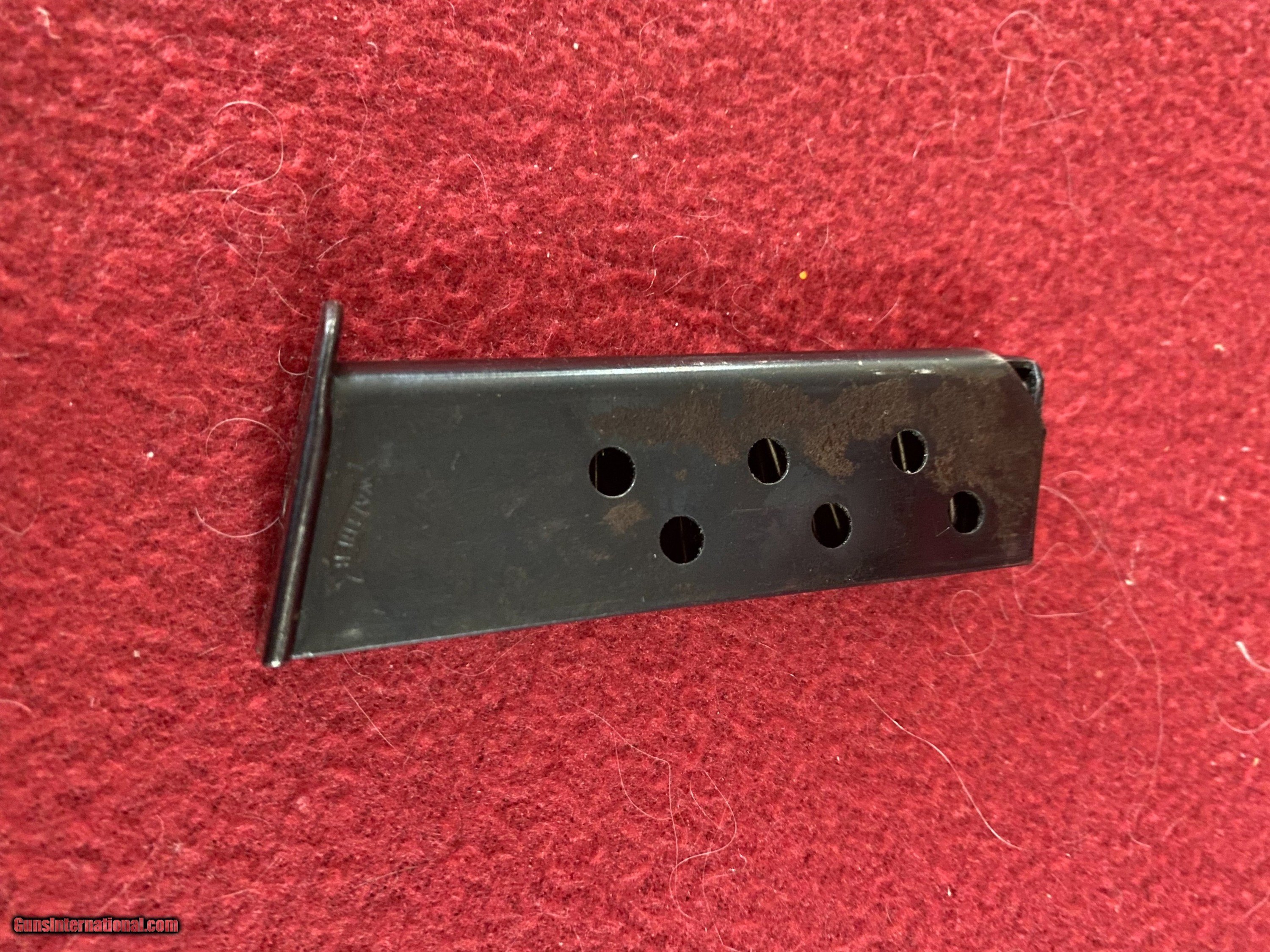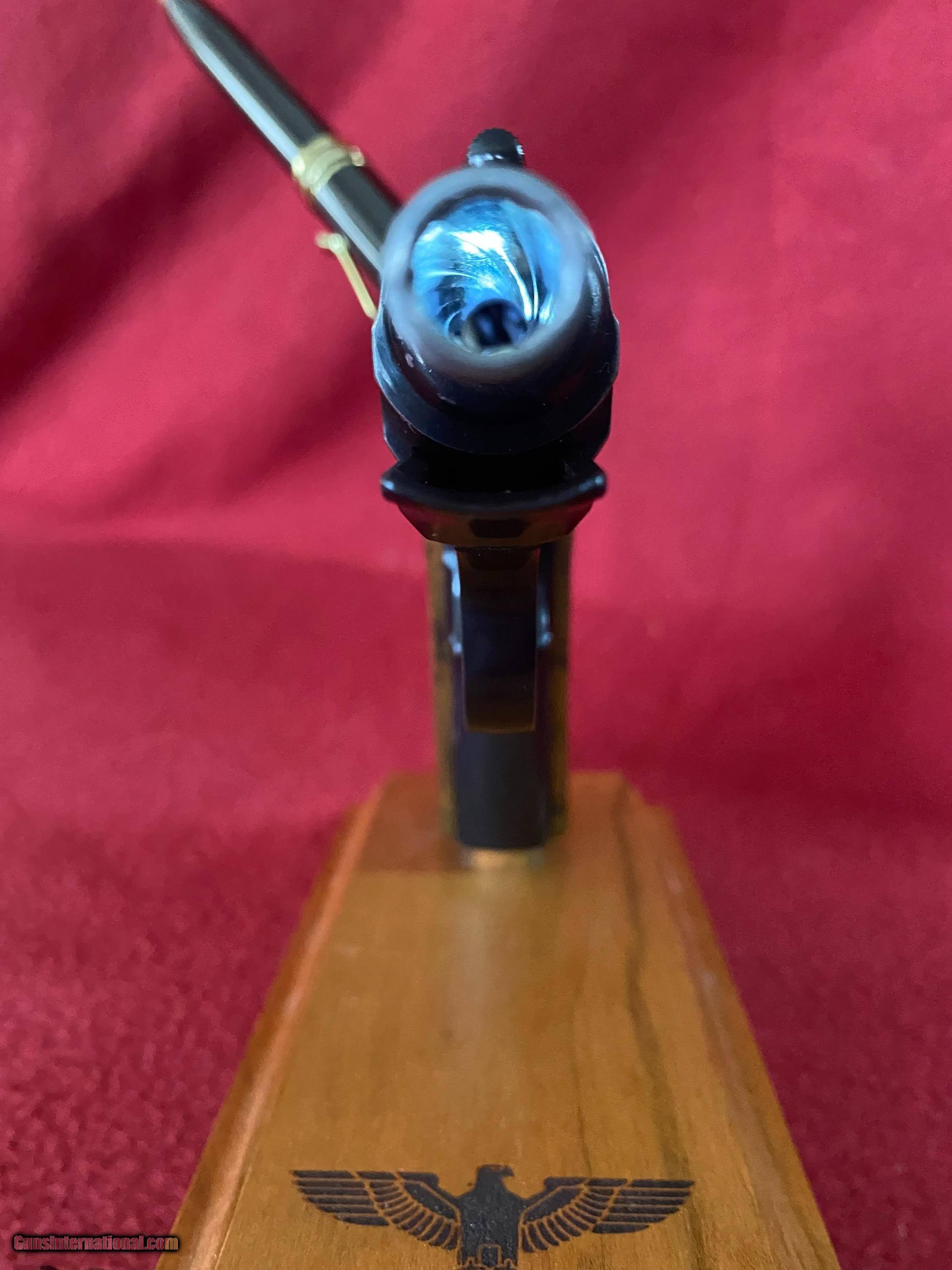 Description: WALTHER 807248 PPK RZM "RZM" Marked Pre-World War II Walther PPK Semi-Automatic Pistol Walther PPK Semi-Automatic Pistol and Holster Manufacturer: Walther Model: PPK Gauge: 7.65 mm auto Barrel: 3 1/4 inch round Finish: blue Grip: Excellent, retains 97+ plus of the original blue finish with some very light holster type wear on the leading edges and some very slight thinning on the front strap. The grip is very fine with slight warping on the bottom, minimal handling marks and crisp checkering. Mechanically excellent. The holster is excellent with minimal wear. Description: The Reichszeugmeisterei (RZM) served as the quartermasters office of the National Socialists and later became the chief authority on textiles in the Third Reich. Radium night and notch sights, and standard markings, with "crown/N" proofs on the barrel, chamber hood and slide, and the addition of the etched circular "RZM" logo on the left side of the slide between the model marking and the serrations. Serrated ring hammer, 90 degree safety and checkered brown plastic "WALTHER" banner grips with matching colored grip extension on the magazine. Includes a Leading Edge Holster in excellant shape."D.R.G.M." over the crossed rifle " $50.00 Shipping SHIP TO FFL ONLY SOLD Curio/Relic: Yes Handgun Caliber: .32 ACP (7.65x17mm Browning SR) Manufacturer: Walther Model: PPK Condition: Great Metal Condition: Beautiful Bore Condition: Mint |