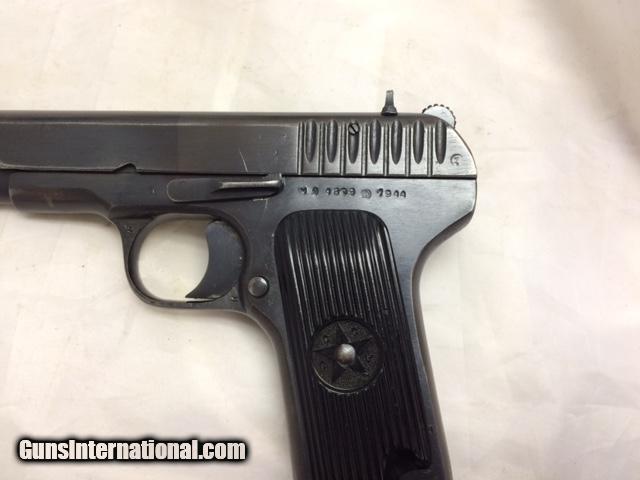 Description: This must be one of the best conditioned Russian 1944 dated TT33 pistols out there. It is all matching, including the frame, slide, barrel, hammer group and the magazine! It retains about 95% of its original late war blue with just a touch of holster wear. Excellent original grips and a very good bore. Very few late war Russian TT33s ended up on this side of the pond, as the majority of the Russian siderams, captured by the Germans, were from the earlier years, and were captured in 1941. Majority were made at the Tula Factory, with Izhevsk factory guns being very uncommon. Chambered in hard hitting 7.62X25mm cartridge, which was basically a hotter loading of a .30 Mauser Broomhandle cartridge, it was build like a tank, made to withstand severe temperature fluctuations and was practically indestructible. The ammo is easily availbale now and is inexpensive. 3-day inspection. FFL or C&R (except in states where a full 01FFL is required - CA, NJ and others). No sales to NY city, Chicago or any localities, where prohibited. I will ship to NY state, but the gun would have to go through a full FFL on my end with an extra $40 fee to the buyer. PLEASE, SEE MY OTHER LISTINGS FOR MORE COLLECTIBLE MILITARY PISTOLS. SOLD Curio/Relic: Yes |