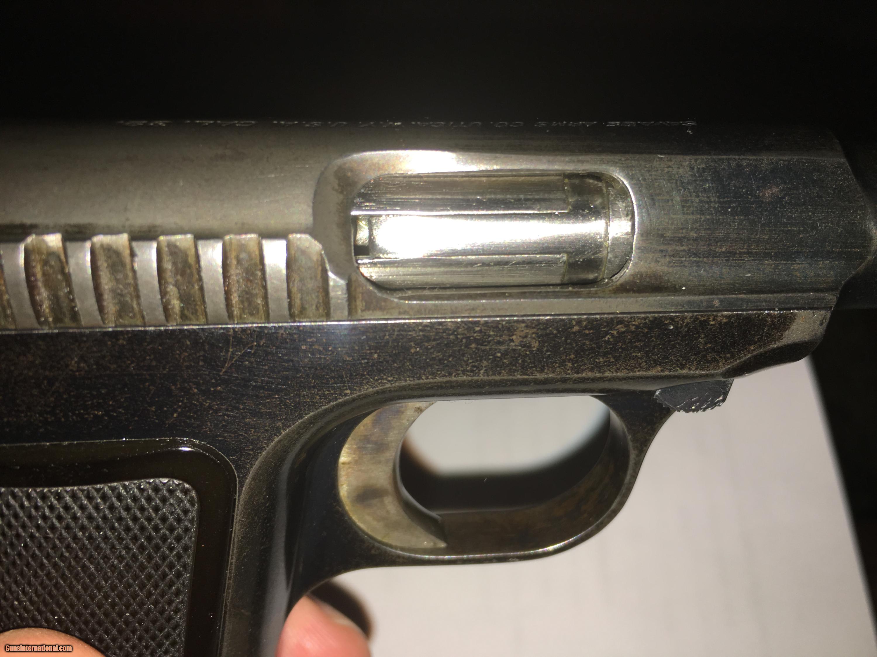 Description: savage 1915 and its a 32 caliber and the 1915 is the rarest of the savage autos and it have better than 80% of t he bluing. and in nice condition This is another savage from my savage auto collection and have lot more buyer to pay shipping and insurance and i will accept po money order and ship to ffl license dealer Check out my other savage auto items including original books and catalogs SOLD Curio/Relic: Yes Manufacturer: savage arms Model: 1915 Serial Number: 134539 Caliber Info: 32 |