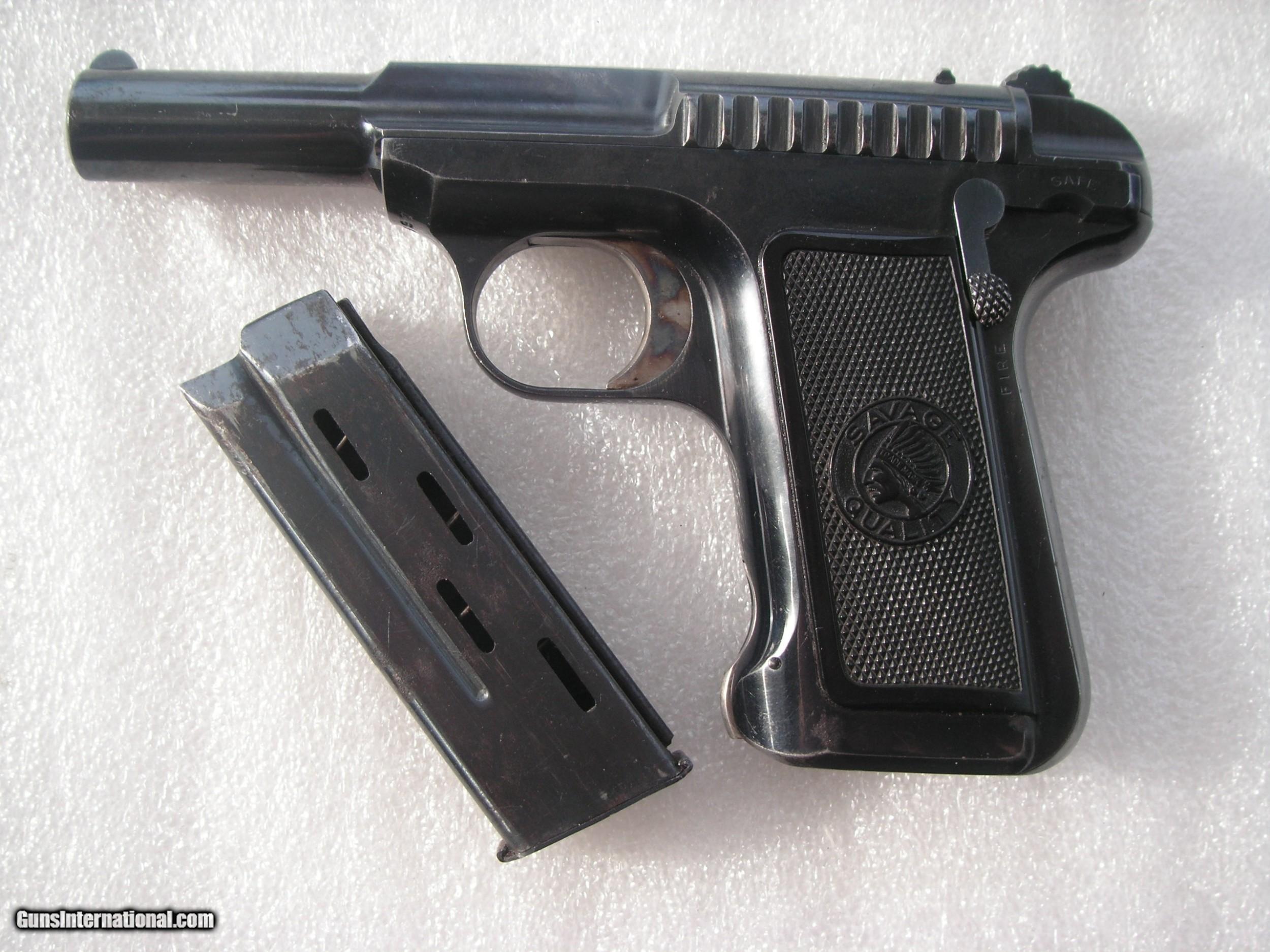 Description: SEE THE PICTURES OF THIS BEAUTIFUL RARE CONDITION SAVAGE MODEL 1907 CALIBER .32 ACP (7.65mm) IN EXCELLENT ORIGINAL CONDITION SAVAGE MODEL 1907 CALIBER .32 ACP (7.65 mm). THESE PISTOLS HAVE UNIQUE HIGH-QUALITY DESIGN AND THEY ARE HIGHLY COLLECTIBLES. THEY ARE IN THE SAME TIME ARE EXCELLENT FOR THE CONCEALED PERSONAL AND HOME PROTECTION. THESE PISTOLS WERE PRODUCED FROM 1910 TO 1917. We offer three days of the inspection. Only not fired changed parts or condition guns would be accepted. Return shipping cost is the buyer expense. We accept bank & postal money orders or personal & business checks, but those take time to clear. We also offer 90 days layaway with 25% down & three more payments of 25% per month. The layaway plan does not have 3 days inspection privileges; therefore there is a “NO RETURNS” policy. If you have offered to buy my guns, and the payment has not made soon after (from 3 to 5 days), I will not guarantee you will be the buyer of it. I can secure your purchase only when you have paid for it. If your payment comes too late, I will return it back to you. Please check our other nice listings. SAFETY NOTICE: Buyer solely responsible for following all safety requirements in handling guns. The buyer agrees to hold the seller harmless against damages, injury, or death caused by defective merchandise or ammo. NOTICE: DISCLAIMER OF LIABILITY ADT Sporting Goods and Collectibles assumes no responsibility for product malfunction or for physical injury or property damage resulting in whole or in part from criminal or negligent use of the product, improper or careless handling, unauthorized modification, use of defective, improper, hand-loaded or reloaded ammunition, customer abuse or neglect of the product, or other influences beyond ADT Sporting Goods and Collectibles direct and immediate control. Before using any firearms, always have it checked over by a licensed gunsmith. If you like, we can negotiate the terms of shipping. The offered shipping price includes insurance cost & priority mail cost only. SOLD Curio/Relic: Yes Handgun Caliber: 4.6x30mm, .32 ACP (7.65x17mm Browning SR) Manufacturer: SAVAGE Model: 1907 Serial Number: 35597 Bore: BRIGHT AND SHINY Condition: EXCELLENT Metal Condition: 98%+ Bore Condition: SHINY AND BRIGHT |