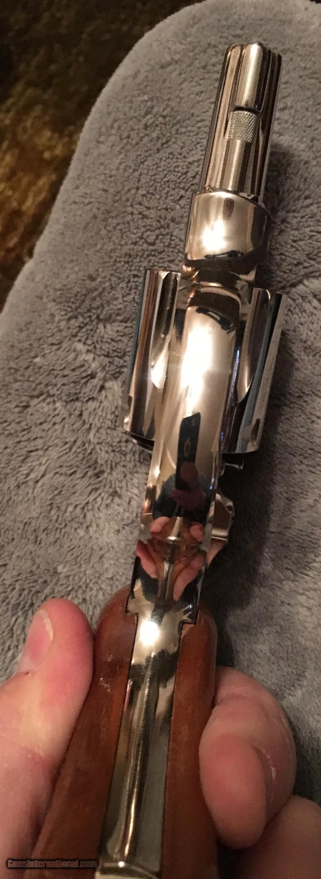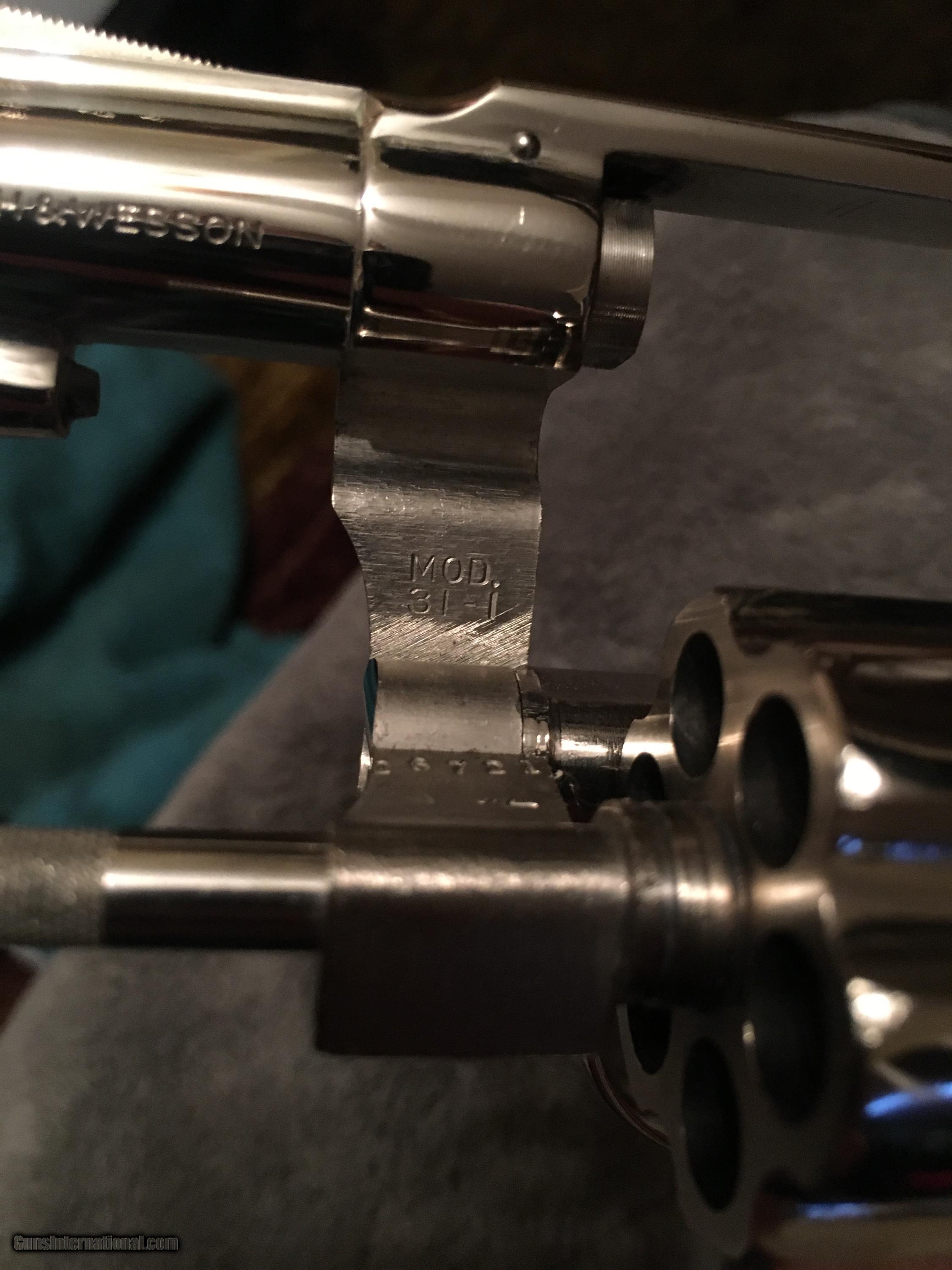 Description: A rare find indeed! A beautiful square butt 31-1 in mirrored nickel. 1 7/8ths inch barrel. Numbers matching wood grips. Bore is shiny. Lock up is tight. A fine .32 Smith and Wesson Long. You won't be disappointed. No box. Shipping included. SOLD Manufacturer: Smith and Wesson Model: 31-1 Caliber Info: .32 S and W Long Condition: used Metal Condition: excellent Wood Condition: excellent Bore Condition: excellent Finish: nickel Item Location: 37075 |