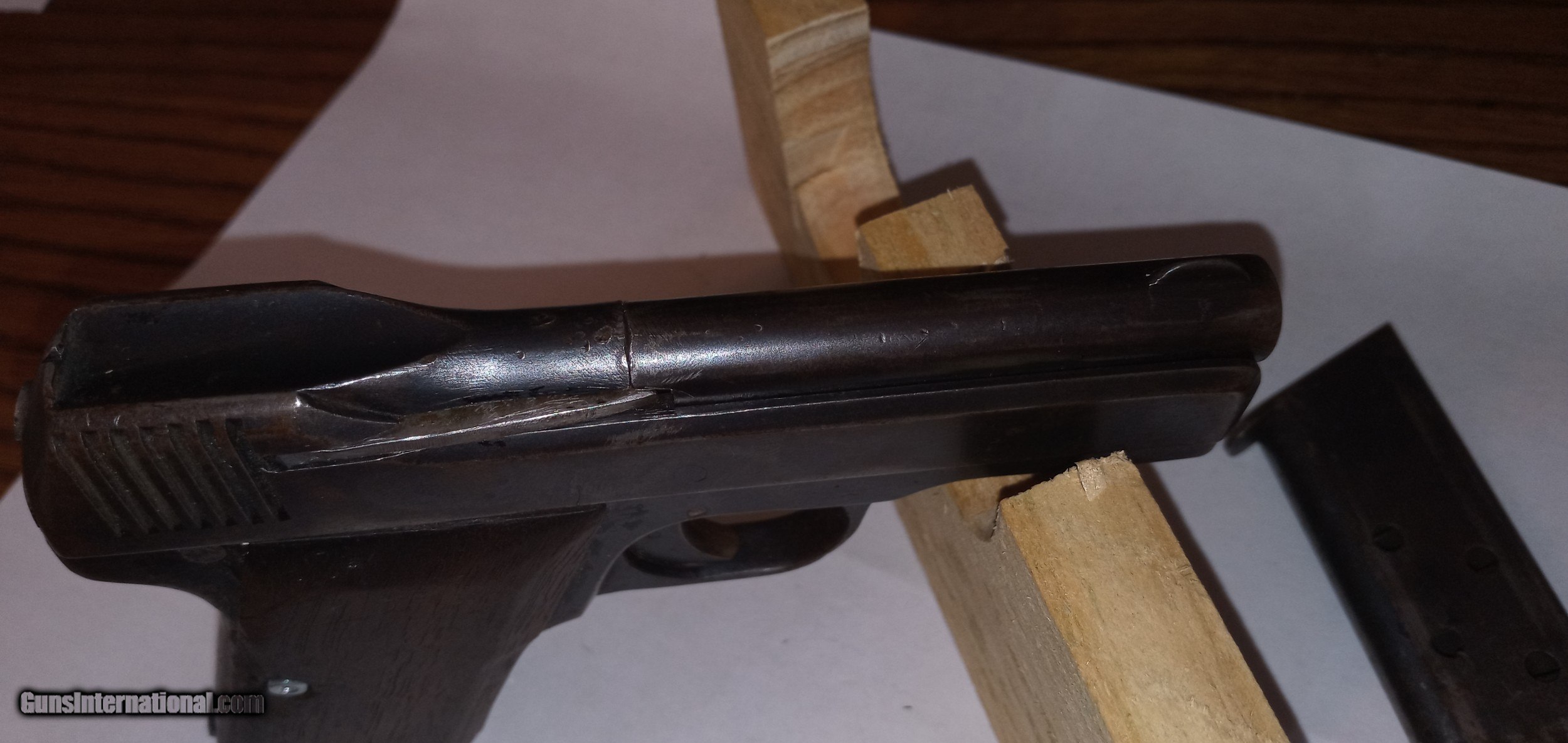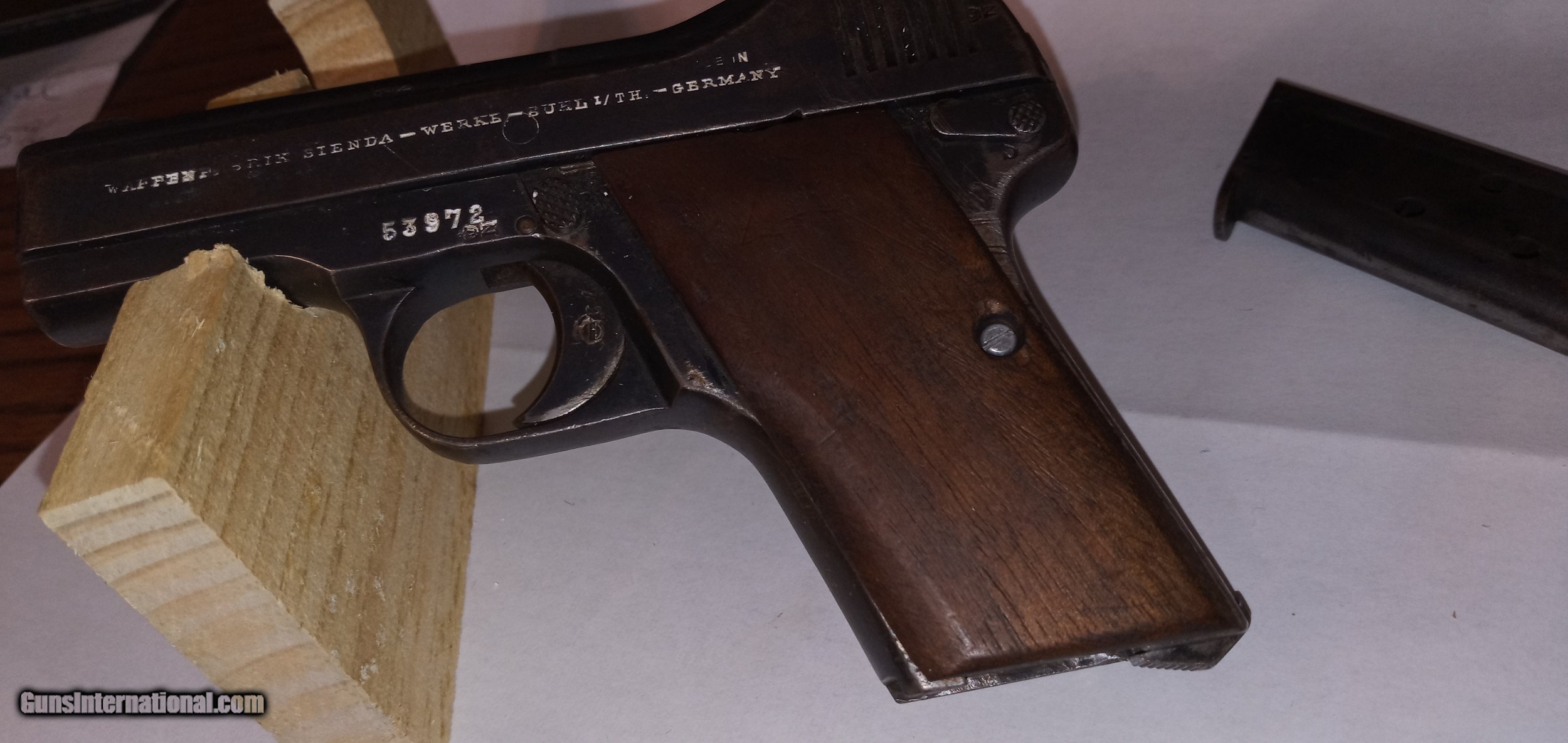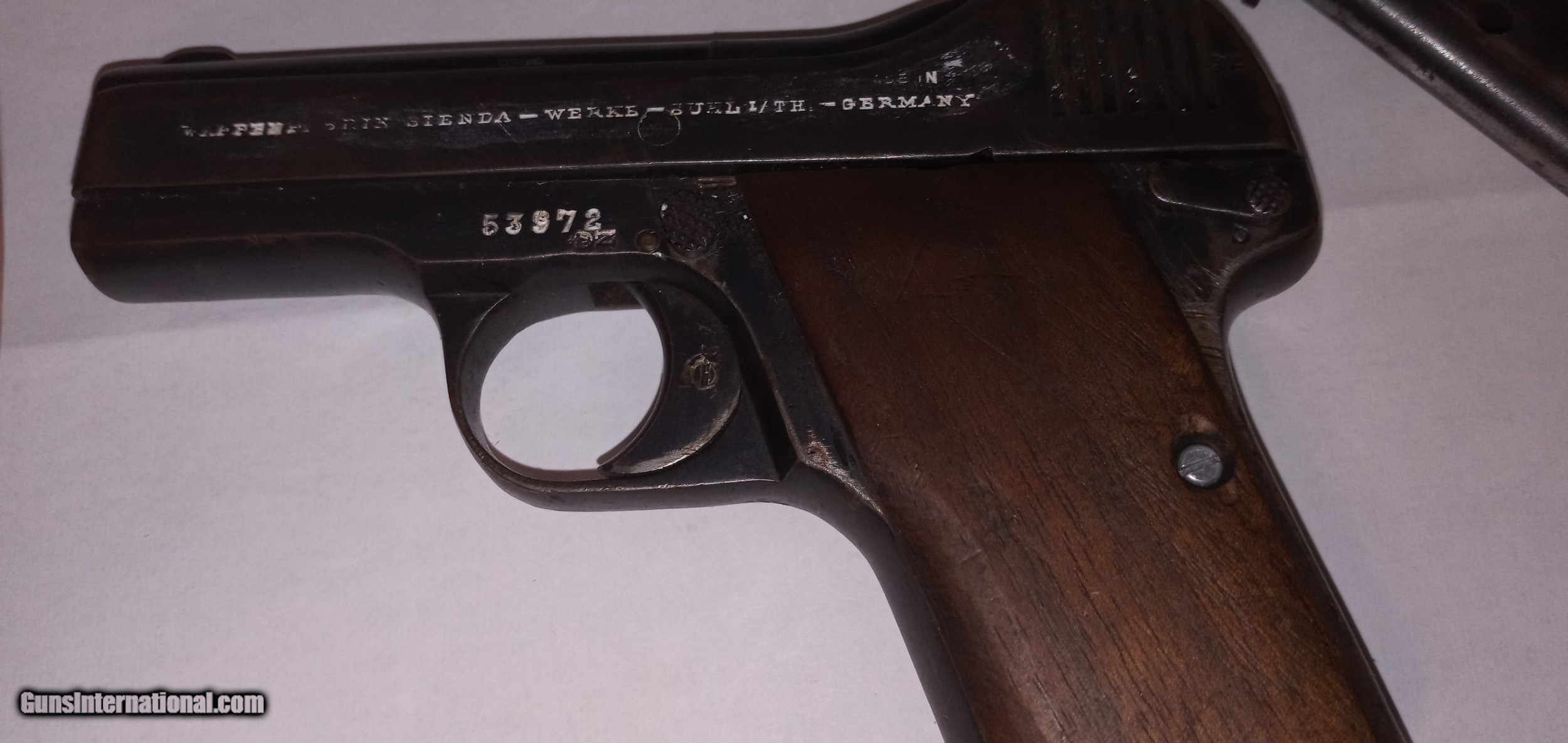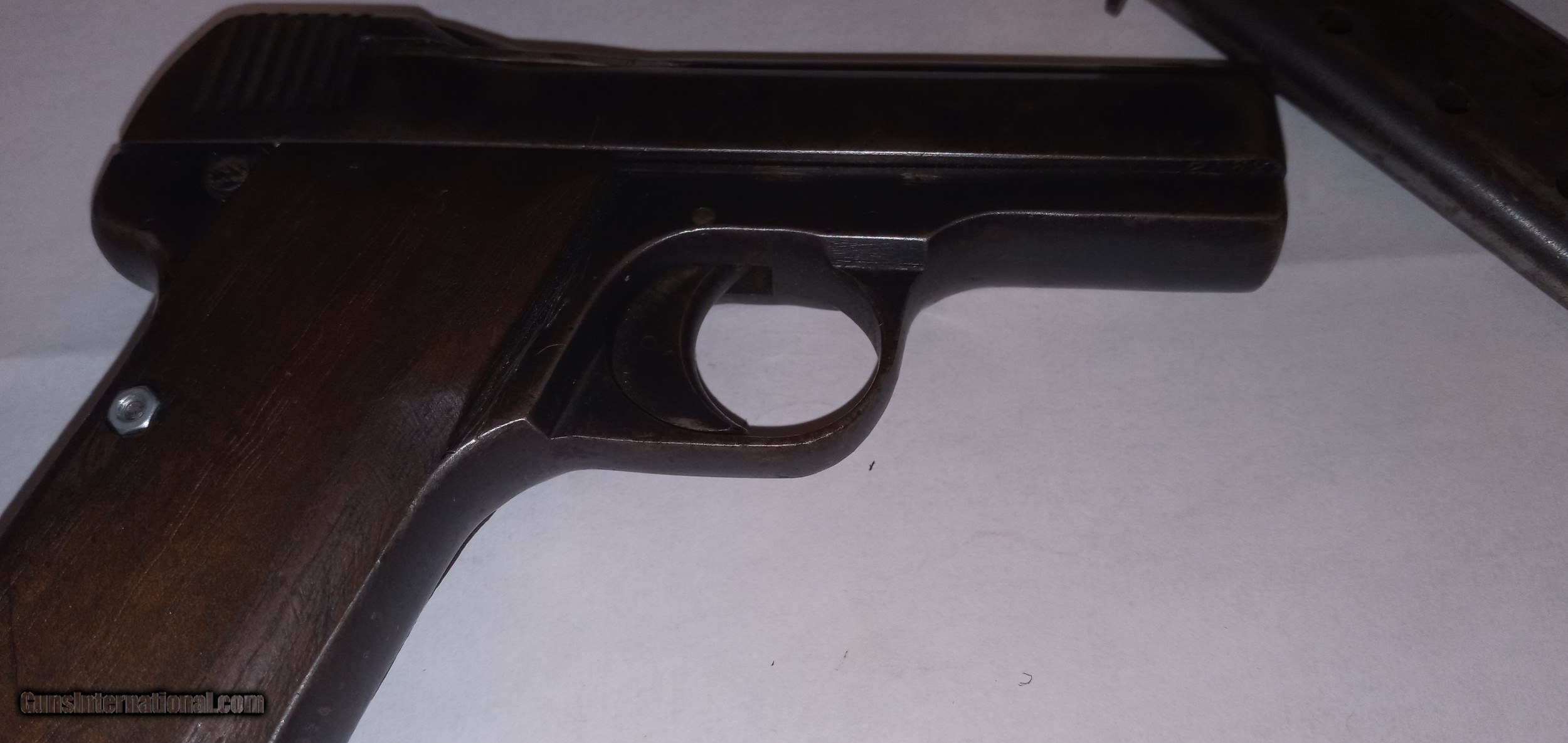 Description: stenda waffenabrik german 32 acp produced from 1918 to 1926 25000 made 50% blue good shinny bore grips are not original SOLD Curio/Relic: Yes |