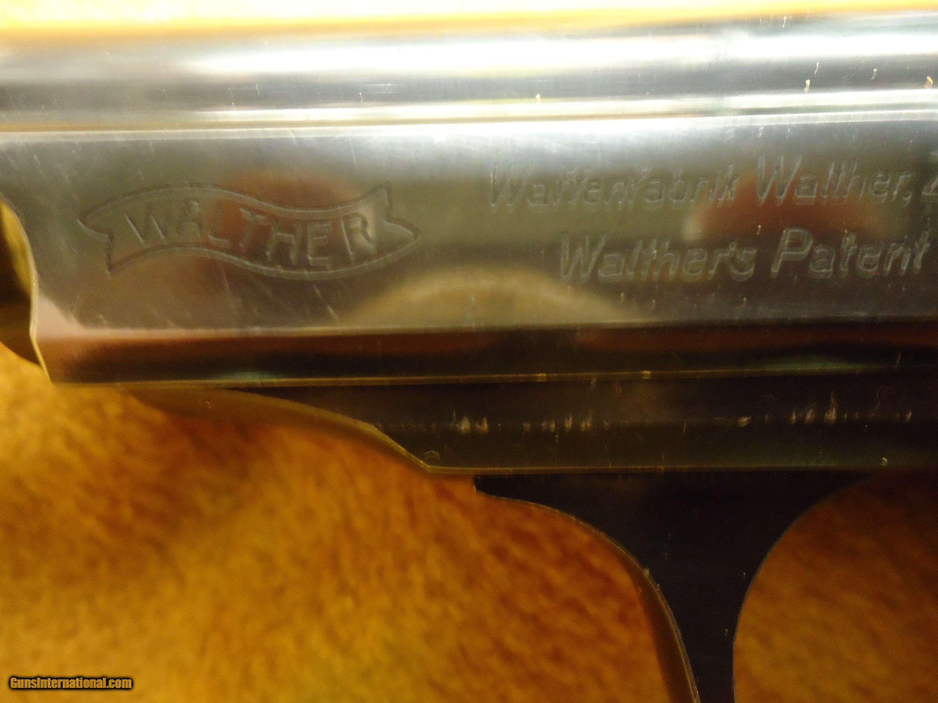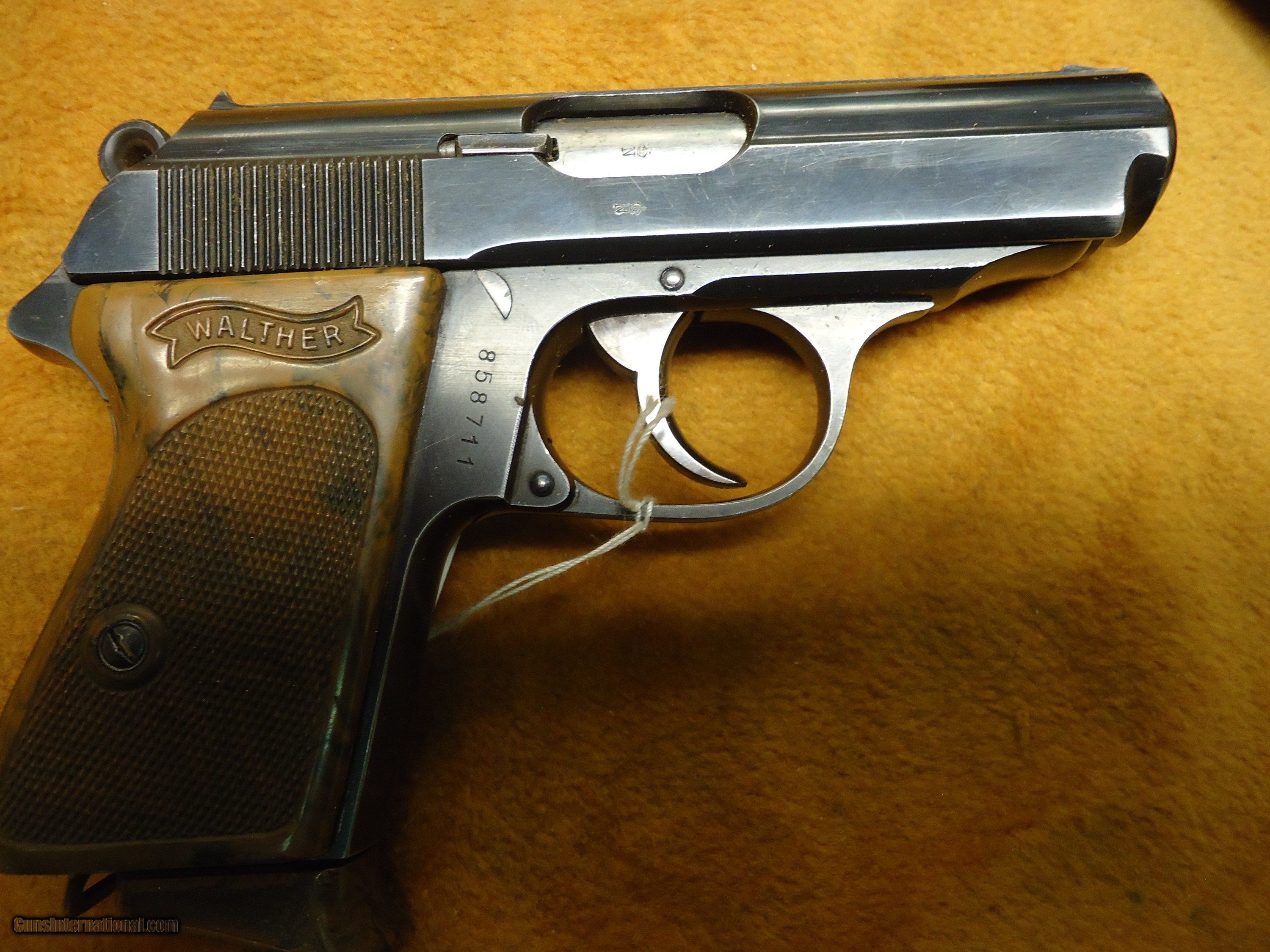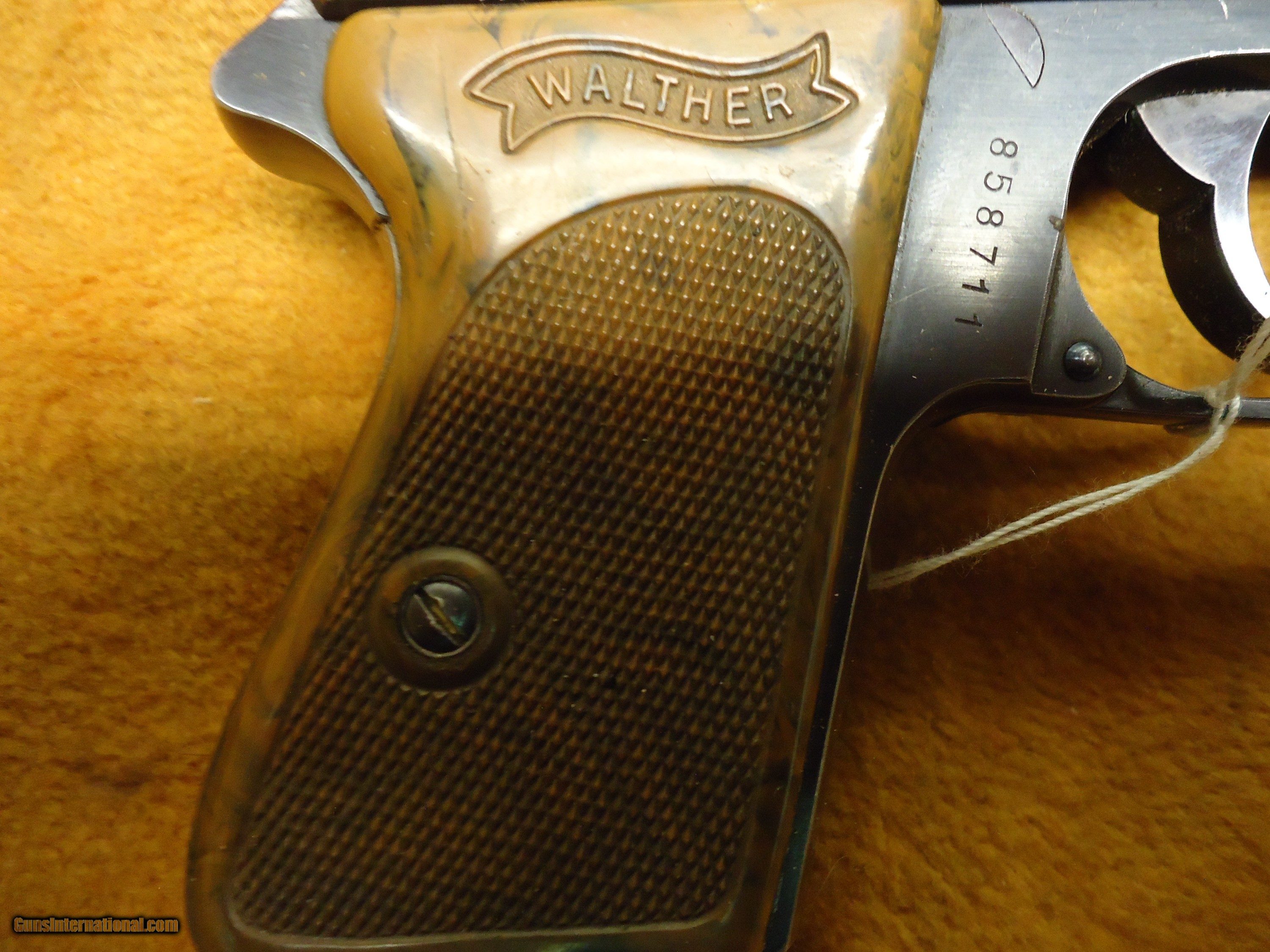 Description: Walther PPK 32acp w/ Party Holster.with Nazi Eagle Enbossed. Bring Back close to the end of WWII By Lynn Teale of the 406th Infantry. On orders to search resitences after the Battle of Krefeld 4March - 3 April 1945, Teale found this PPK on anOfficer who had killed himself. {Previous to the search a Lt who spoke fluent German called ot "Leave your wepons and go home, At the time the POW camps were full.}. $4000.00 -Will consider serious offer. If requested will supply information about Lynn and the 406th. SOLD Curio/Relic: Yes Handgun Caliber: .32 ACP (7.65x17mm Browning SR) Manufacturer: Walther Model: PPK Serial Number: 858711 Condition: 95% Metal Condition: very good Wood Condition: very good Bore Condition: perfrct |
