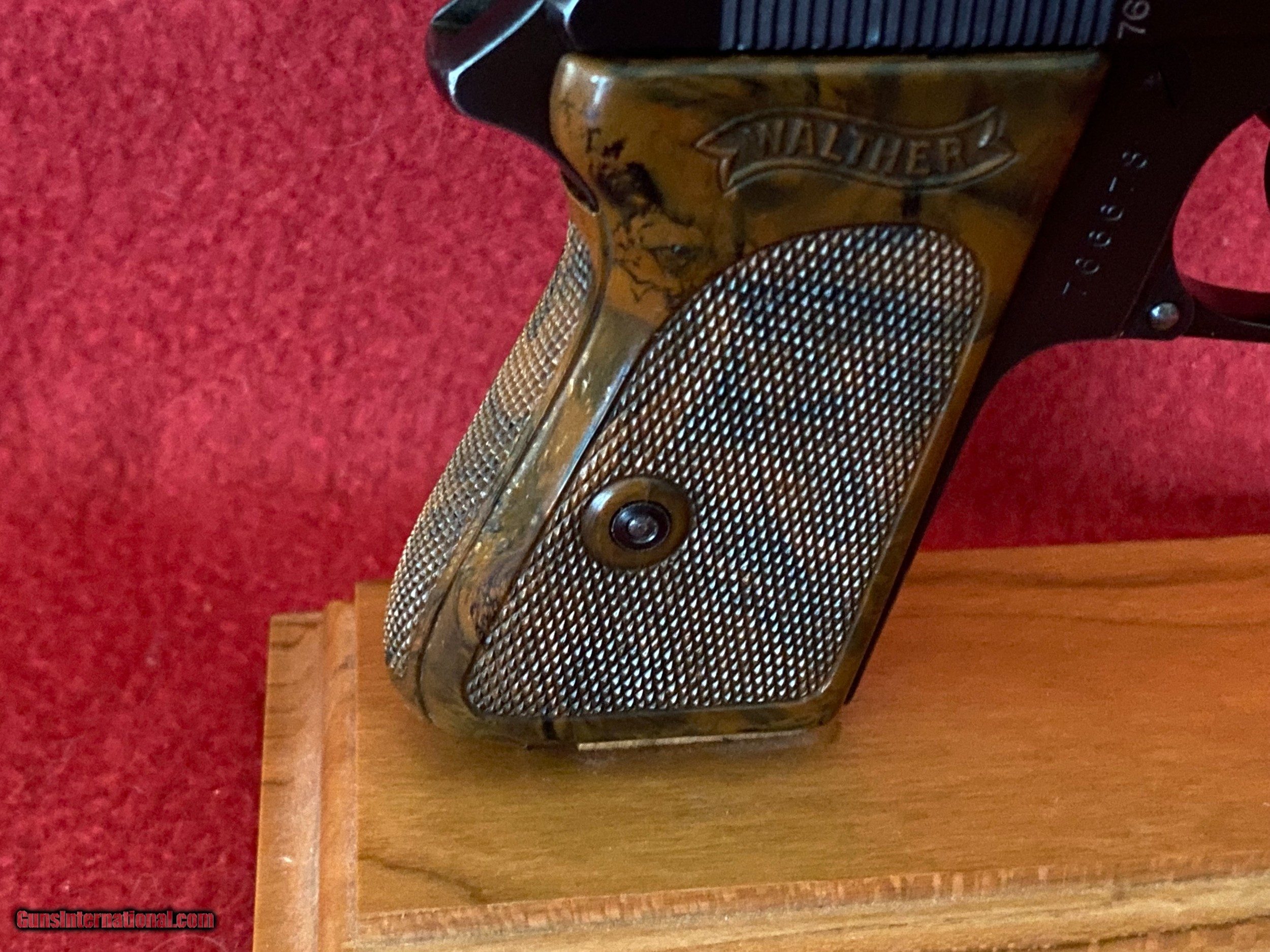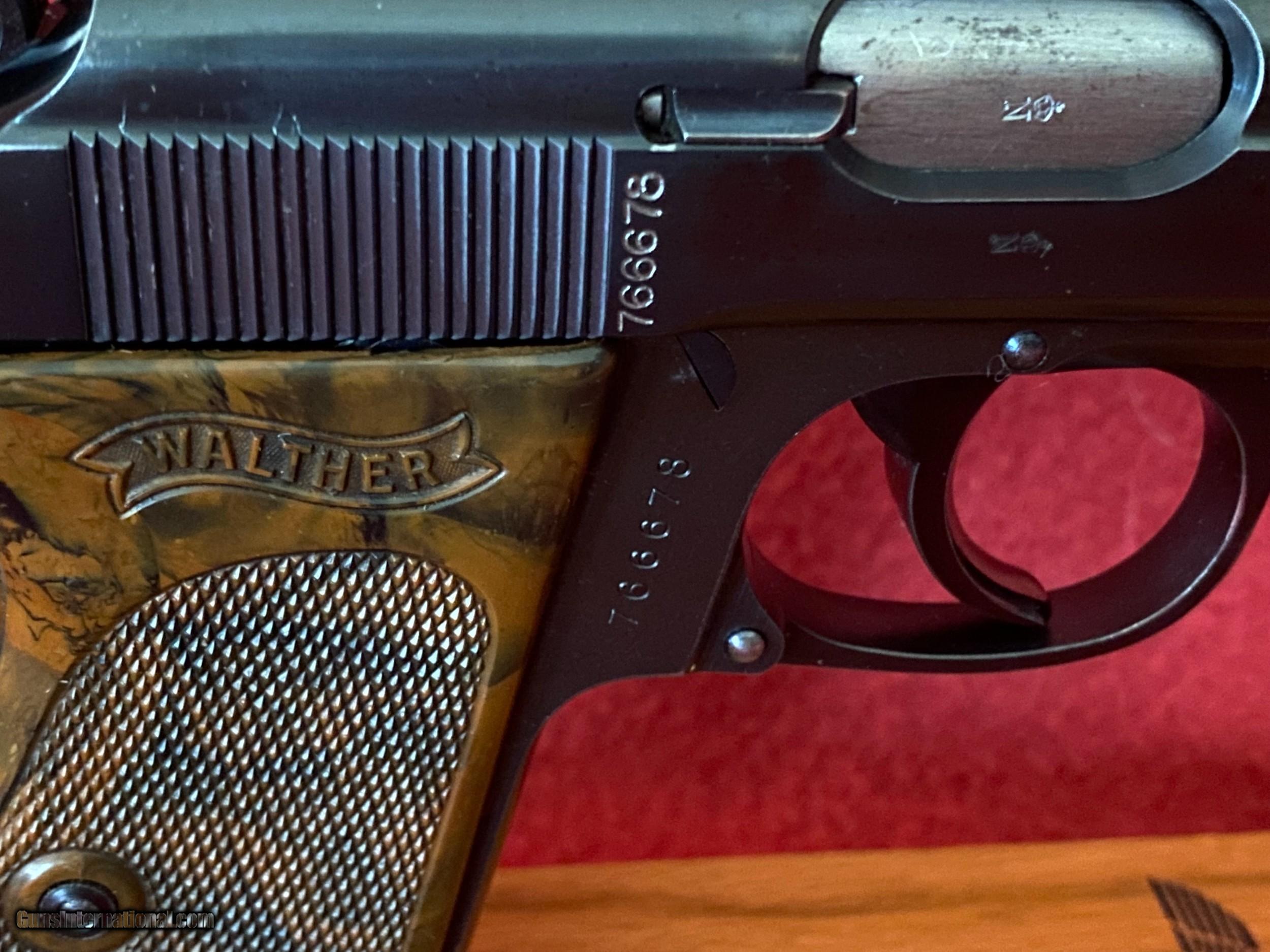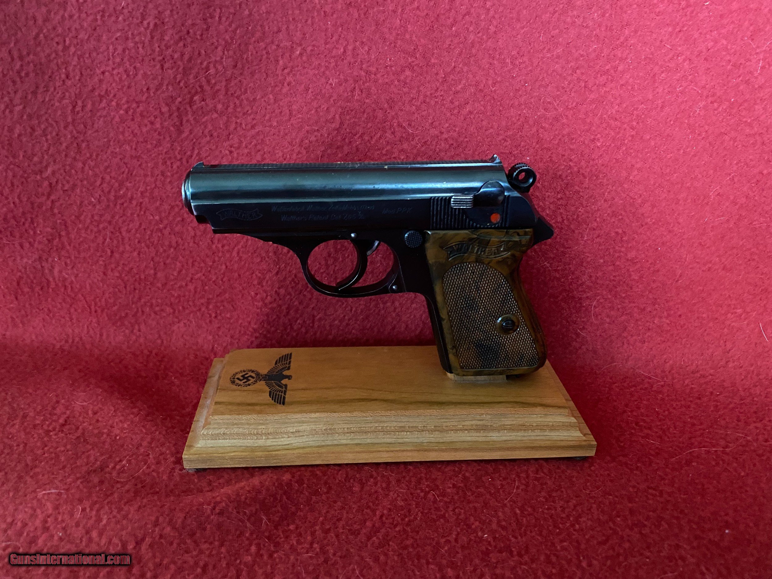The Reichsbank PPK is one of the rarest and most sought after variants, they were usually carried by plainclothes bank agents in shoulder holsters. I guess this is what they used to guard all the Nazi Gold that they had stashed away. This is a real find with the matching mag and will not last but a few hours. SOLD Curio/Relic: Yes Handgun Caliber: .32 ACP (7.65x17mm Browning SR) Manufacturer: Walther Model: PPK Condition: Great Metal Condition: 97+ |