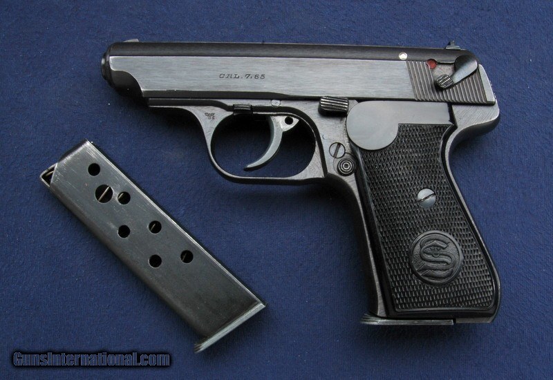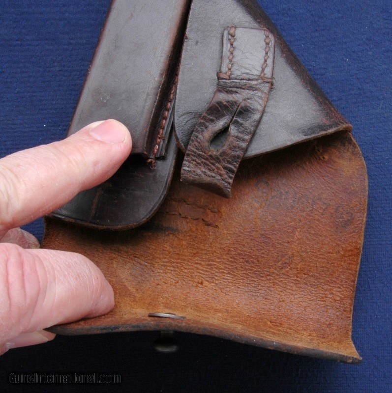 Description: Very nice late war Eagle/C marked Sauer 38h. It comes with the correct holster for this gun as stamped on the inside under the flap, and an extra original factory magazine. Bore is bright, shiny and excellent. Gun works fine, as does the decocker. Grips are original and unbroken. Grip screws are nice and not buggered. No alterations, glue, fixes or humping here. Just an original WW2 German Police rig at a fair price. $35 shipping to the lower 48, 3% surcharge for using a CC. If you choose to pay with a personal check, we will hold the item for up to 10 days to make sure that it clears. Please expedite such pymts as we will hold an item on your word for 5 days. SOLD Handgun Caliber: .32 ACP (7.65x17mm Browning SR) |