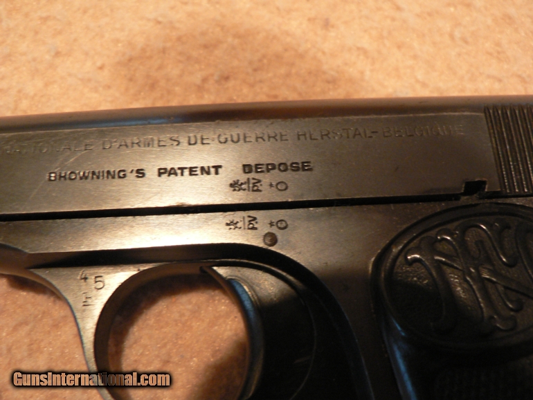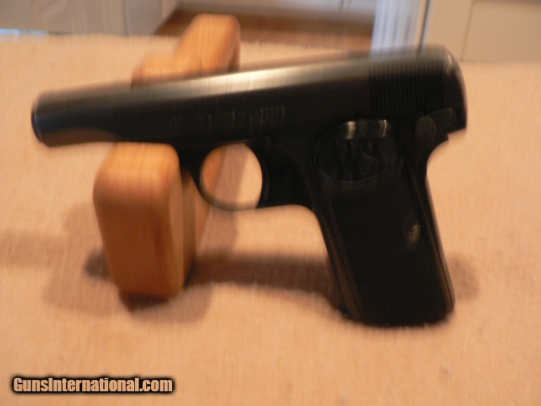 Description: Browning model 1910 WWII 32 ACP Japanese Officers' private purchase-RARE with Kanji markings. Made in 1942-captured bringback gun. Low S/N only 2500 sold to Japanese Officers only. Mint condition-original blue-nice grips-no pitting or rust. Qualifies CC&R. Very Very nice shape-good bore etc. etc. $950 obo or best trade. Will ship for shipping/handling with correct paperwork based on your license and state. SOLD Curio/Relic: Yes |