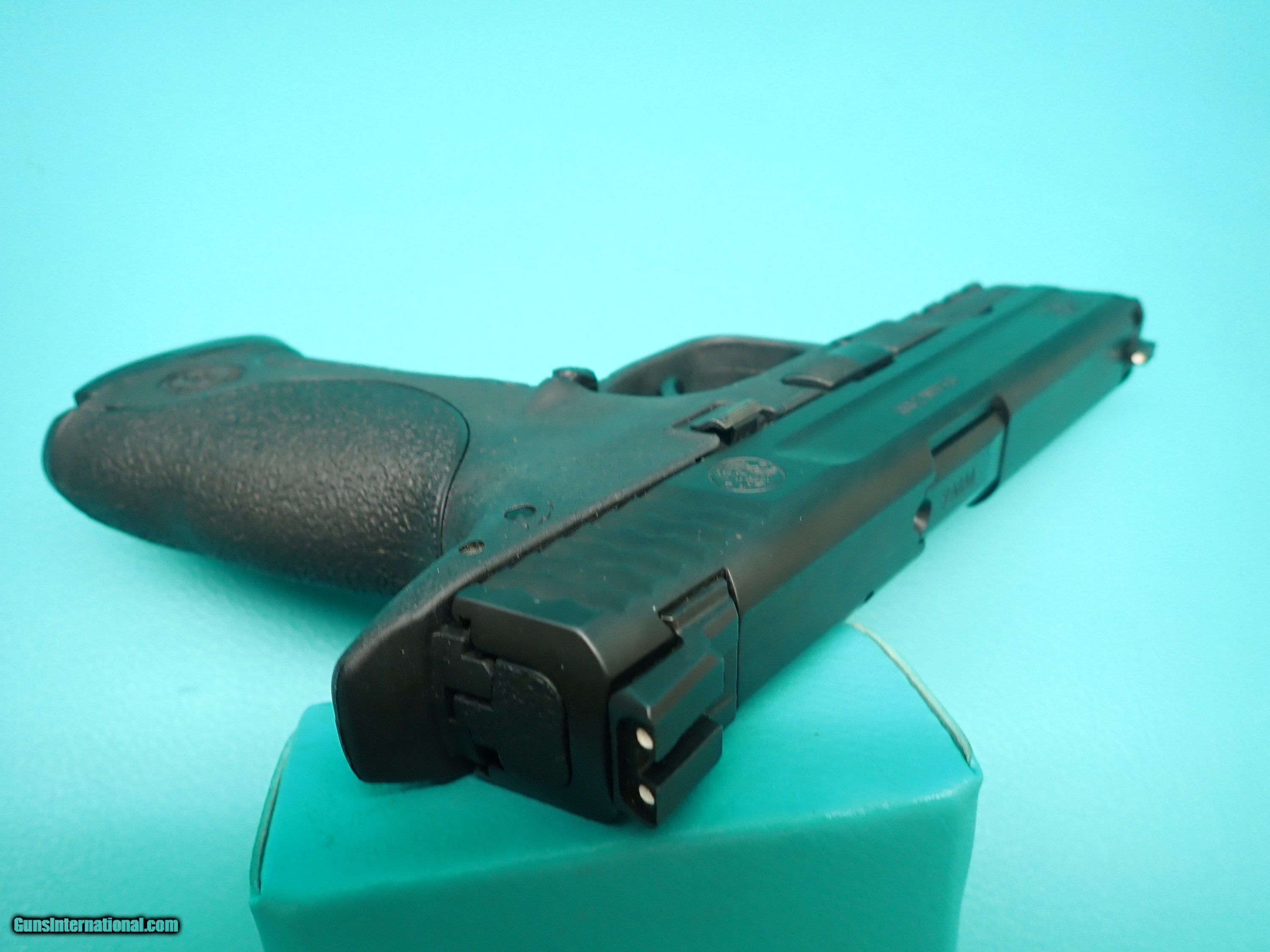 Description: ***SOLD***Make: Smith & Wesson Model: M&P9 Finish: Black melonite stainless steel Caliber: 9mm Action: Semi-automatic Barrel length: 4 1/4" Bore: Shiny with sharp rifling Grips: Three interchangable palmswell grips, stippled plastic Sights: white tri-dot MFG Date: N/A Features: Lighweight reinforced polymer frame, no thumb safety, lower accessory rail Extras: Factory box, interchangable palmswell grips, operating manual & paperwork, spare 10rd magazine Condition: Very good, minor signs of usage Shipping Cost: $25****SOLD*** SOLD Handgun Caliber: 9x19mm Parabellum (9mm Luger, 9x19mm NATO) Manufacturer: Smith & Wesson Model: M&P 9 Serial Number: DTV7831 Barrel Length: 4.25 |