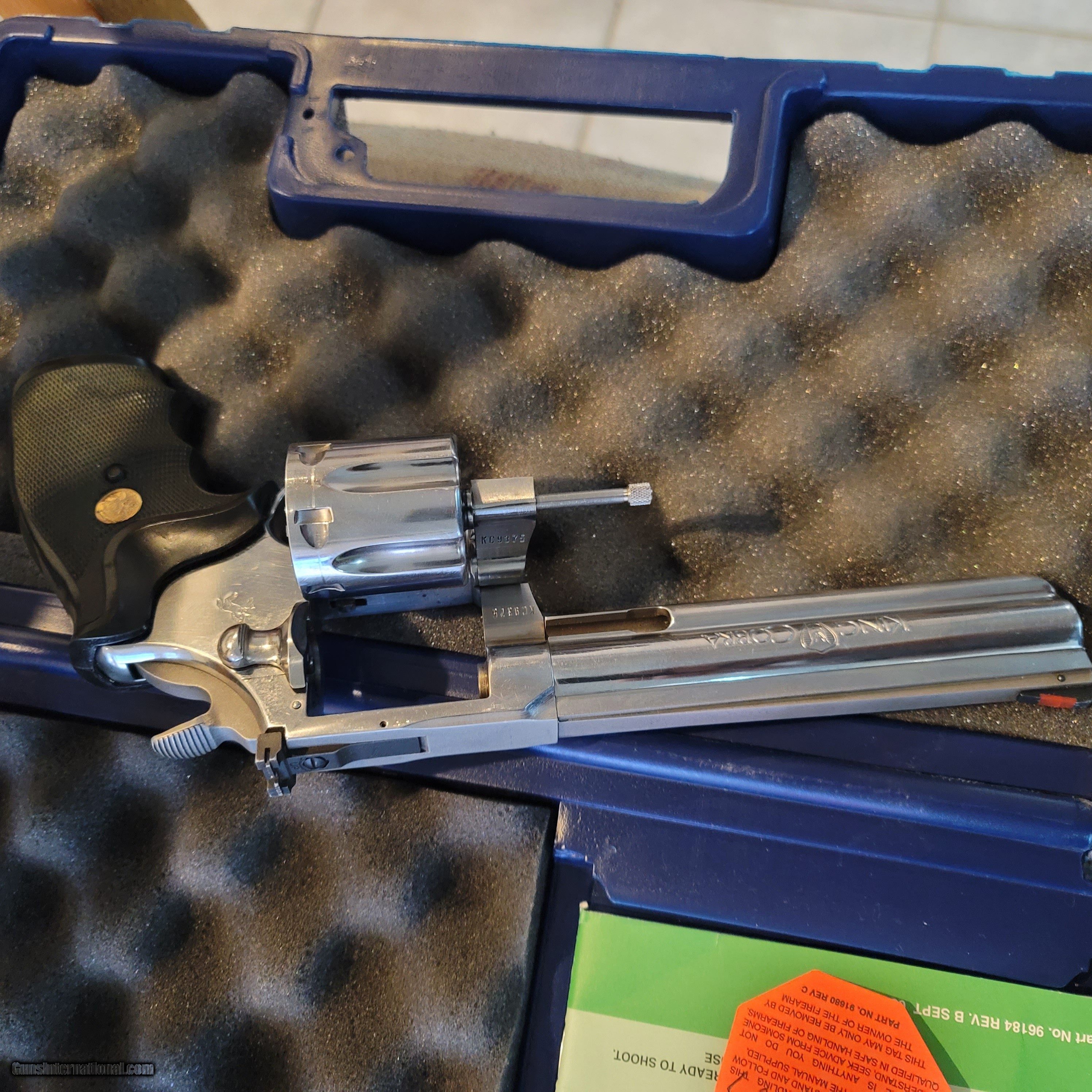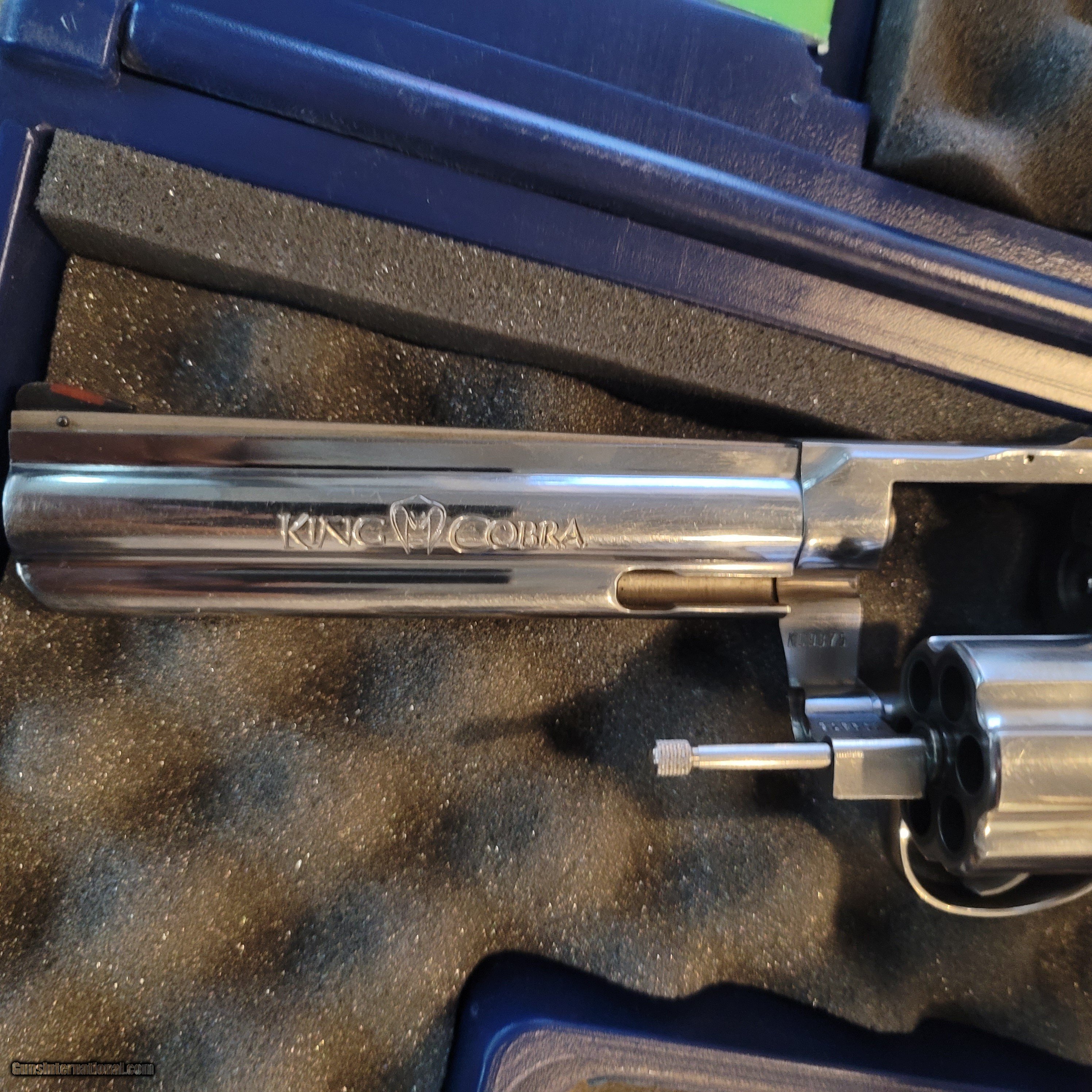 Description: COLT KING COBRA 357MAG WITH 6 INCH BARREL IN GREAT CONDITION MADE IN 1987 SOLD Handgun Caliber: .357 Magnum Manufacturer: COLT Model: KING COBRA Barrel Length: 6 Condition: GREAT Metal Condition: GREAT Bore Condition: GREAT |