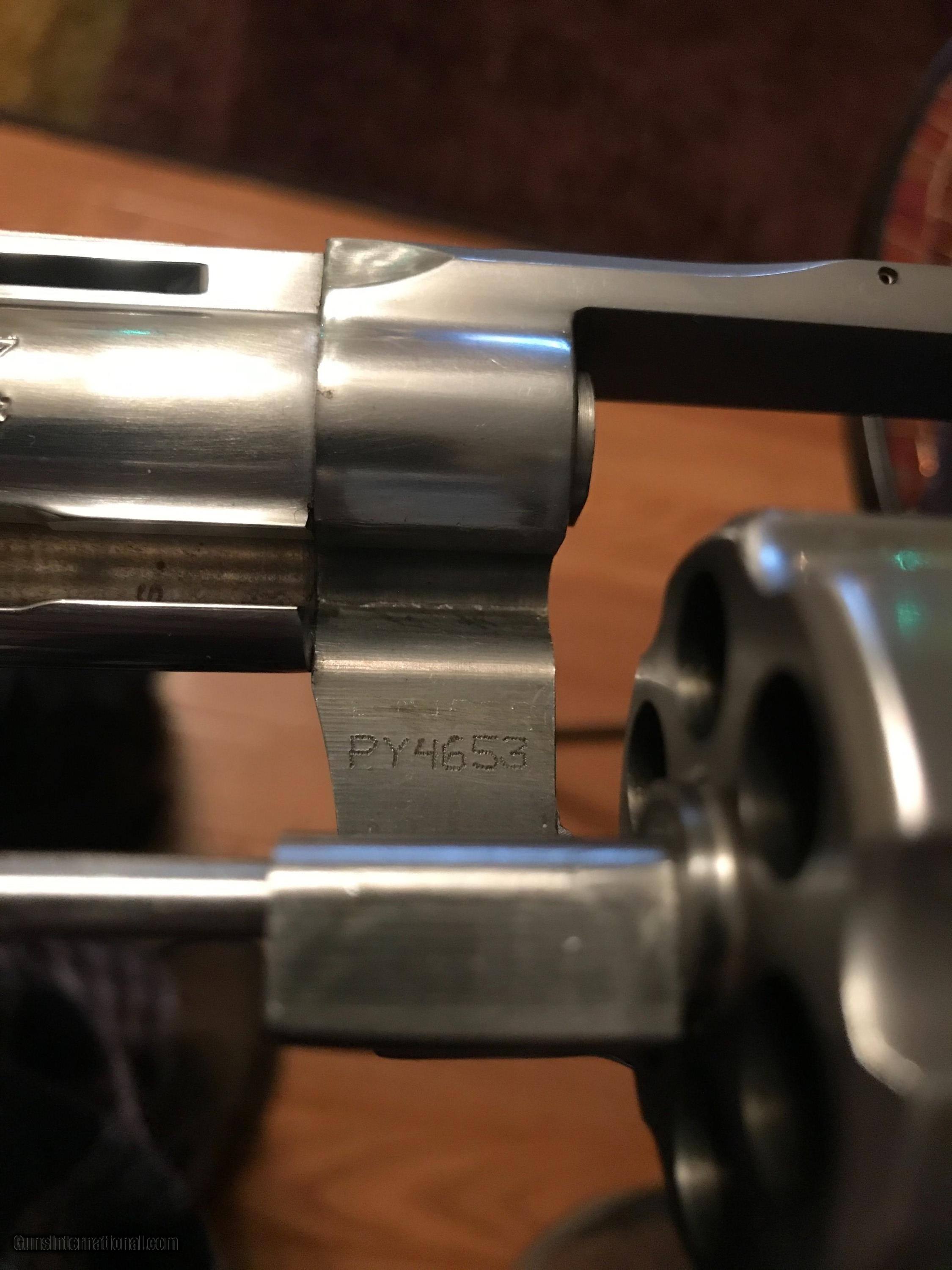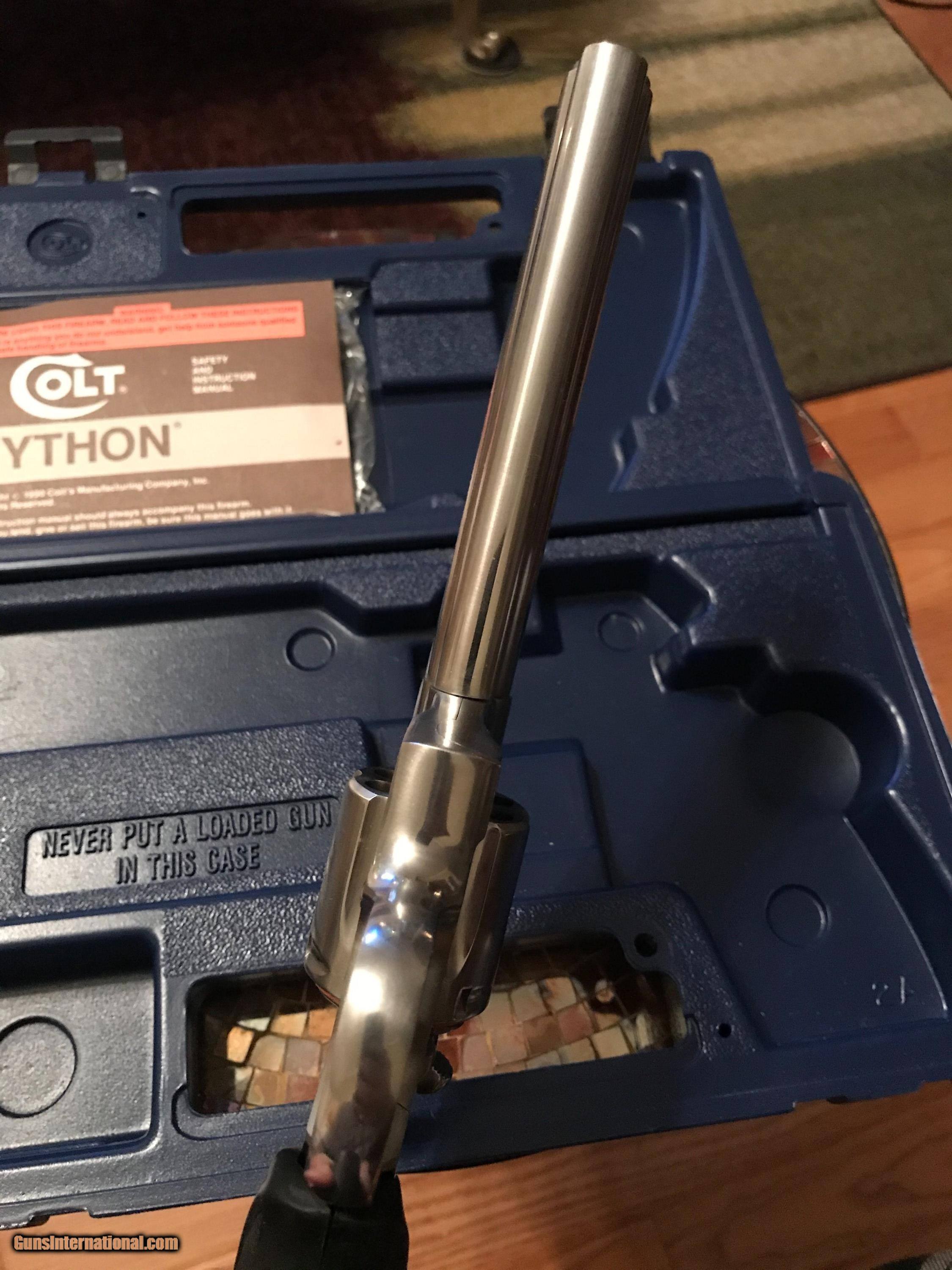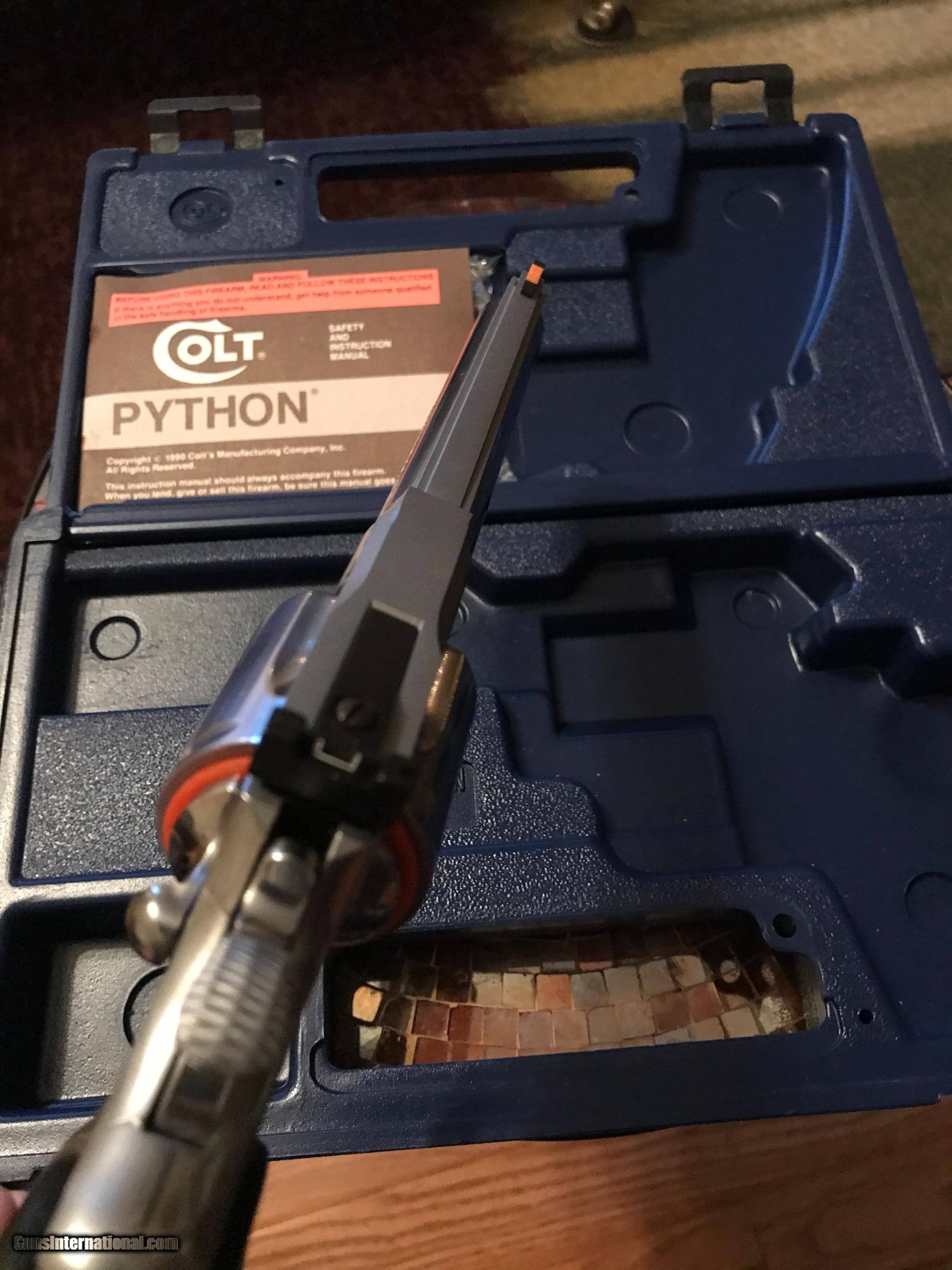Description: Beautiful and rare Python. Stainless finish, colt rubber grips, target sights, trigger, and hammer. Original numbered box, sleeve, and papers. A fine Python. Please email with questions. Shipping included. Cards add 3% SOLD Manufacturer: Colt Model: Python Barrel Length: 6 Condition: Used Metal Condition: Excellent Wood Condition: N/a Bore Condition: Excellent Action: Double Rib: Ventilated Finish: Stainless Sights: Target Manufacture Date: 1993 Item Location: 37075 |