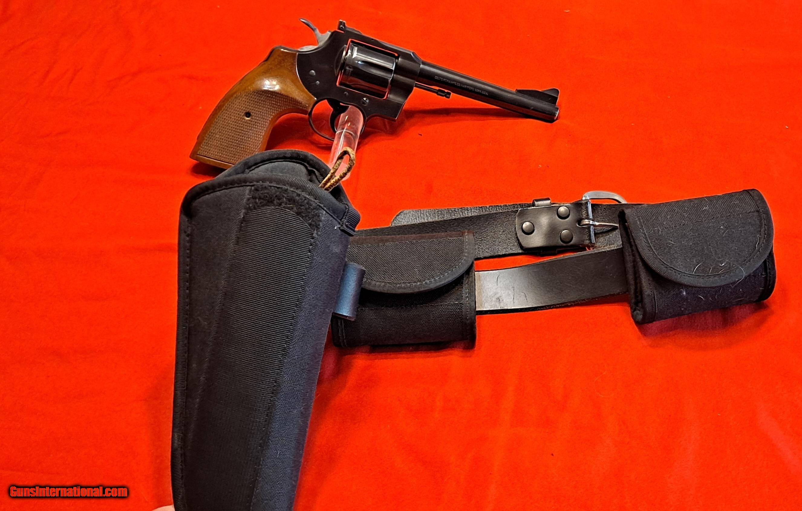 Description: The Colt Trooper is a medium frame, double-action revolver featuring a six-round cylinder, chambered for .357 Magnum caliber cartridges. This is a very rare find as it was made in 1961 and has the 6inch barrel and comes with a holster and ammo holder as seen in the pictures this will not last long at this price.Offered as an alternative and competitor to Smith & Wesson’s Model 28 "Highway Patrolman", the Colts were lighter and handier.This gun also has non original grips.It does not come with the ammo just put fot the photos. May be open to a serious offer but at this price it will go fast SOLD Curio/Relic: Yes Handgun Caliber: .357 Magnum |