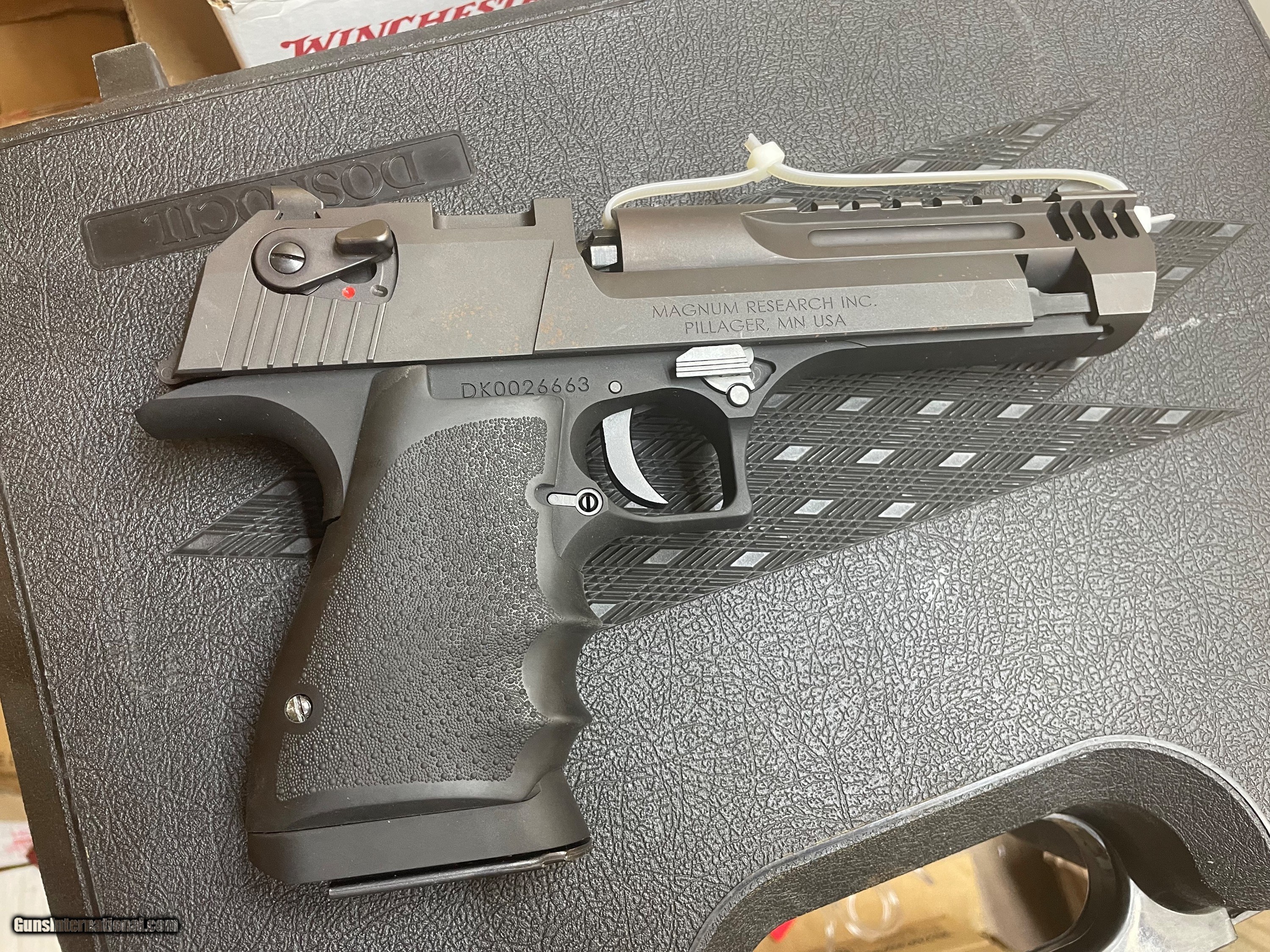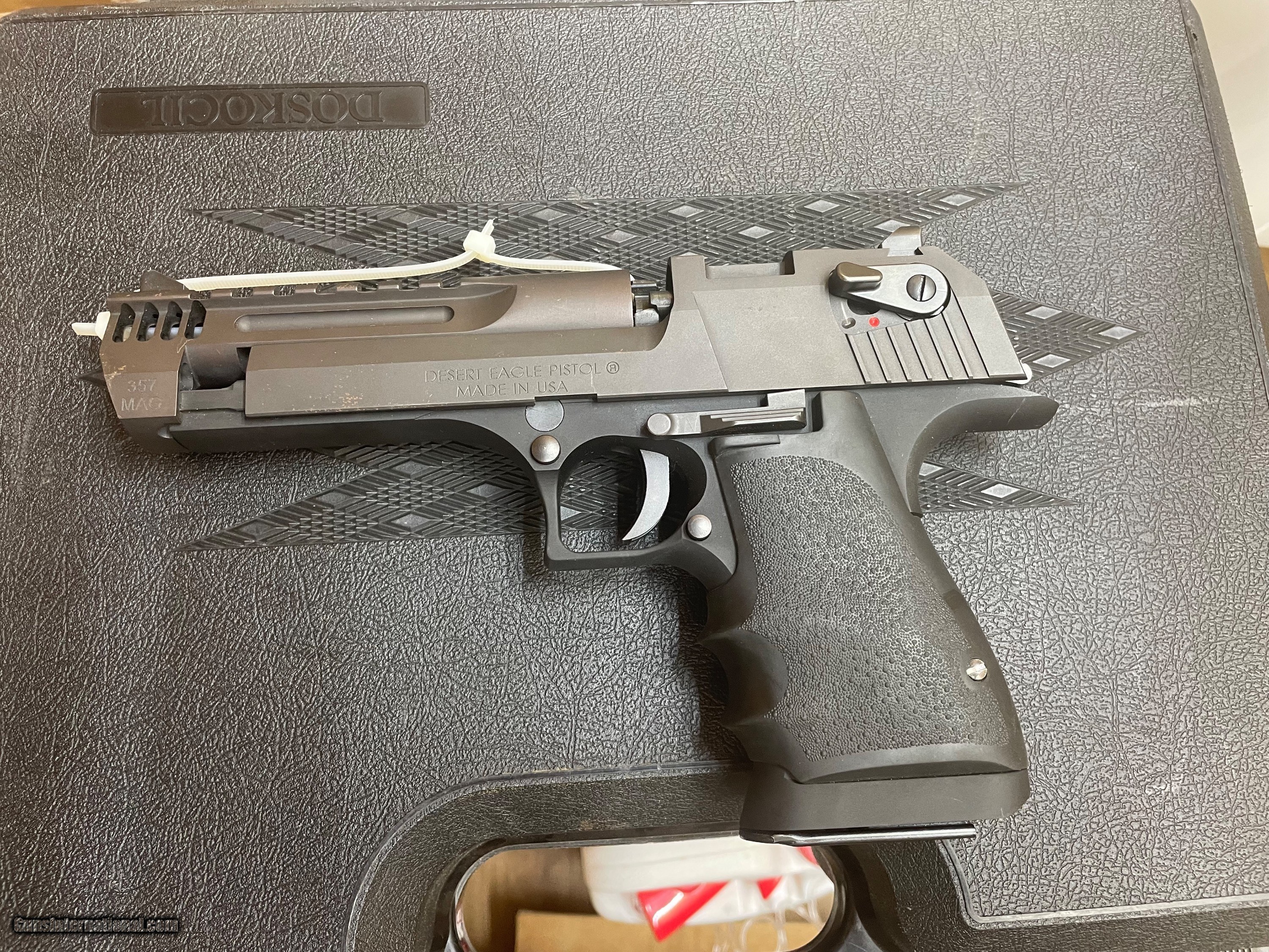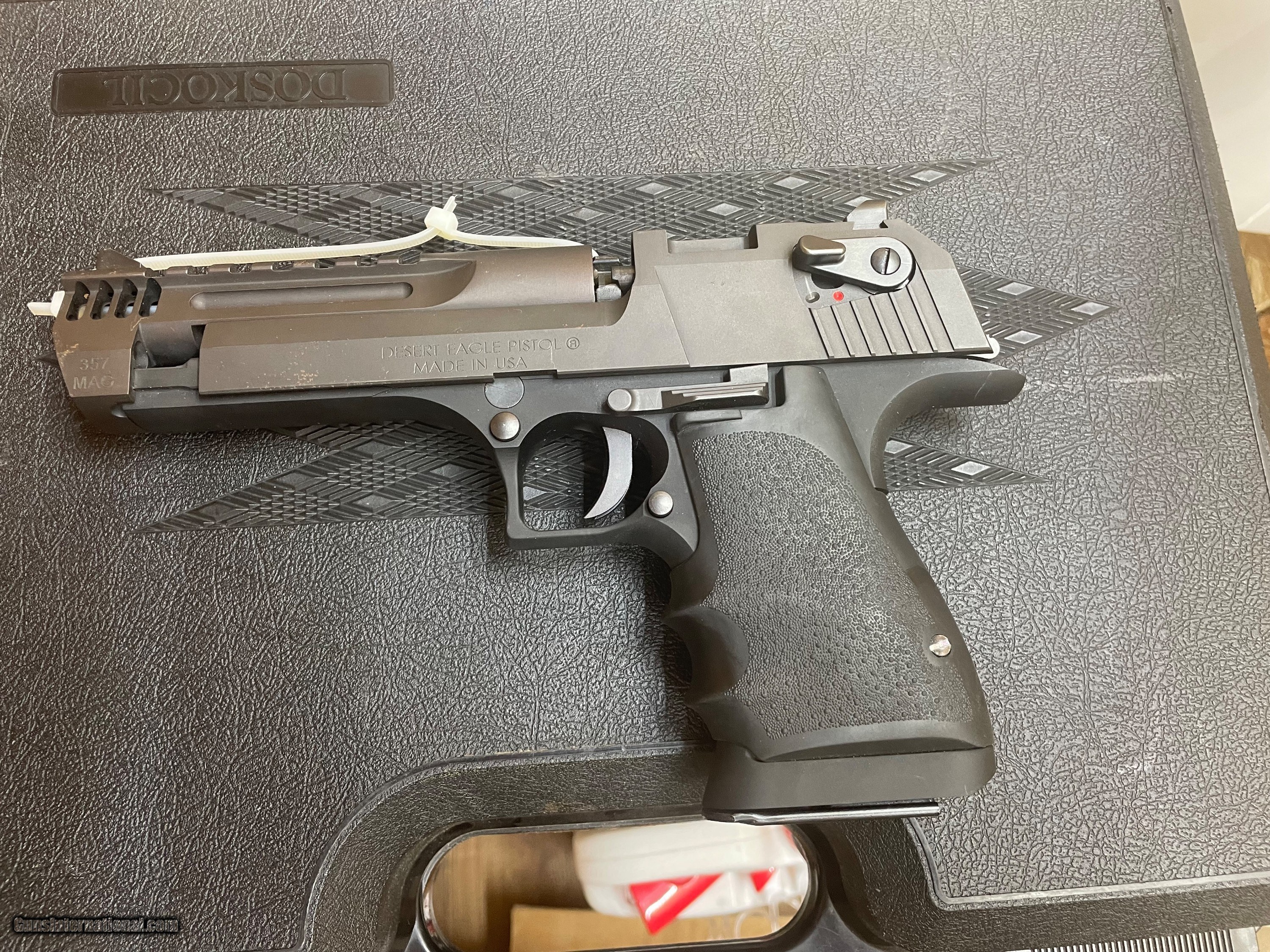 Description: Very nice 357 mag desert eagle by magnum research. It is ported. Only one mag. No box. Shipping is $75 extra. SOLD Handgun Caliber: .357 Magnum Manufacturer: Magnum research Model: Desert eagle Condition: Very good Metal Condition: Very good Bore Condition: Very good |
