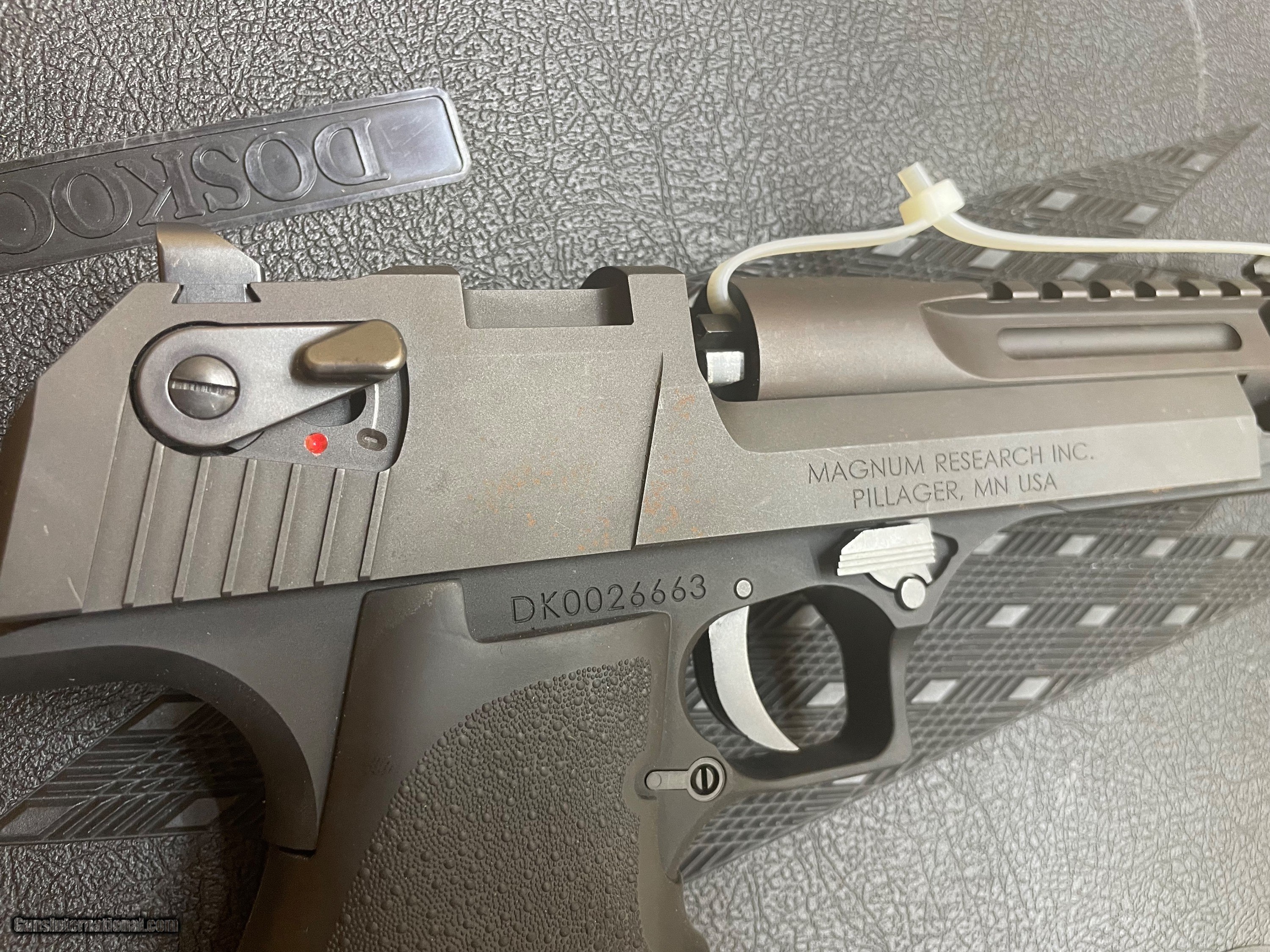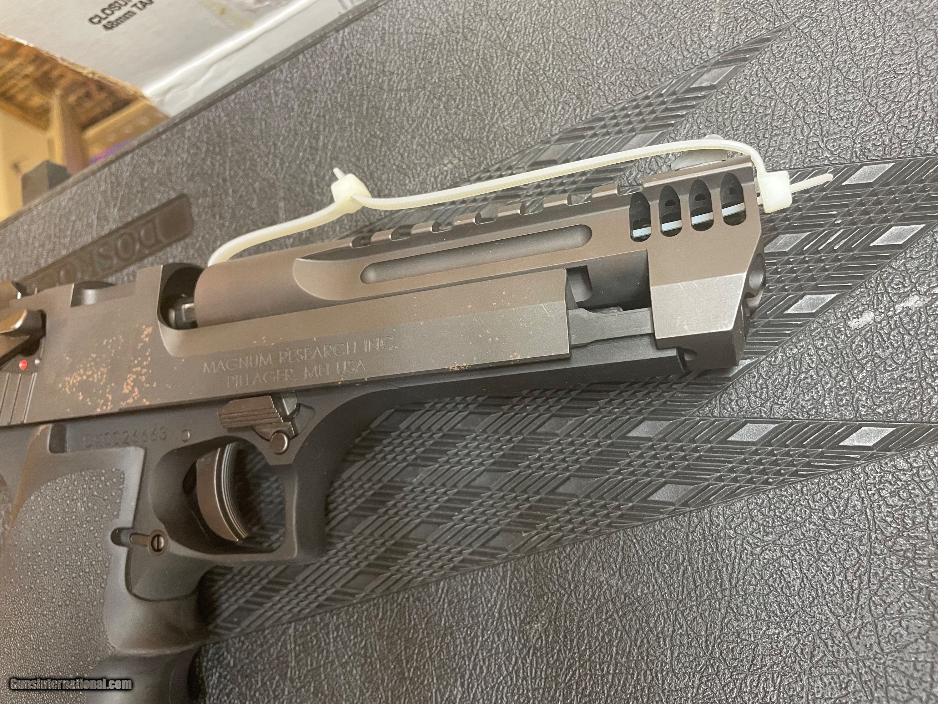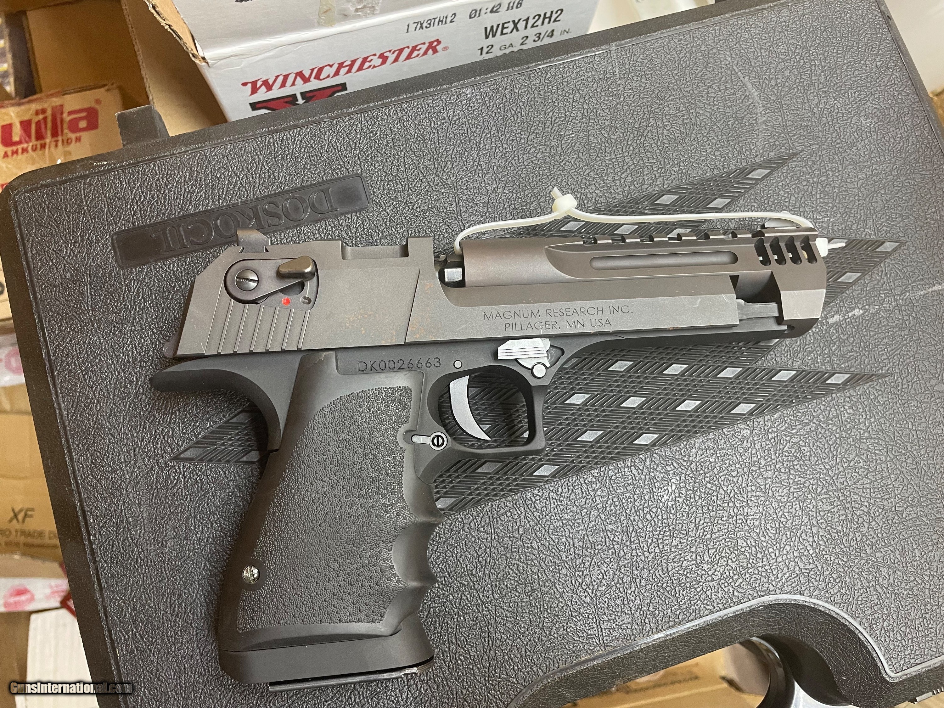 Description: Very nice 357 mag desert eagle by magnum research. It is ported. Only one mag. No box. Shipping is $75 extra. SOLD Handgun Caliber: .357 Magnum Manufacturer: Magnum research Model: Desert eagle Condition: Very good Metal Condition: Very good Bore Condition: Very good |
