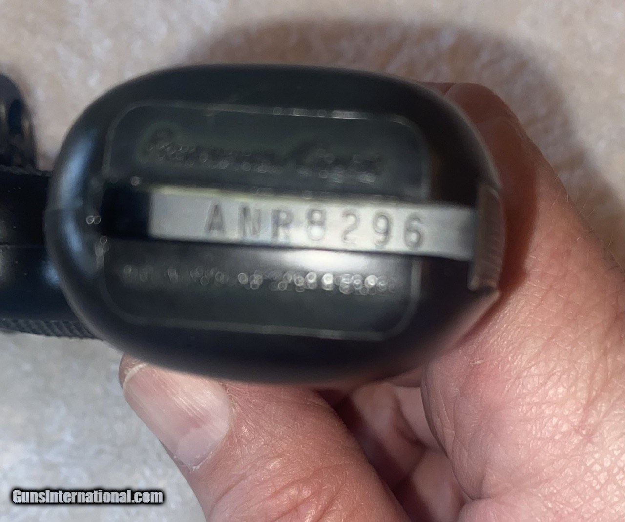 Description: S&W 19-5, 2.5" barrel, matte black finish, Pachmyer presentation window grips. Some thinning of the finish by the muzzle, extremely smooth action, more like a Python than a S&W. These 19-5 with a matte black finish were sent to the DDS and were later sent to the FBI to be destroyed, some were klnot and are very collectible. This particular revolver serial number is ANR8296, is stock except for the red front sight insert that could easily be changed back to plain black. $30 shipping ffl to ffl SOLD |