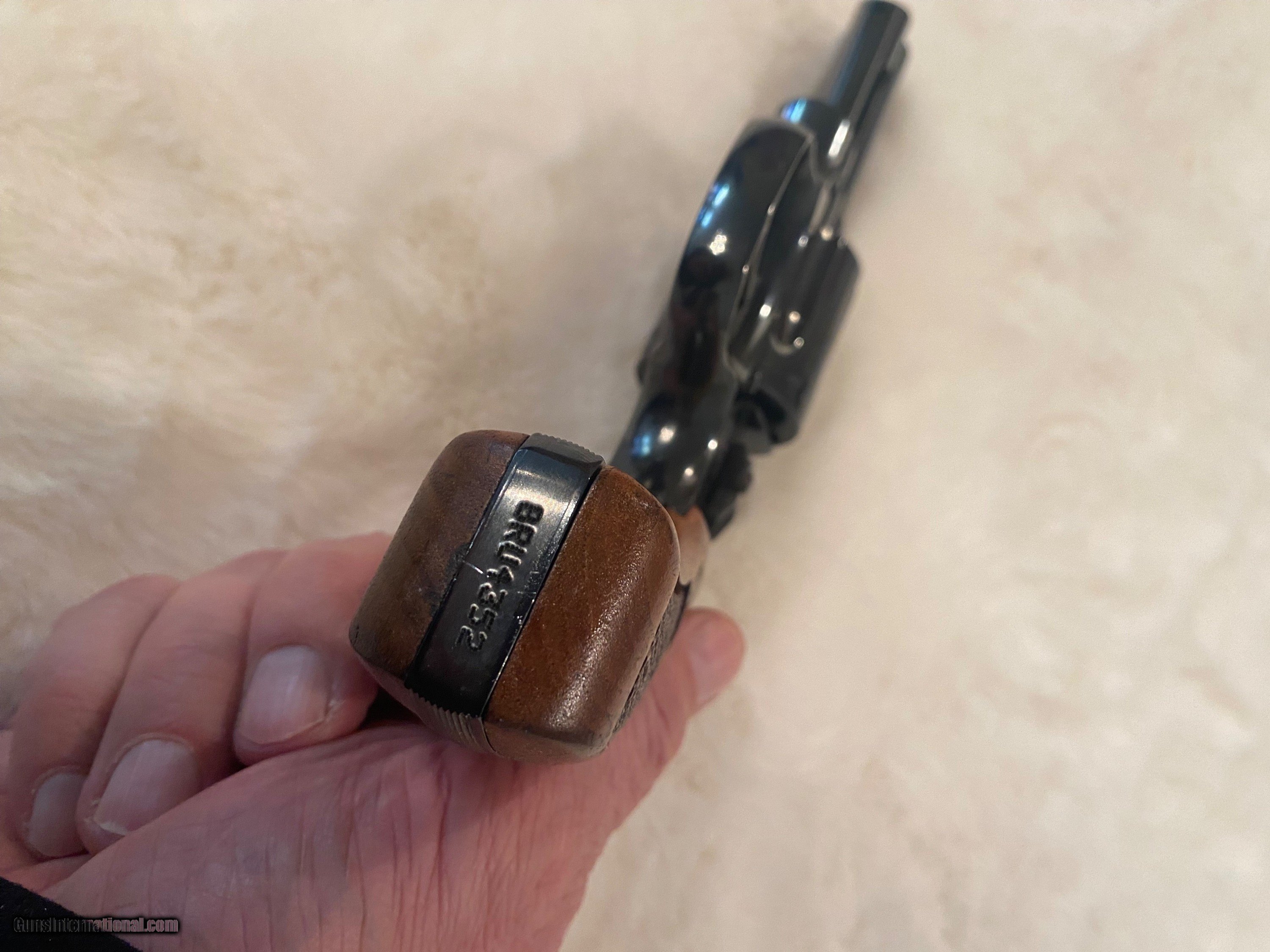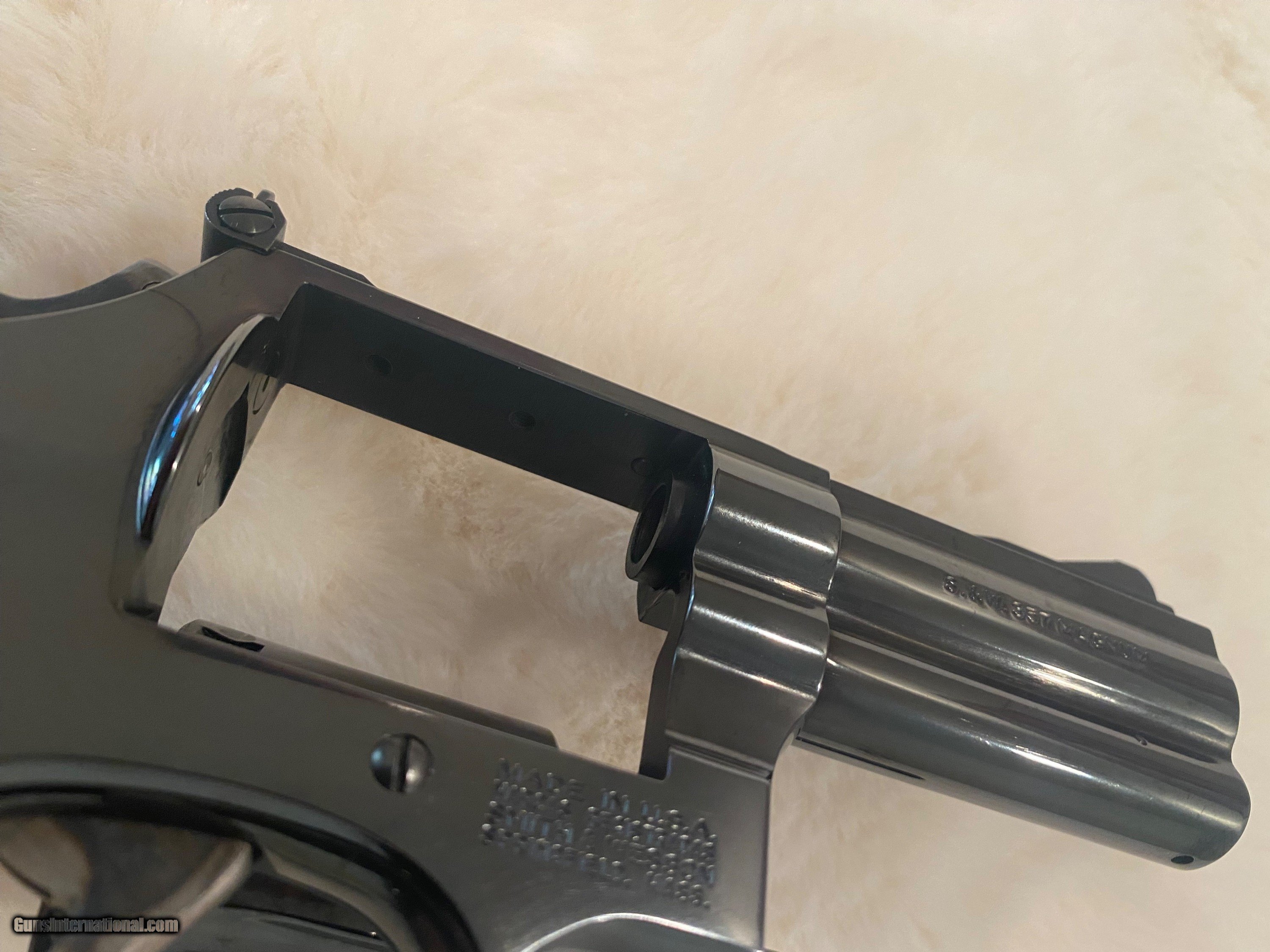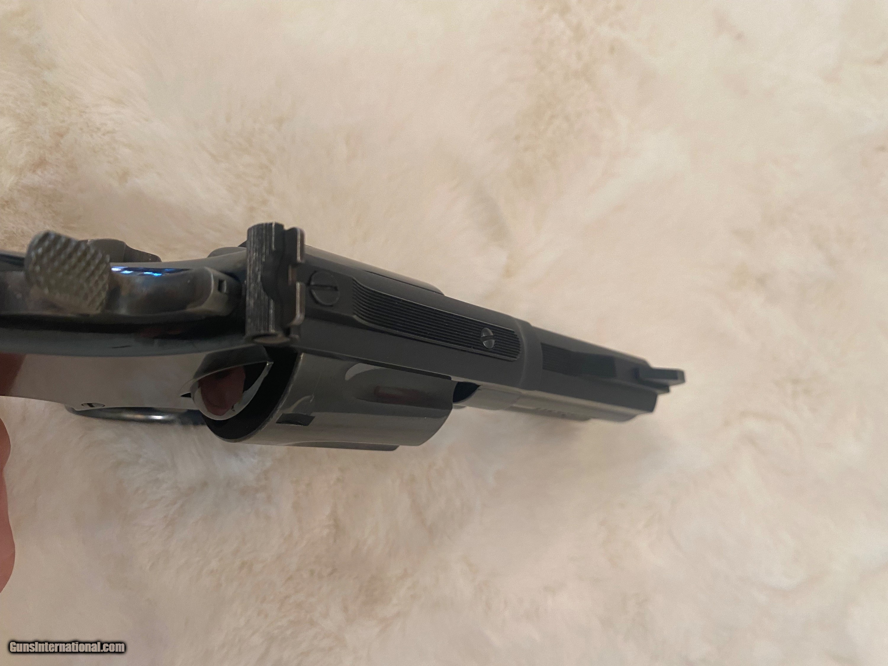Description: Very rare and desirable S&W 586-4 with a 3 inch barrel, sorry no box just the gun. Bluing is in fantastic condition with only a slight turn line, timing and lock up are spot on. I believe there were less than 200 of these factory 586 pre lock guns with a 3 inch barrel. SOLD Manufacturer: Smith & Wesson Model: 588-4 Serial Number: BRU4352 Barrel Length: 3 Condition: Excellent |