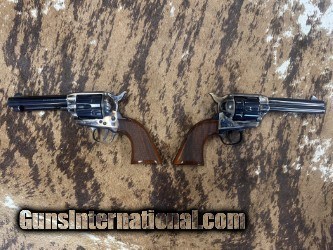 Description: This here is a pair of Uberti Smokewagon 357 Deluxe that are consectuvie serial numbers. They have the original boxes. Each firearm has a a leather holster. amd seems to have had some trigger work done to both firearms. These are very smooth actions and overall in great shape still. If you have any questions feel free to offer. To be clear this is a listing for the set. SOLD Handgun Caliber: .357 Magnum Manufacturer: Uberti Model: SmokeWagon Barrel Length: 4 3/4 |