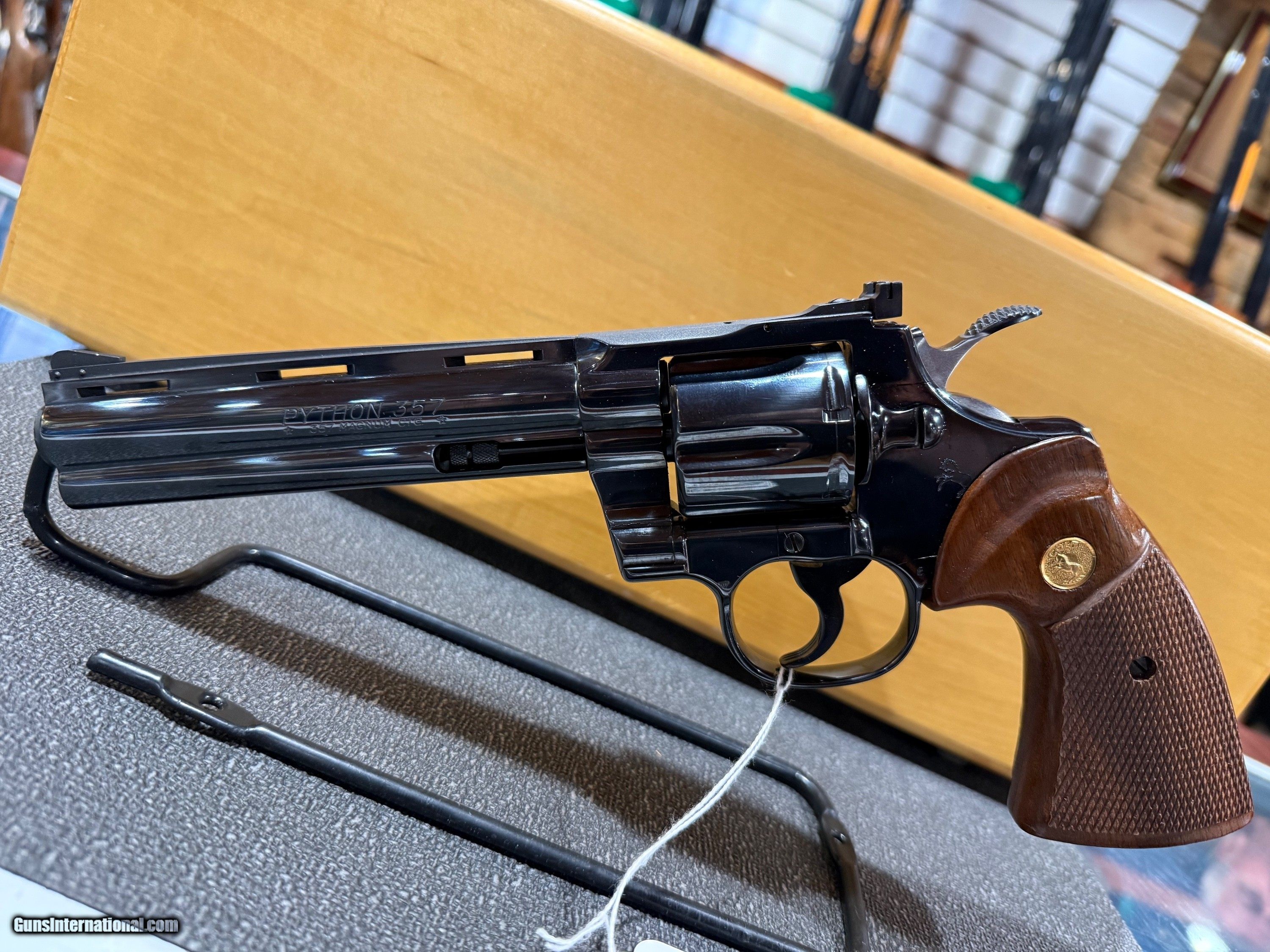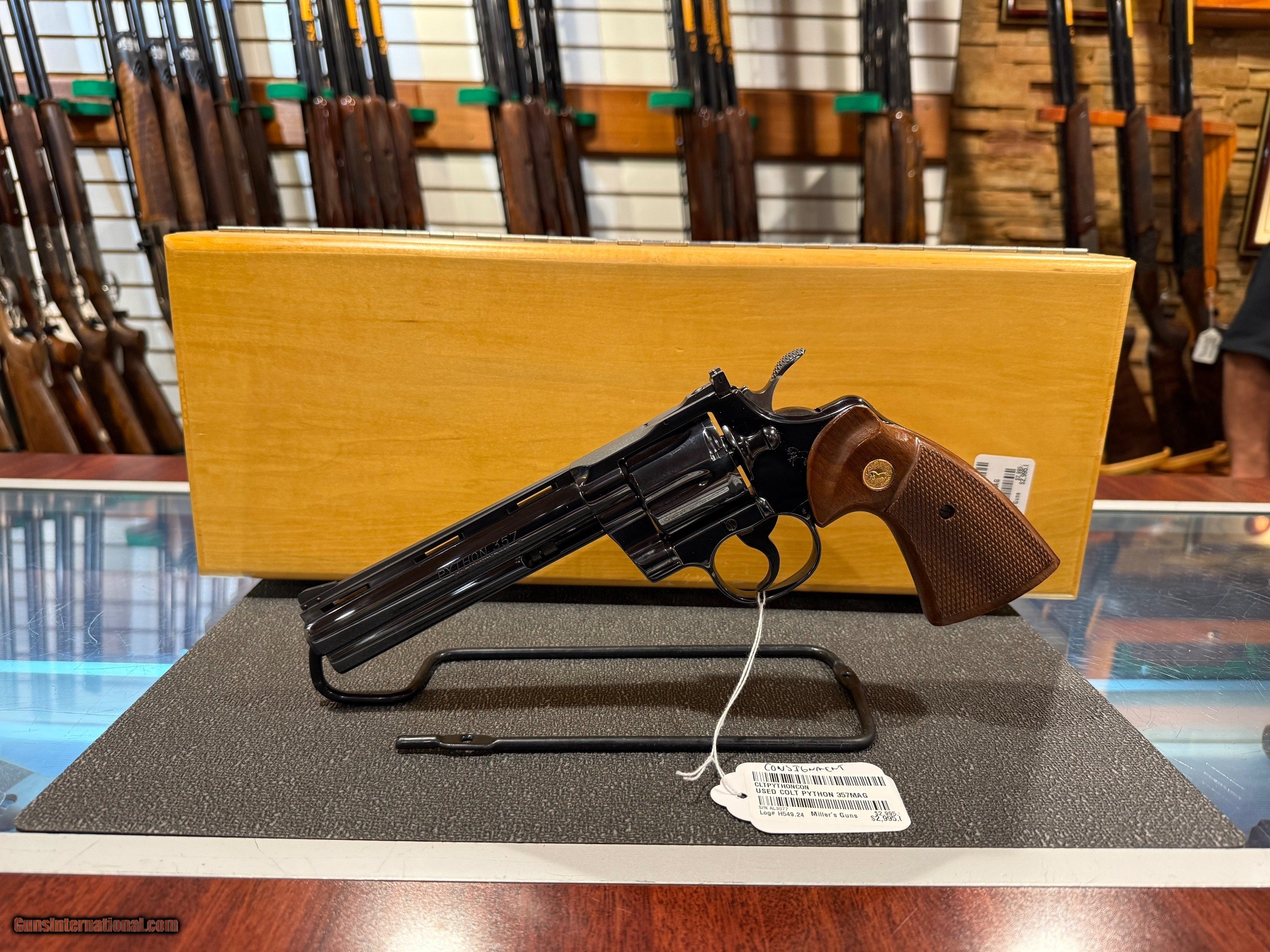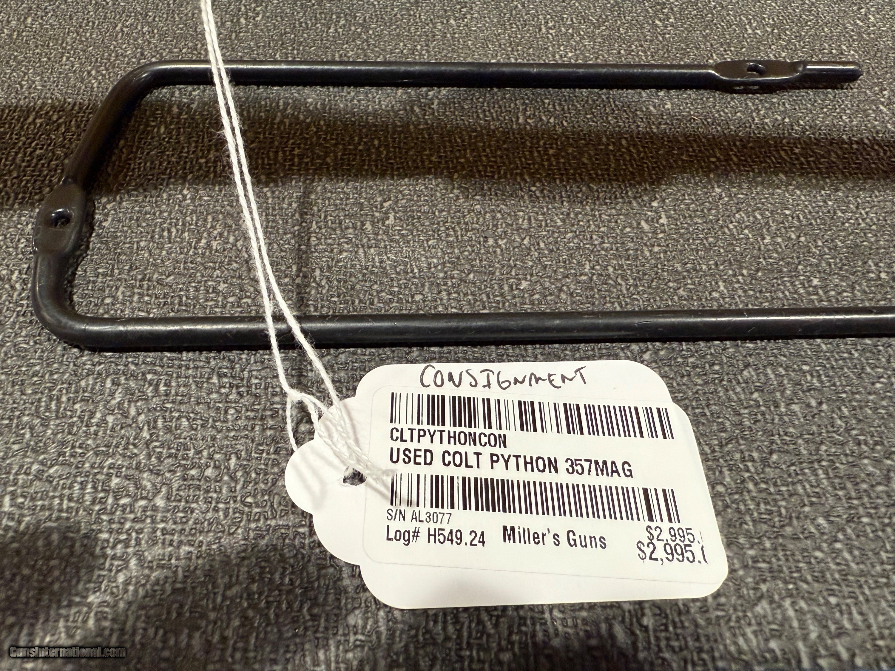 Description: USED Colt Python .357 Magnum 6 round capacity 6" barrel DA/SA Wooden display box included Handgun Caliber: .357 Magnum Manufacturer: Colt Model: Python Serial Number: AL3077 Barrel Length: 6 Condition: VERY GOOD Price: $2,995.00 Contact Seller |