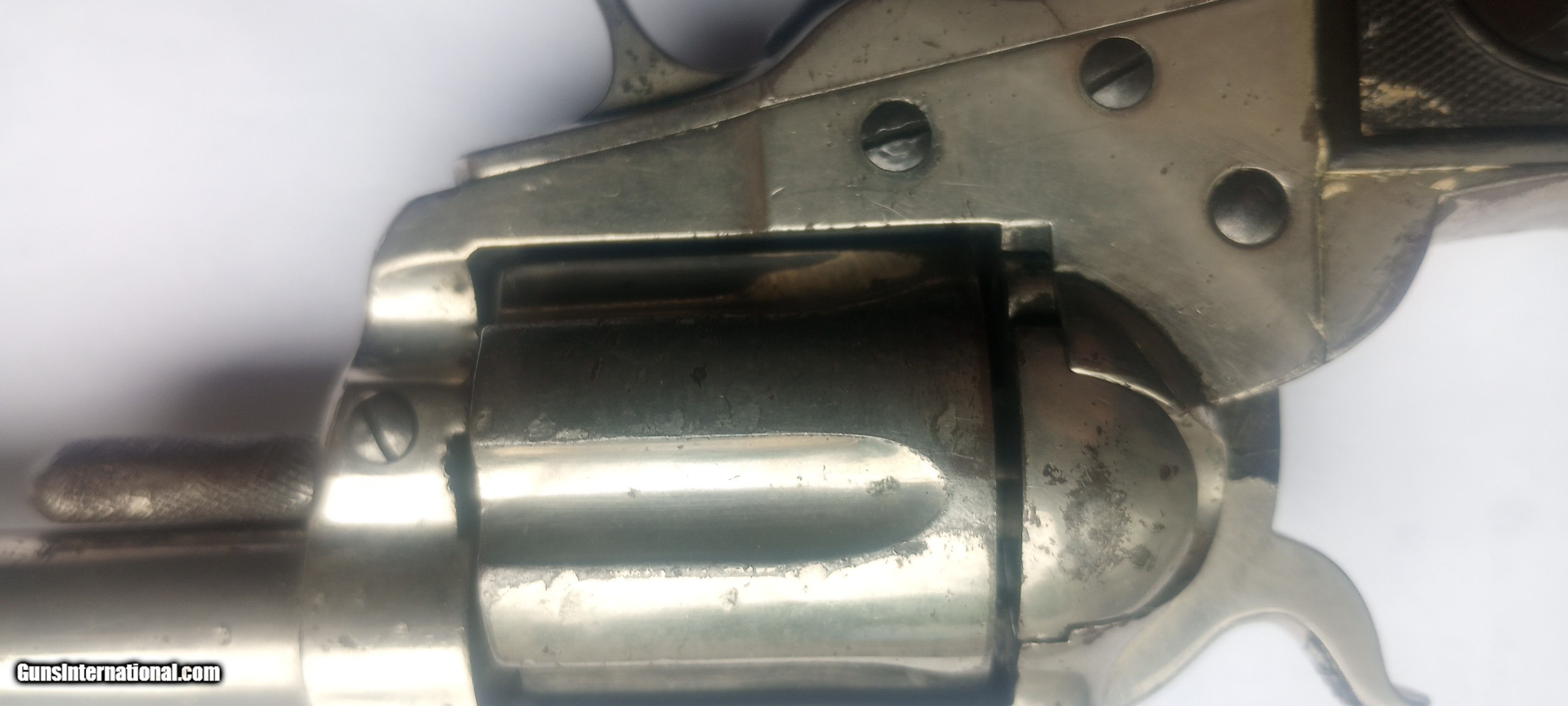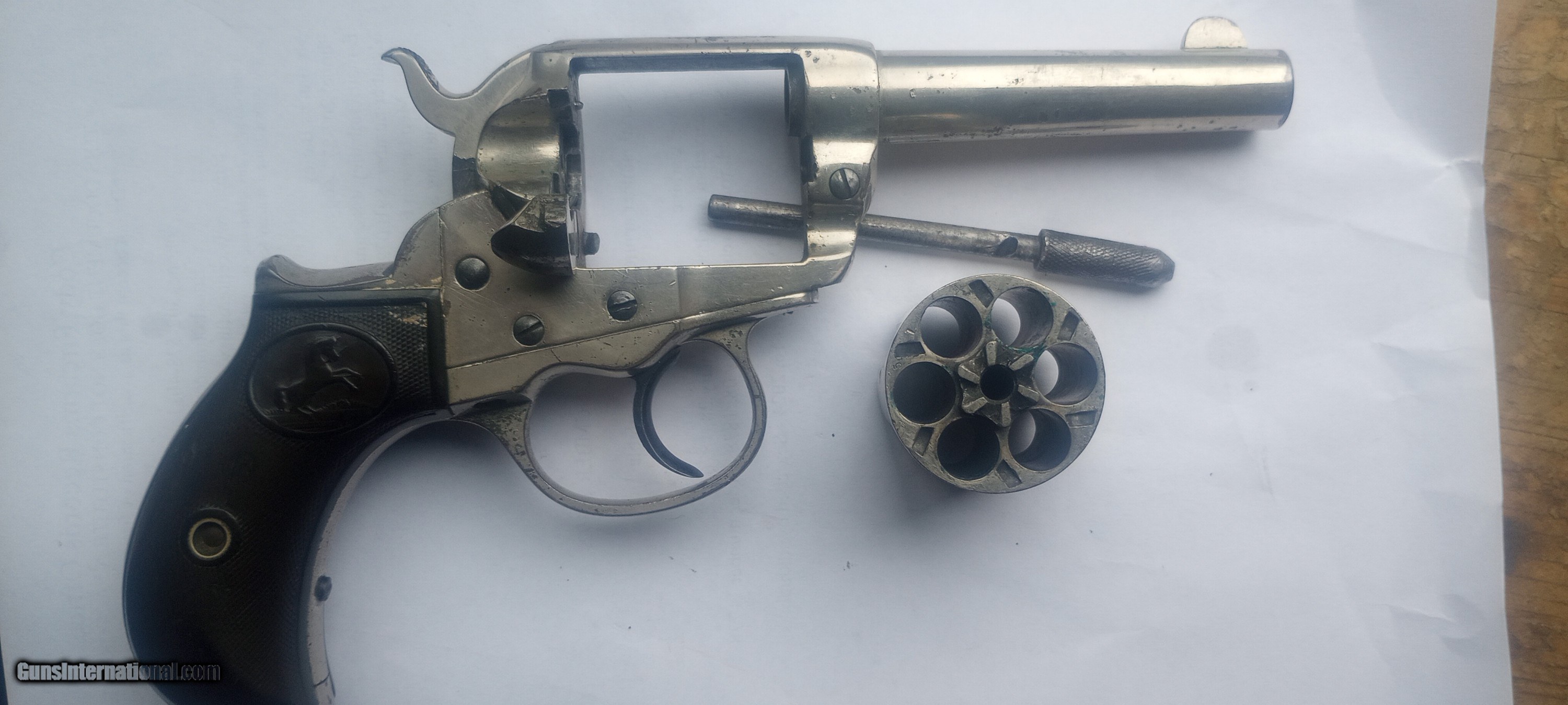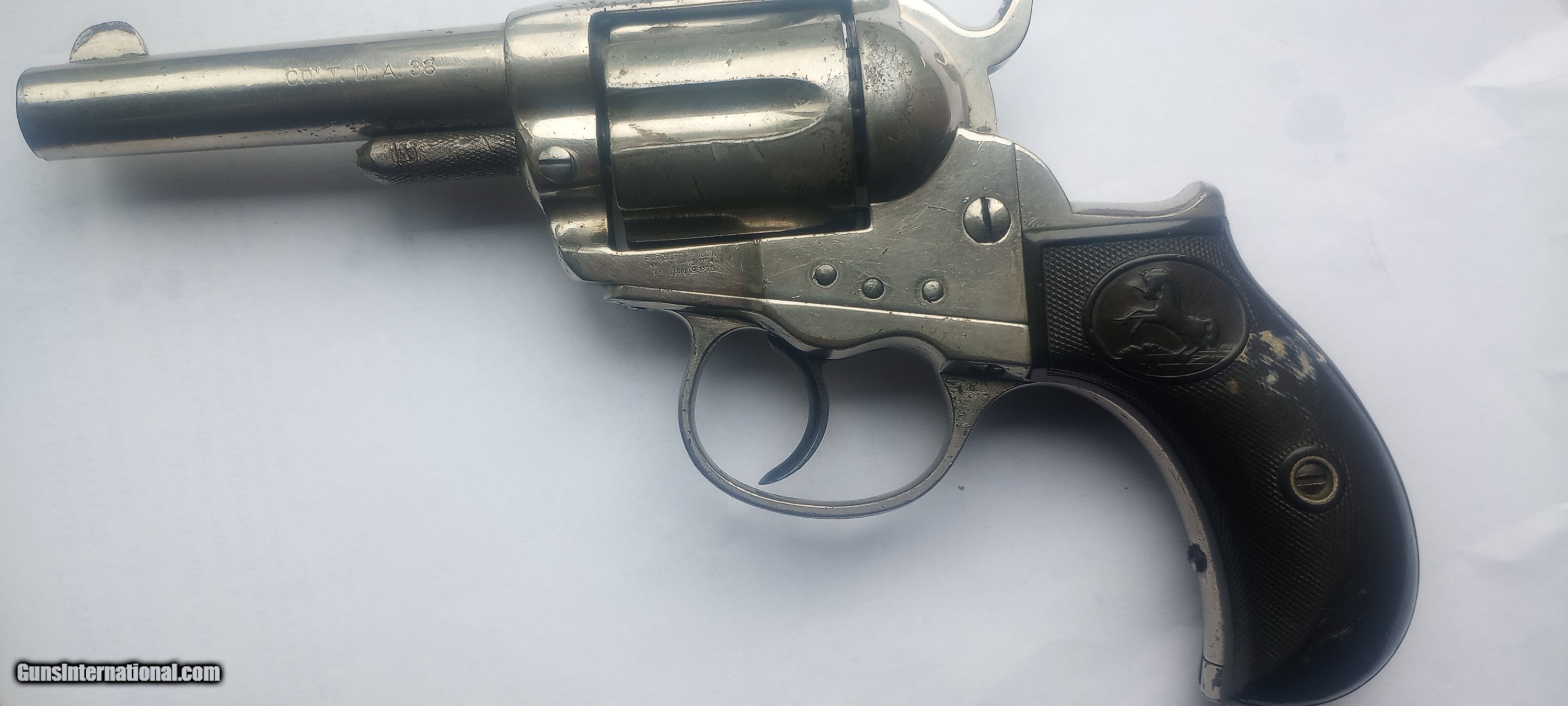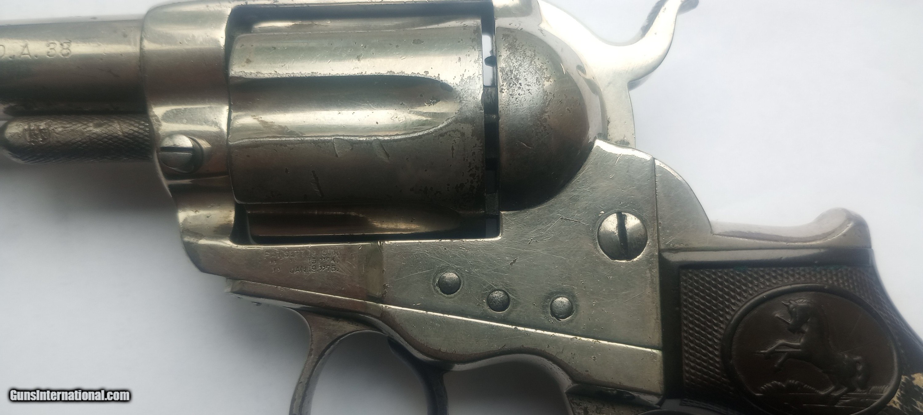 Description: This is the 1877 Colt lightning sheriff's model I was made in 1890 everything functions and locks up as a decent bore it was nickled some of the nickel is starting to come off. SOLD Antique: Yes Manufacturer: Colt Model: 1877 Barrel Length: 3 Condition: Good Bore Condition: Good |
