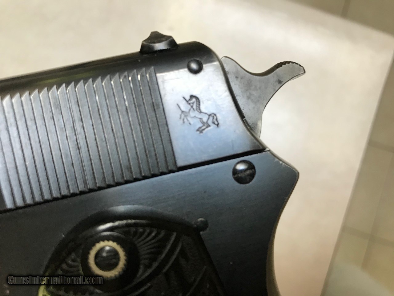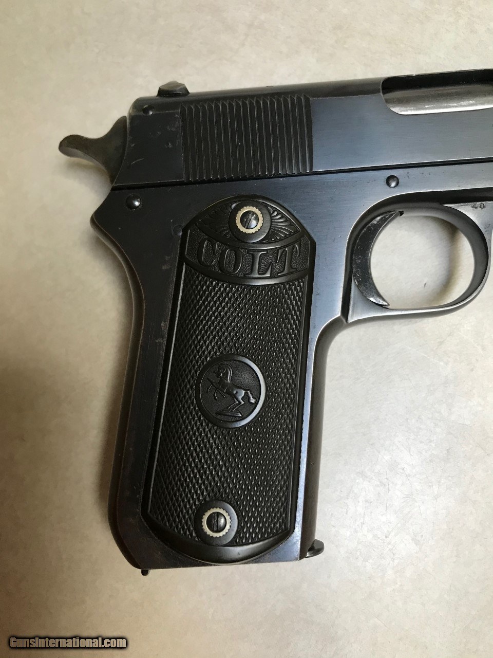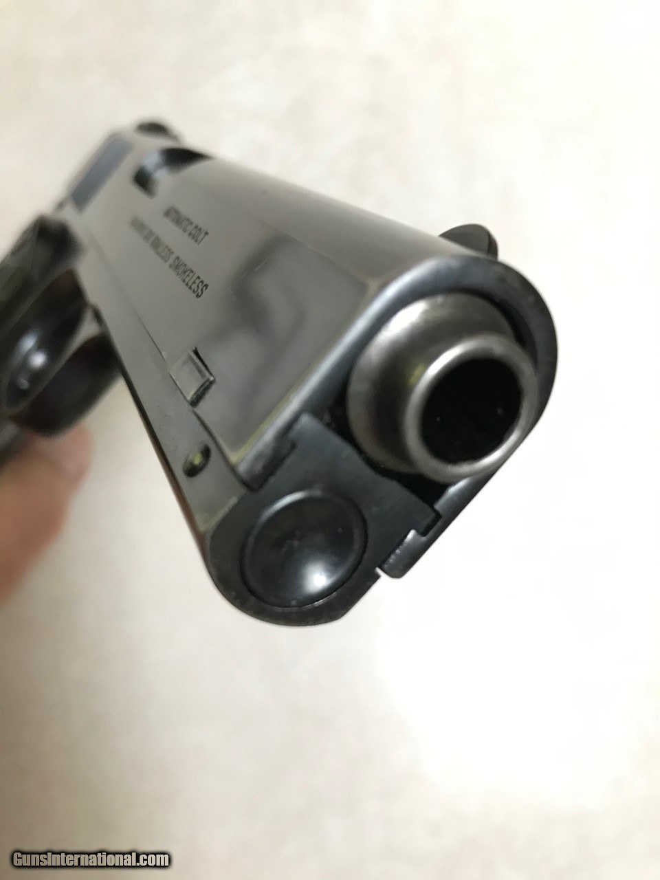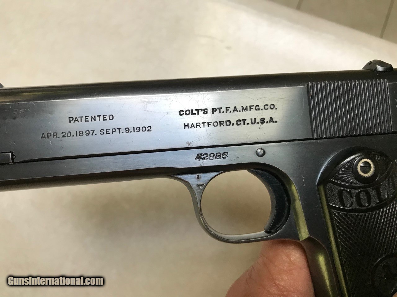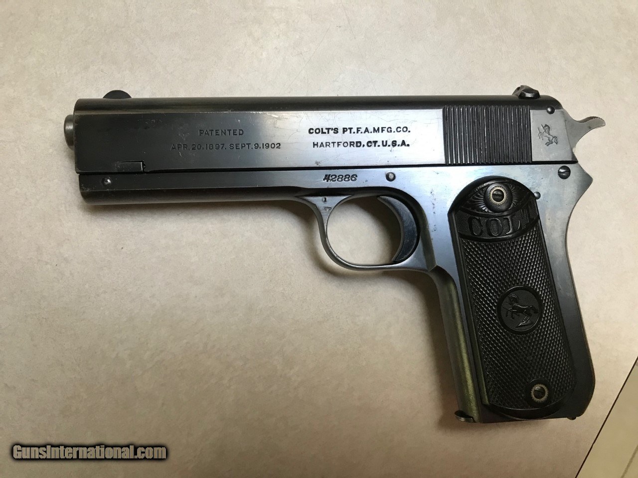 Description: Colt 1903 Pocket Hammer 38ACP cal. SER# 42886 MFG in 1920 Original blue finish . All original parts and very nice grips. Excellent Bore, mechanically perfect. correct polished in the white end of the barrel and polished hood of barrel. the Cross pin up front is minty . nice trigger pull. grips in great shape grip screws are very nice, magazine has the correct words on the bottom. the finish on the sides of the mag have thinning blue finish. I have shot this piece with Factory 38 acp ammo and it functioned perfect and at 20 yards will put a grouping of 25 rounds that you can cover with your fist. Very accurate shooter. All in all still a nice piece in very nice condition.The front and rear strap have a blue brown patina. You can see these gangster guns in many old movies. Call with any questions any time. Tom 612 859 5673 FFL or C+R needed Cashiers ck or Postal money orders please. ( SALE PENDING ) SOLD SOLD Curio/Relic: Yes Handgun Caliber: .38 Auto (.38 ACP) |