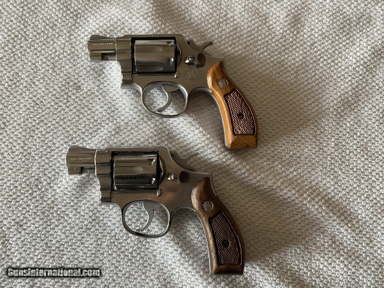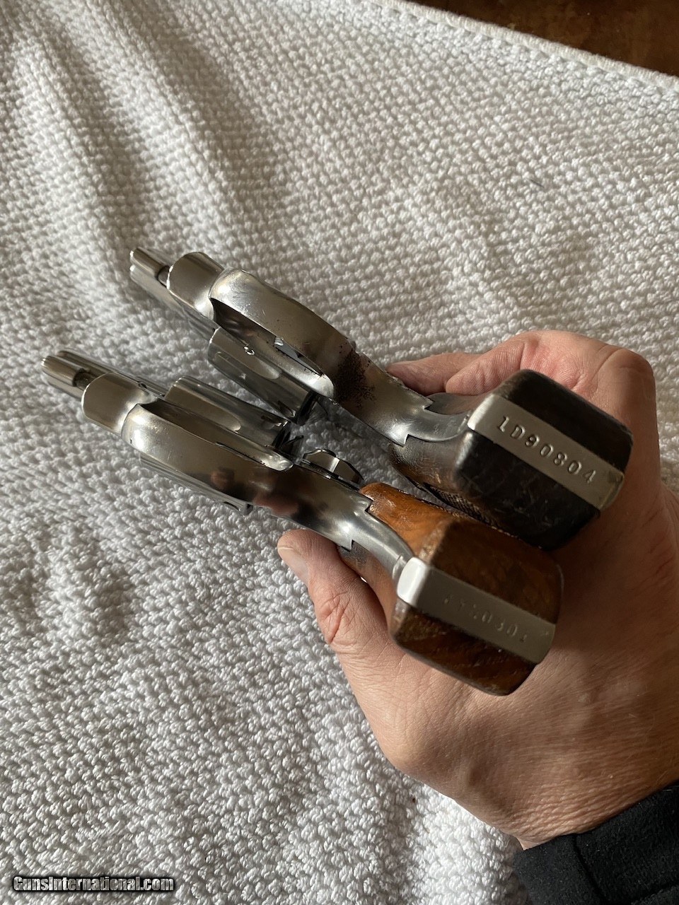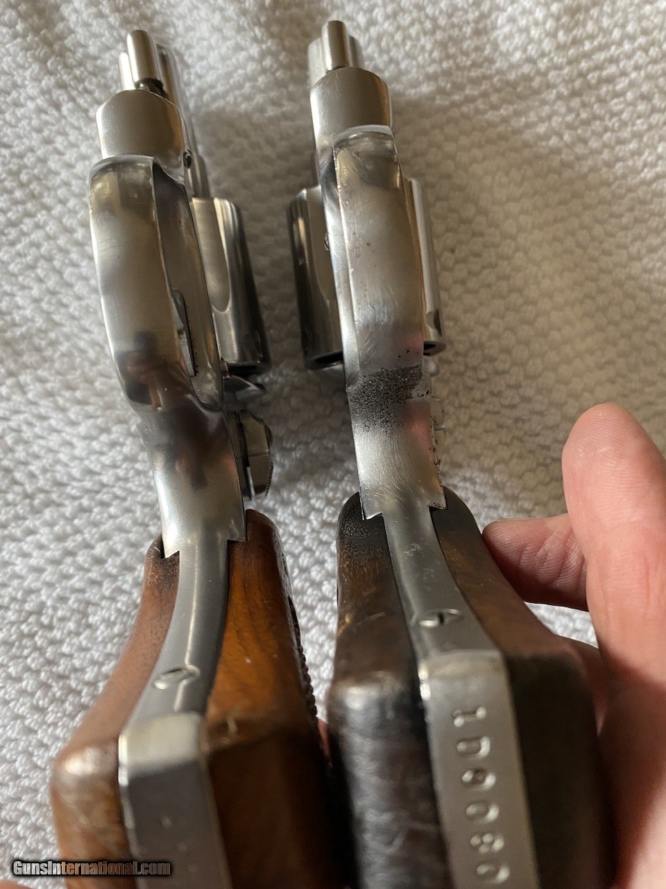 Description: For the guy who needs 2 S&W 64-2 with a 2" barrel. 1 for carry and one for the truck or tackle box. Both guns are mechanically perfect, timing and lock up spot on. 1 revolver is in nice cosmetic condition with only minor flaws, the other revolver has some pitting on the trigger guard and frame by the grip horn, mechanics are fine, just cosmetic issues. The 64 with cosmetic issues has a pinned barrel, the other does not, both come with factory stocks. So you get 2 guns for this price. price includes shipping ffl to ffl SOLD Manufacturer: S&W Model: 64-2 Barrel Length: 2 |