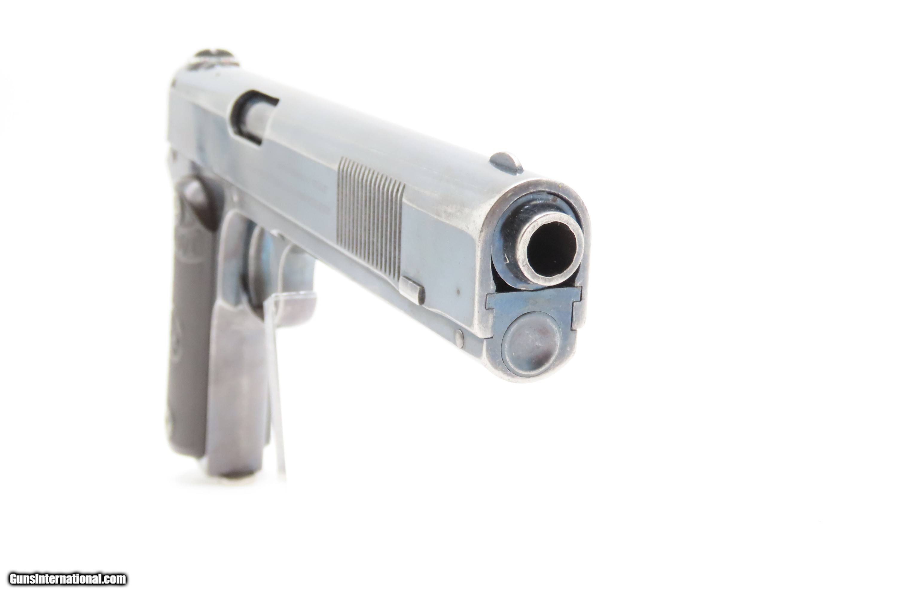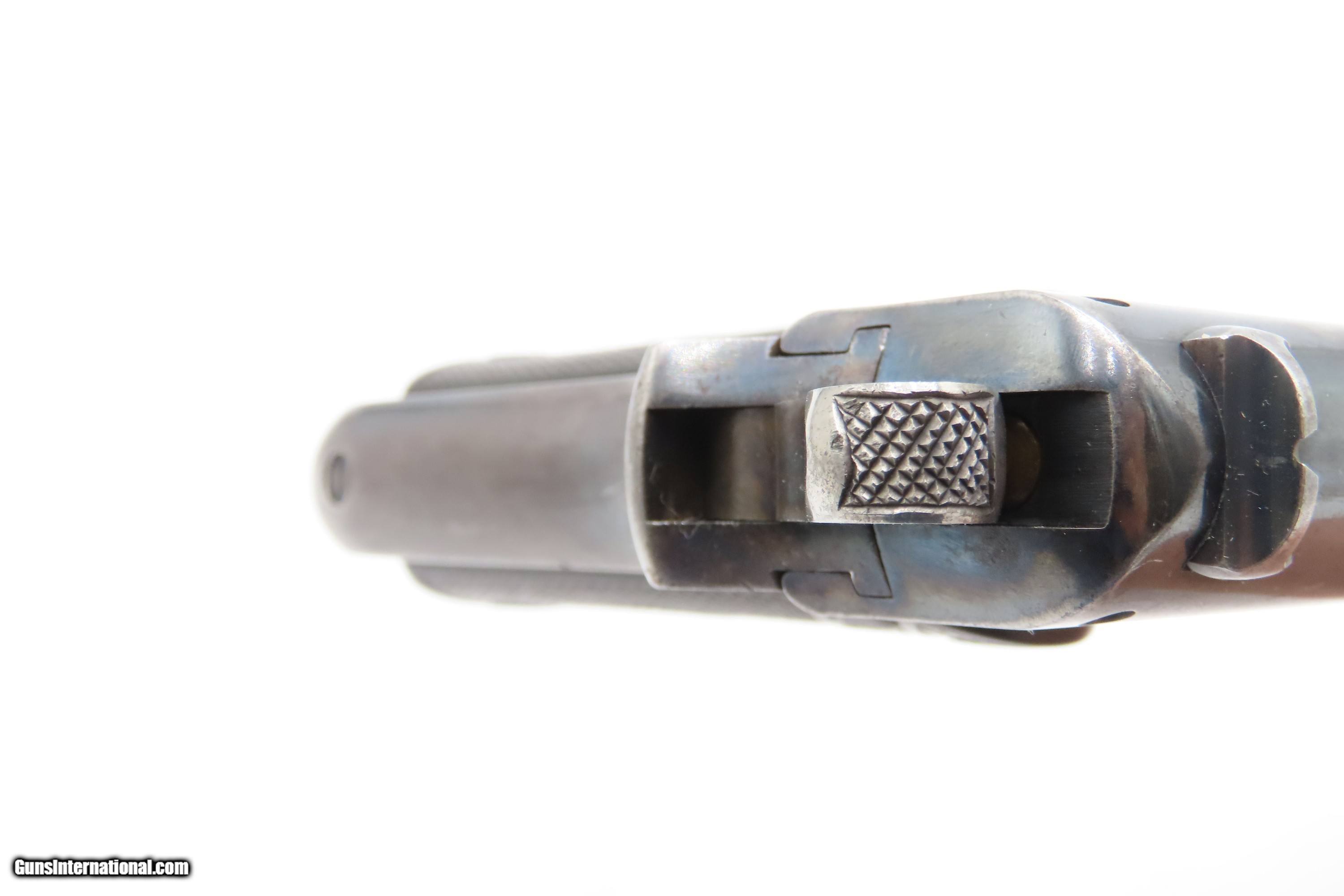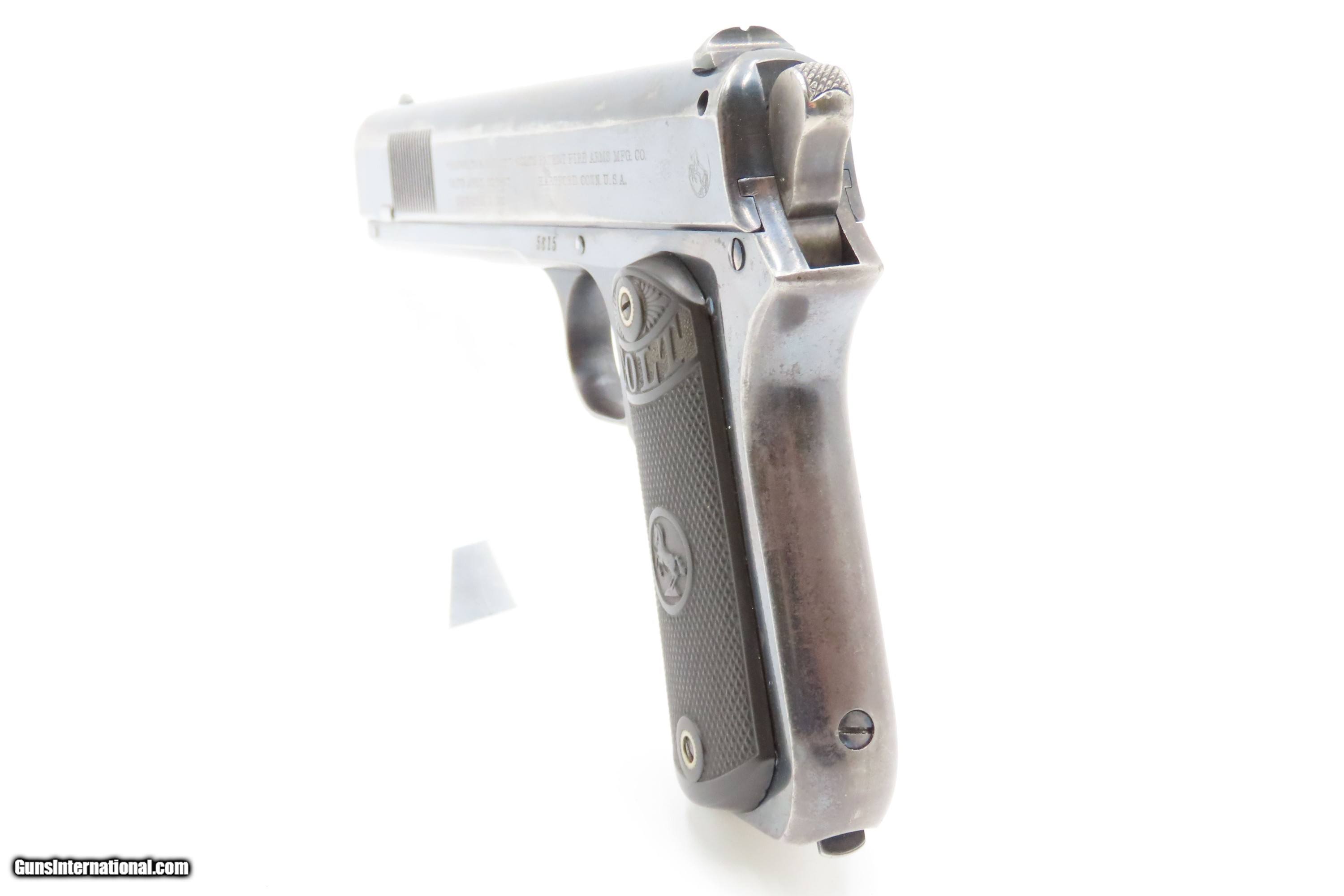 Description: Scarce 1903 Mfr. COLT M1902 Semi-Automatic .38 ACP “SPORTING” Pistol C&R 1 of 6,927 Manufactured; Designed by JOHN BROWNING Here Ancestry Guns presents a C&R Colt Model 1902 Semi-Automatic “Sporting” Pistol manufactured in Hartford, Connecticut in 1903. The Sporting Model was manufactured between 1902 and 1908 with a total of 6,927 pistols produced. Manufactured concurrently with the “Sporting” Model was the “Military” Model with a production run between 1902 and 1928 with a total of 18,068 pistols manufactured. The Sporting Model 1902 variant was slightly lighter and smaller than the military version, with a more rounded grip frame. As mentioned above, in 6 years of production a total of 6,927 Sporting versions were manufactured. In the period of 1902–1907 the Sporting Models still outsold the military models, 6,927 to 5,500 and when production of the Sporting Model ended in 1907, sales were still steady. Perhaps unexpectedly, with the end of Sporting model production, the Military Model sales actually began to decline until 1913, The Model 1902, developed by John Moses Browning and produced by Colt, was an improved version of the Model 1900. It led to three related pistols: the Sporting Model, the Military Model, and the Pocket Hammer Model. The 1902 Sporting was nearly identical to the 1900, sharing the same serial range. The Military Model had a longer grip frame and an extra round in the magazine, while the Pocket Hammer had a shorter barrel and slide but kept the Sporting grip frame. The overall condition is fine. Much original blue is preserved. The action is excellent. Frosted bore with strong rifling. Markings are sharp. Both grips are in fine shape. Matching numbers. Own the original! This firearm is classified as a Curio & Relic. Barrel is 6 inches. Caliber: .38 ACP Overall condition as seen in photos. Very Fast. Very Safe. FREE SHIPPING. Will need to be sent to your local FFL or C&R licensee. This firearm is classified as a Curio & Relic. Guaranteed AUTHENTIC & Includes CERTIFICATE OF AUTHENTICITY. ancestryguns $3300 #259684 Curio/Relic: Yes Price: $3,300.00 Buy Now Pay with