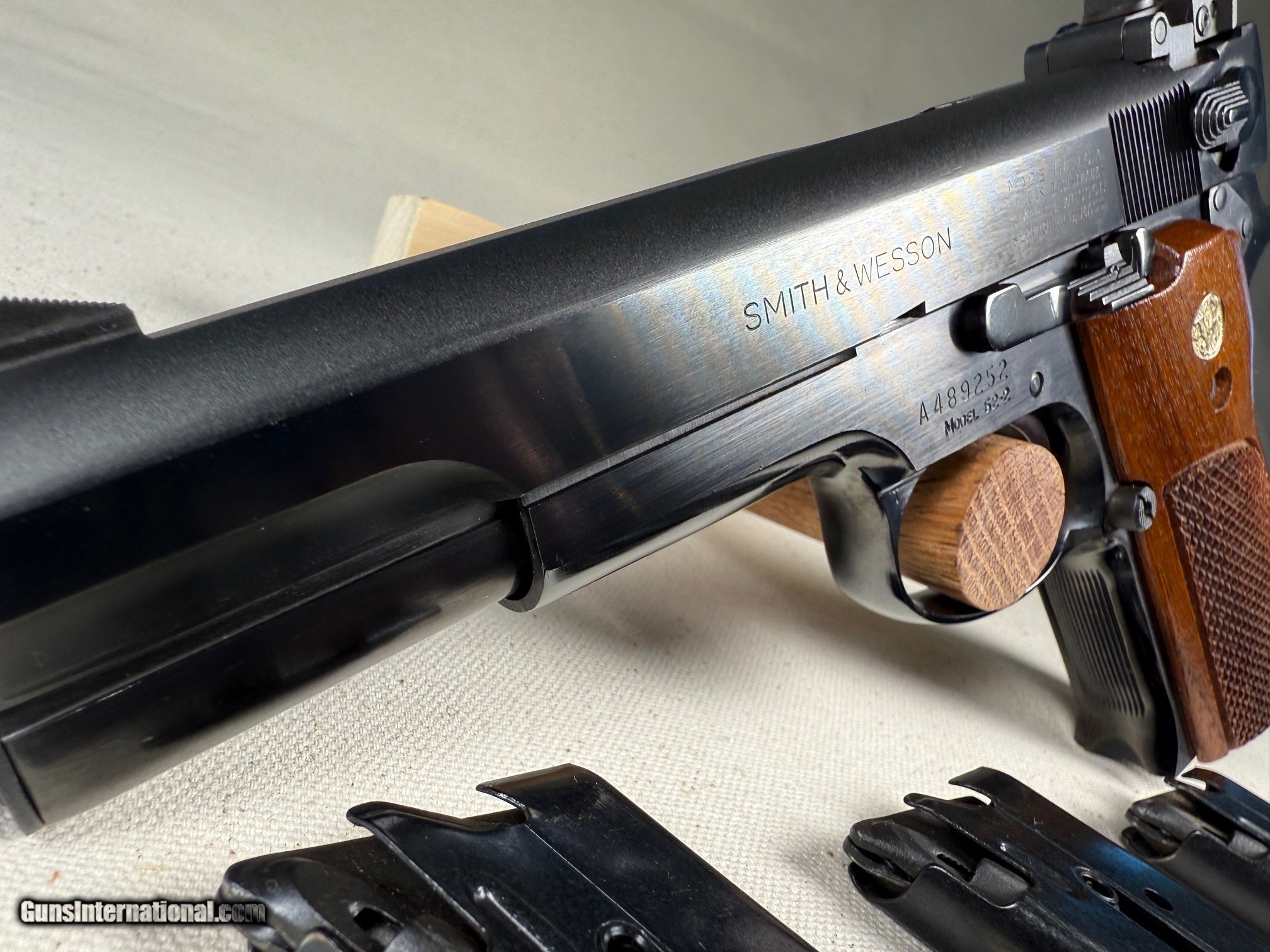 Description: Smith & Wesson Model 52-2 - Excellent Condition - Includes 3 Magazines Up for sale is a highly sought-after Smith & Wesson Model 52-2, a legendary target pistol known for its precision and smooth shooting characteristics. This particular firearm is in excellent condition and includes three original magazines, making it a complete package for collectors and target shooting enthusiasts alike. Key Features: