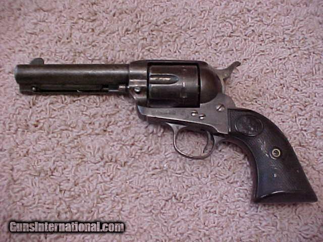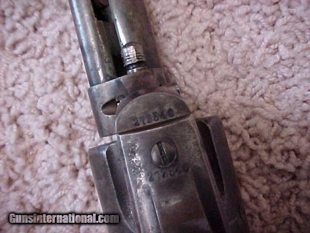 Description: A very good Colt single actio army, first generation. SN 272xxx all matching. It is a 4 3/4" x.38-40 pistol and would be a great shooter. The bore is excellent with strong rifling and no pits. All markings clear and the action is crisp. The gun indexes well and locks up tight. Grips are hard rubber and show little wear. SOLD Curio/Relic: Yes |