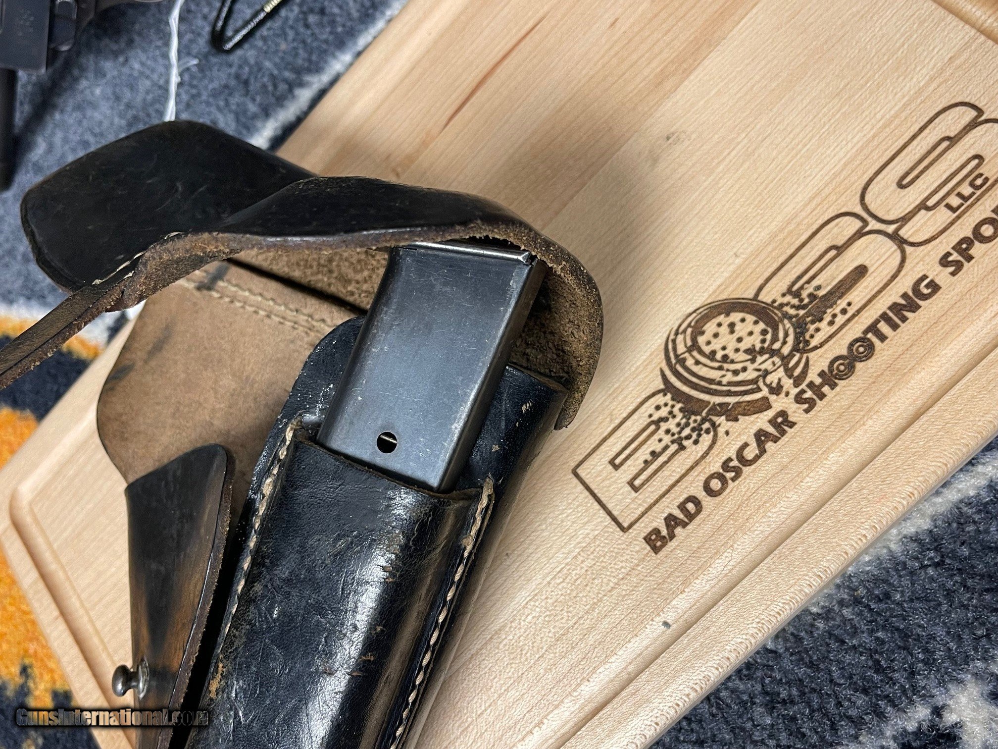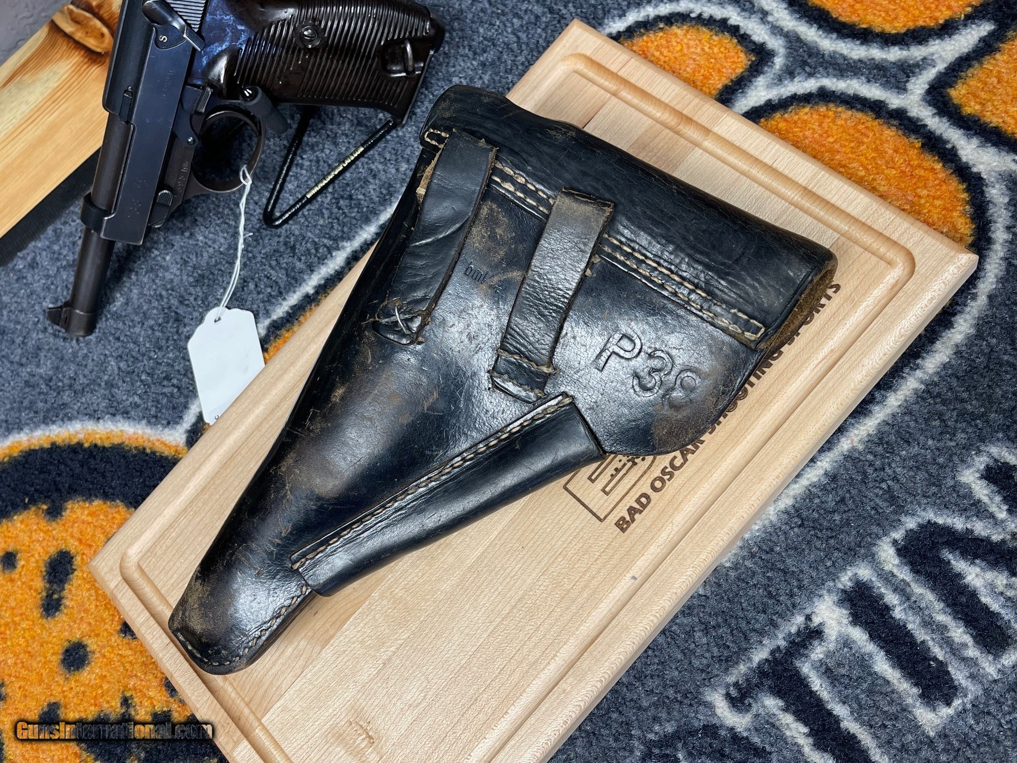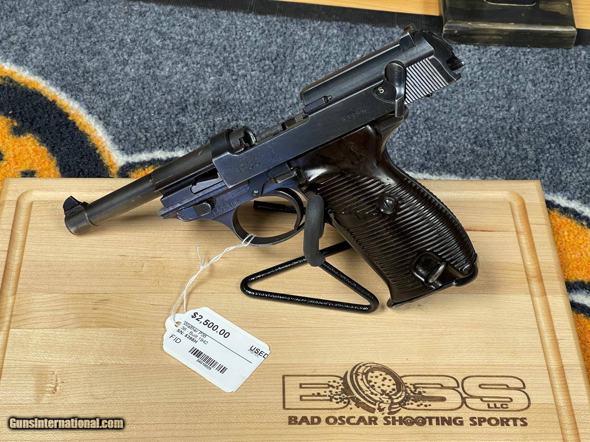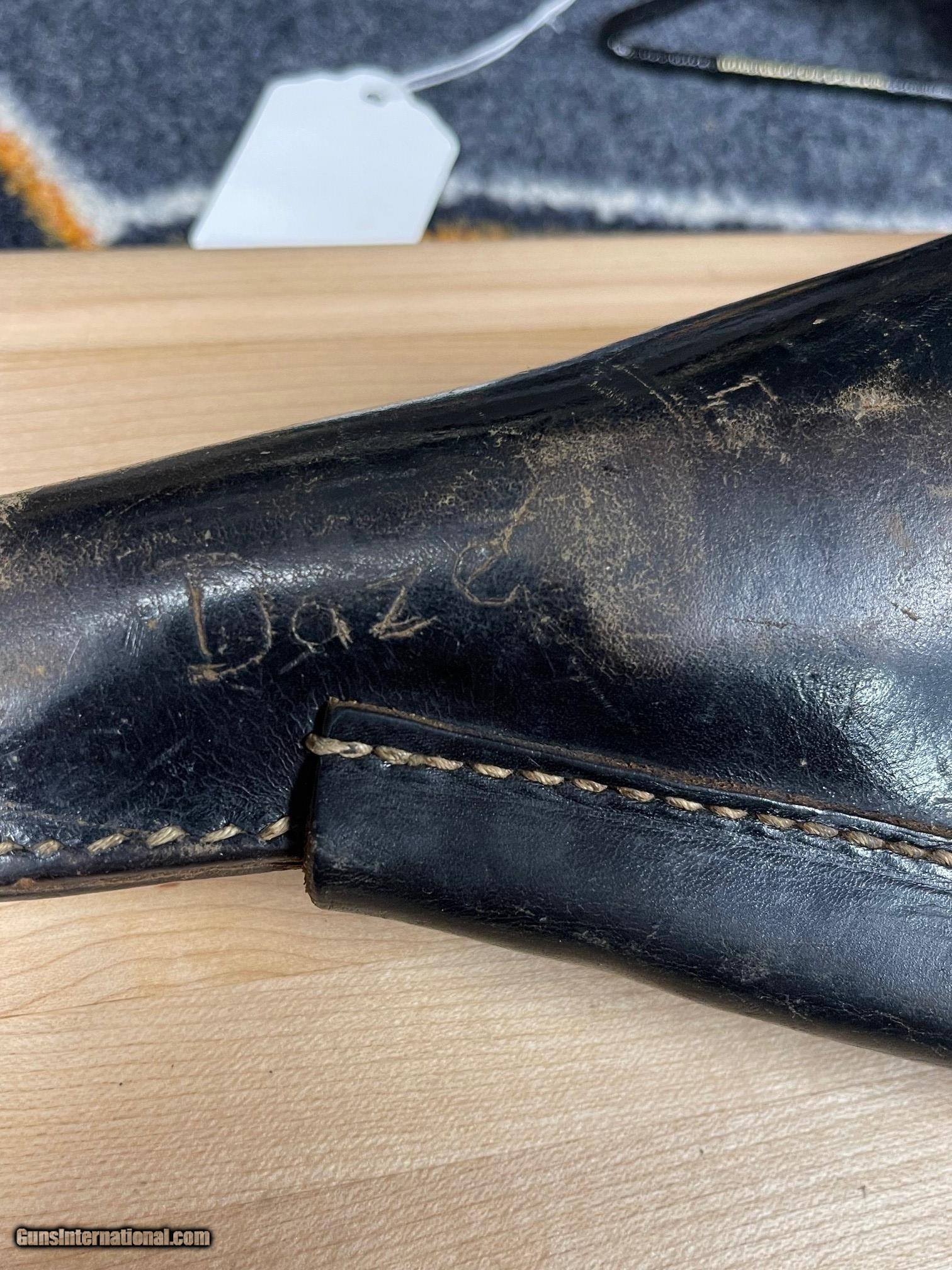 Description: On consignment... A very unique find! Walther P38 Greman Service pistol with original holster and the the Greman soldiers name scratched into the holster. For our collectors out there you will find this one very much worth adding to your collection! Extra mag in holster. For more information contact Don at Bad Oscar Shooting Sports at 715-388-8411 or mobile at 414-915-9609. SOLD Curio/Relic: Yes Manufacturer: Walther Model: P38 German Service Serial Number: 5395H Condition: Good - Collector Manufacture Date: 1942 Extras: Original Holster Item Location: Wisconsin |