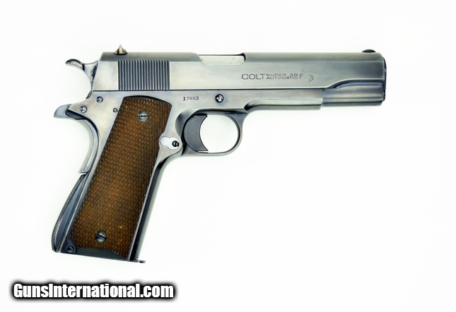 Description: Colt Super 38 .38 Super caliber pistol. Manufactured approximately in 1935. Excellent bore. Actions works perfectly. Grips are excellent. This gun is an excellent old refinish that is hard to detect. Looks original but in our opinion it is really good restoration.
