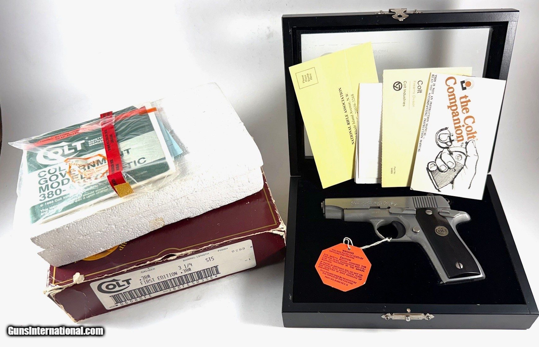 **EXCELLENT** 1989 Colt First Edition Government 380 3.25" barrel with original box paperwork display case 45 38 super MK IV