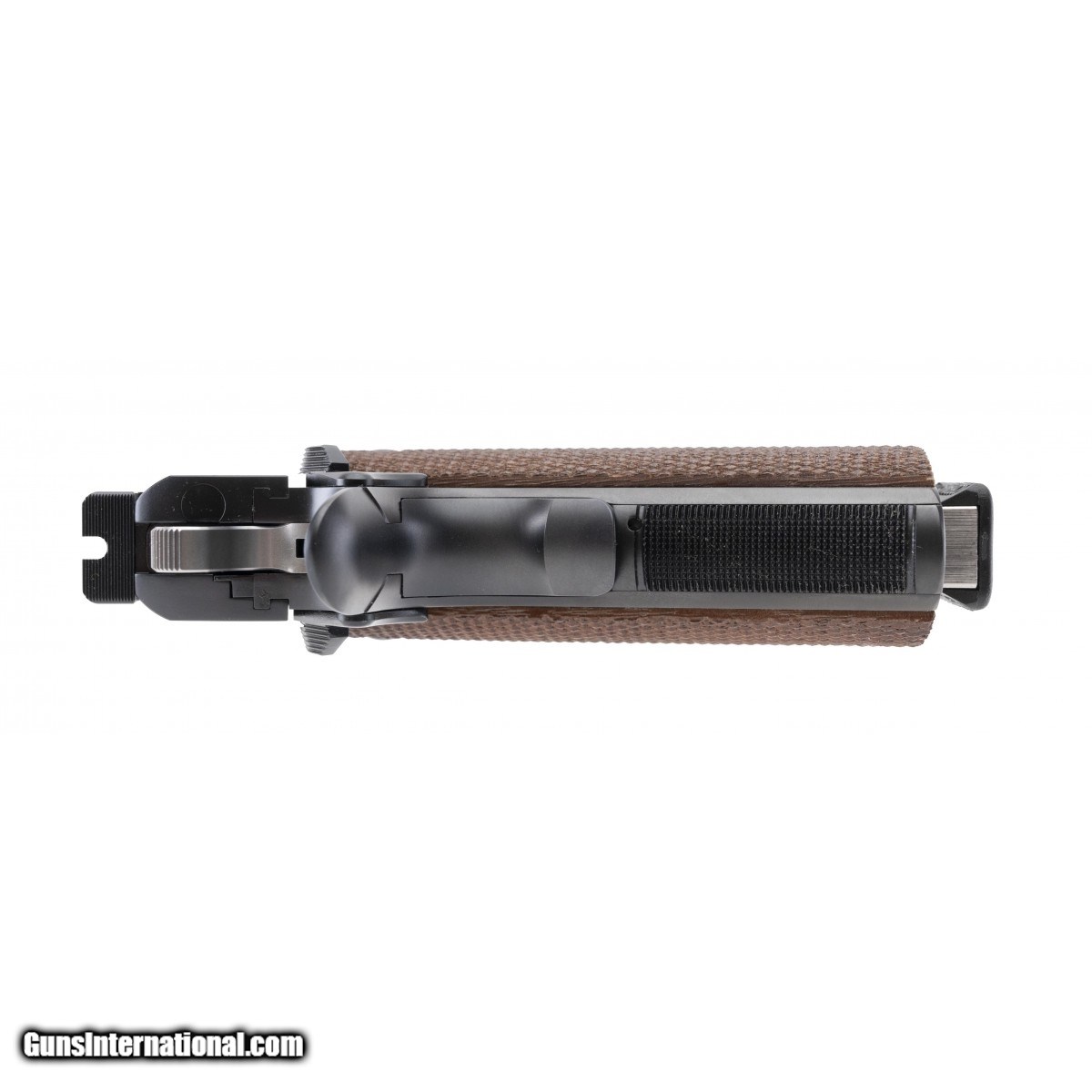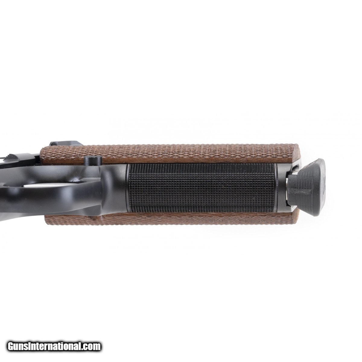 Superb high end 1911 with excellent bluing and checkering. 5 inch barrel with target crown, and ambidextrous safety. Includes soft bag and extra magazines. Serial number matches the model, a rare coincidence! Condition is like new.