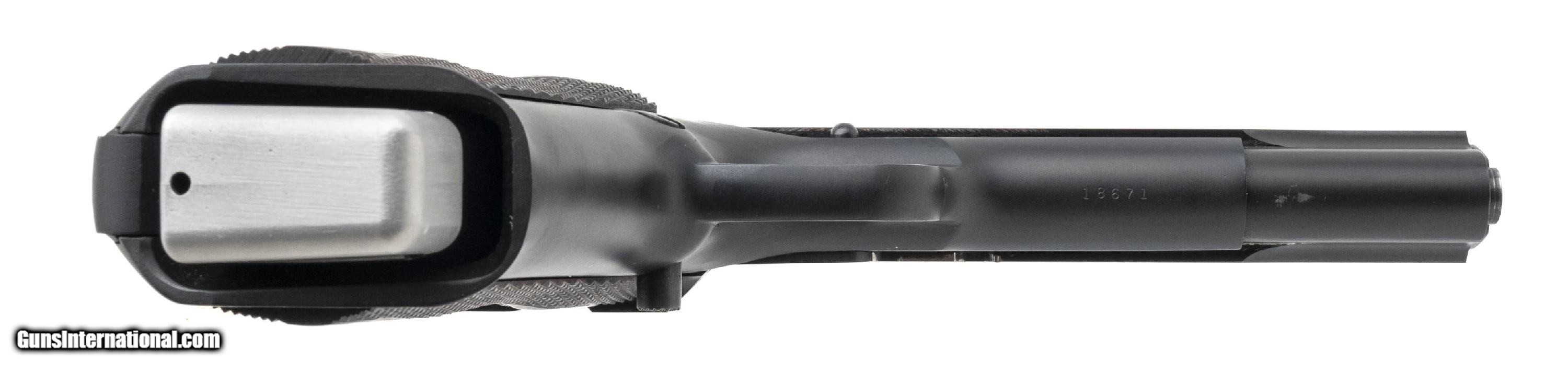 Description: "SN:18671 .Modern production. .38 super with a 5"" barrel. Bore is in excellent condition. Full size custom double stack 2011. Finish and grips are in very good condition. Pistol has adjustable rear sight. Overall condition is very good. Comes with 1 extra magazine and case Price: $1,999.95 Contact Seller |