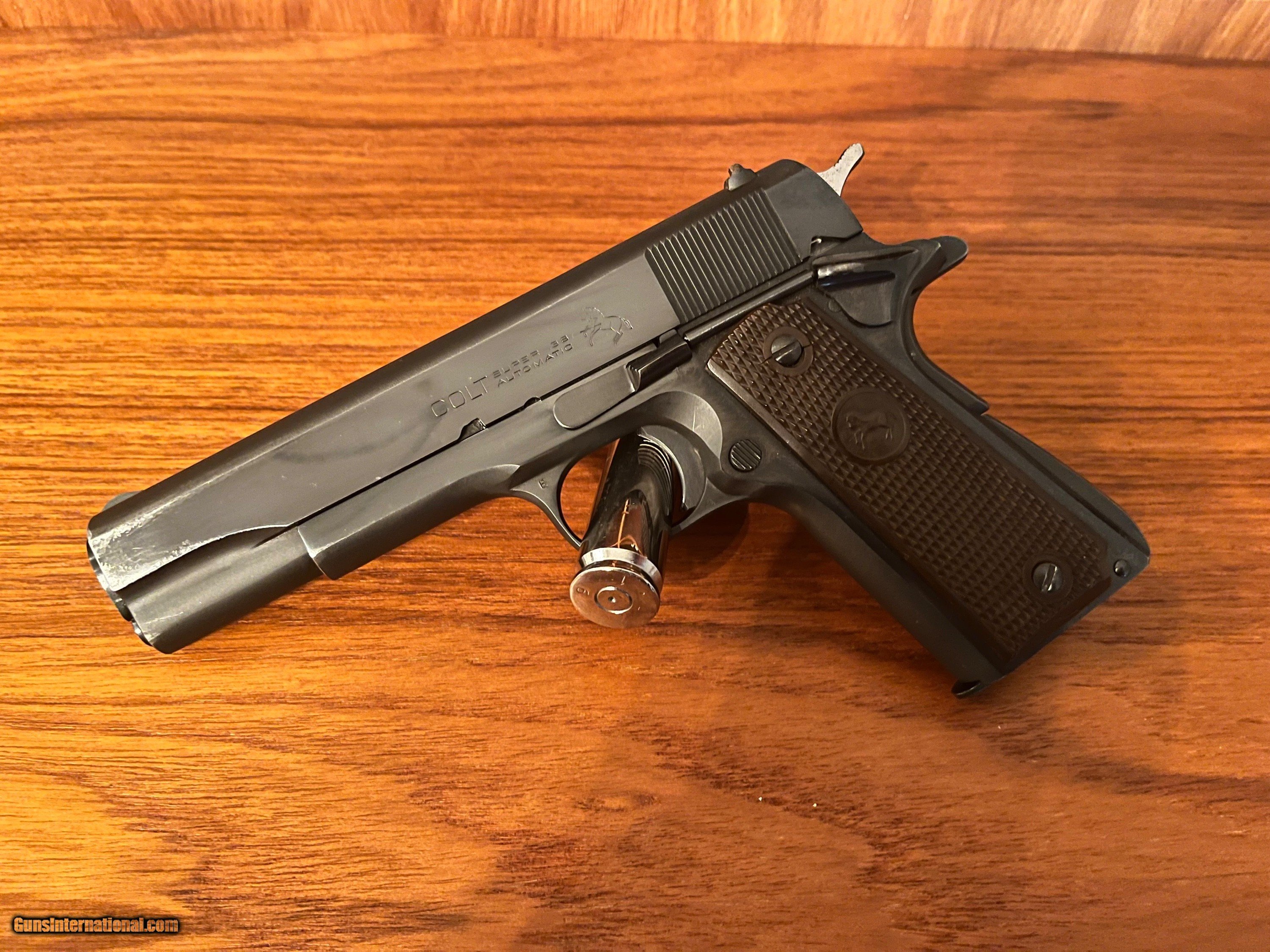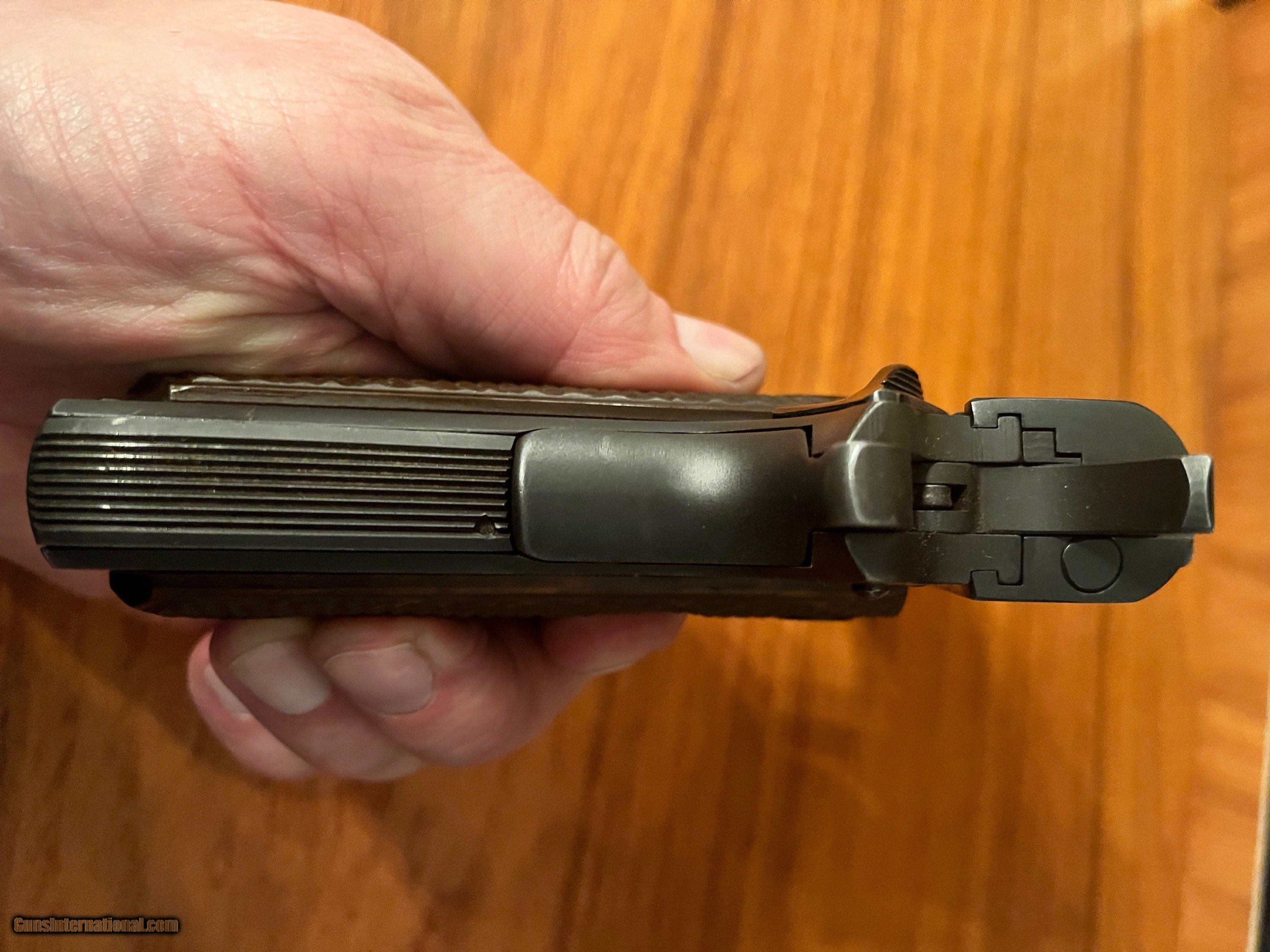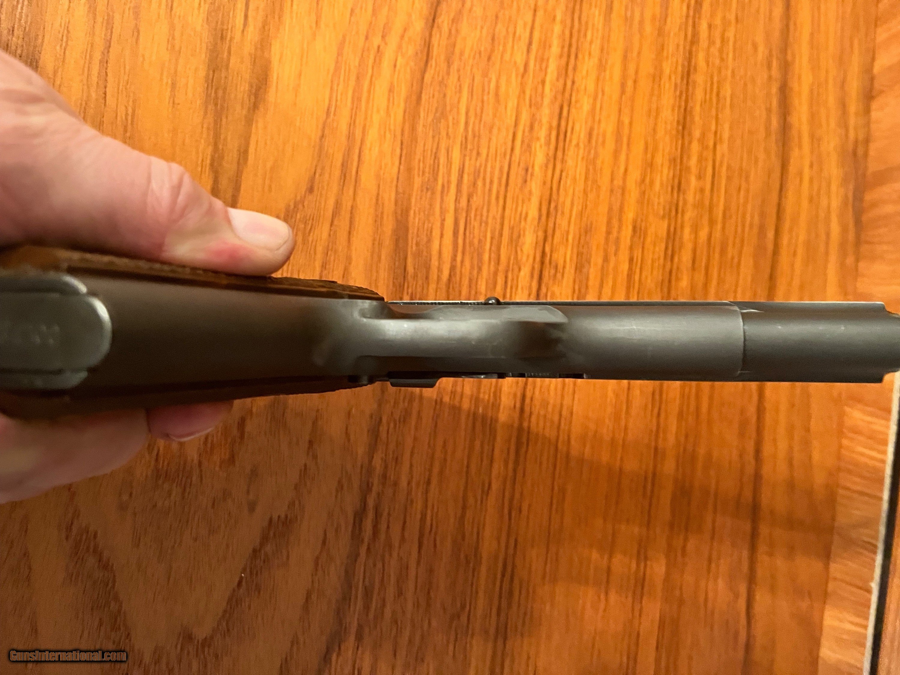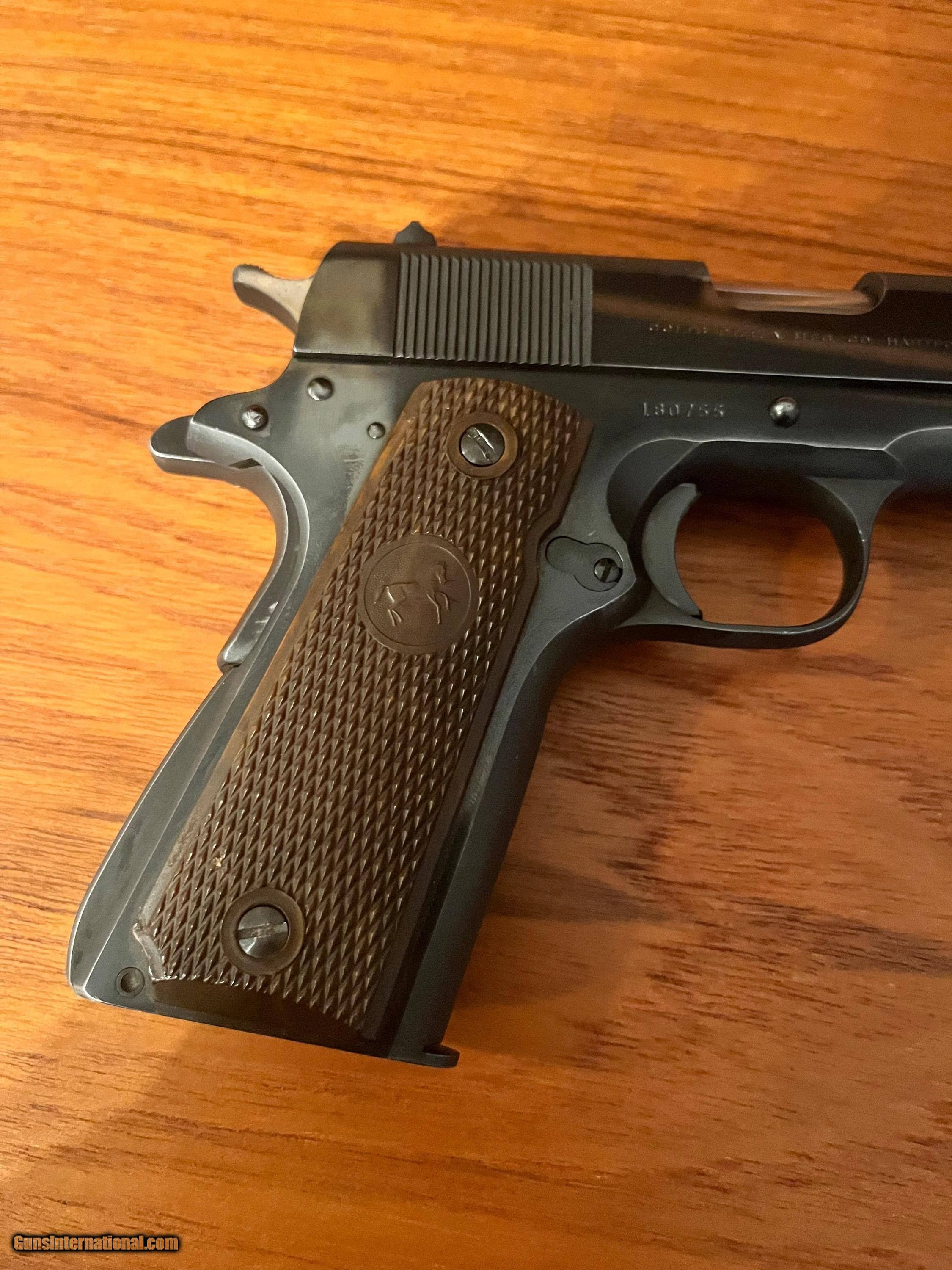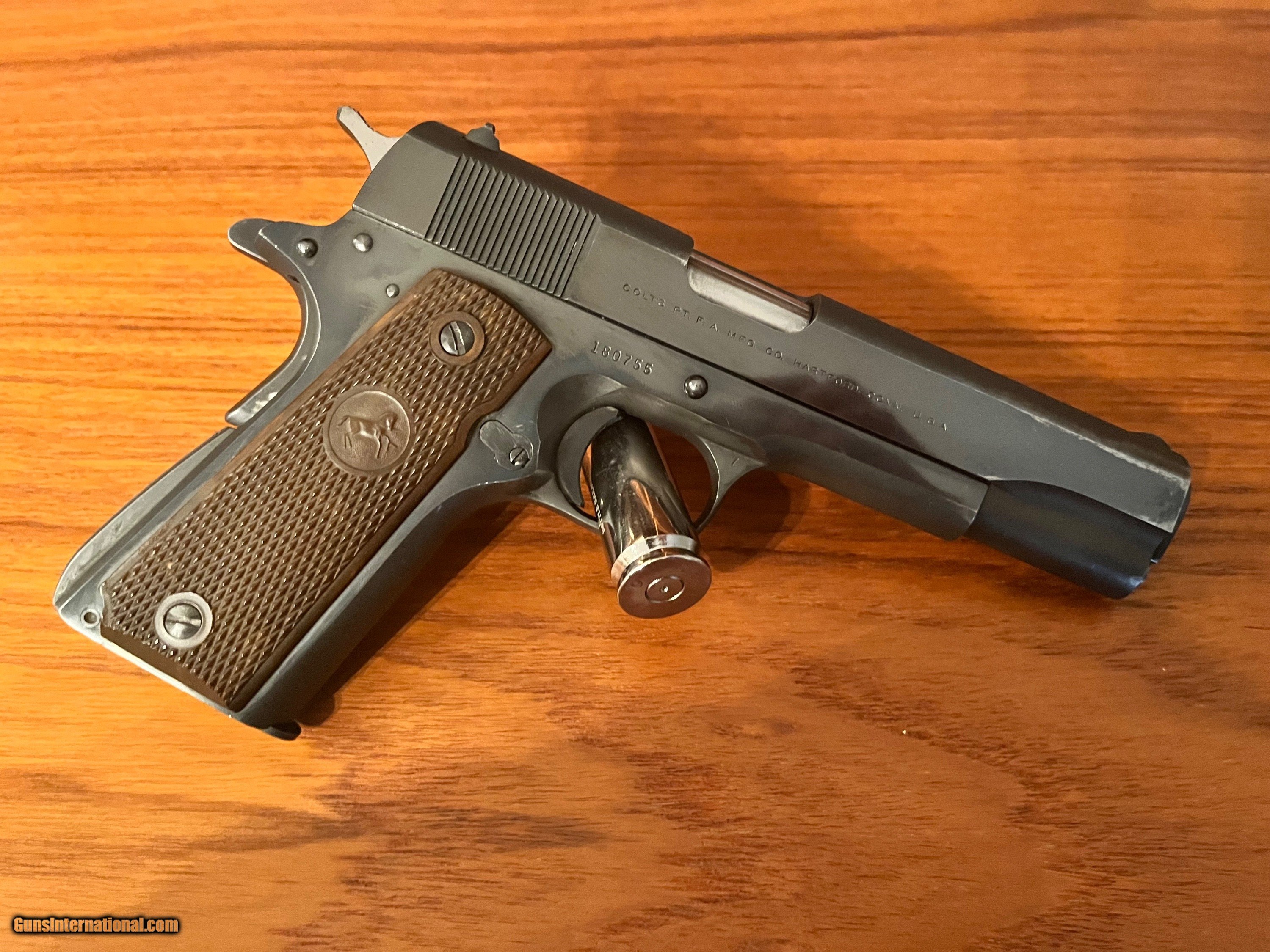 Description: All original, sights, Mag, grips, some front of slide holster wear, the rest of the gun is very nice. Original Bakelite grips have a very small crack by the screw hole that you can see in the photo, but they fit perfectly without shrinkage. Pistol comes with 1 factory Colt mag. price includes shipping ffl to ffl SOLD Manufacturer: Colt Model: 1911 Serial Number: 180755 Barrel Length: 5 Condition: Very good Manufacture Date: 1966 |