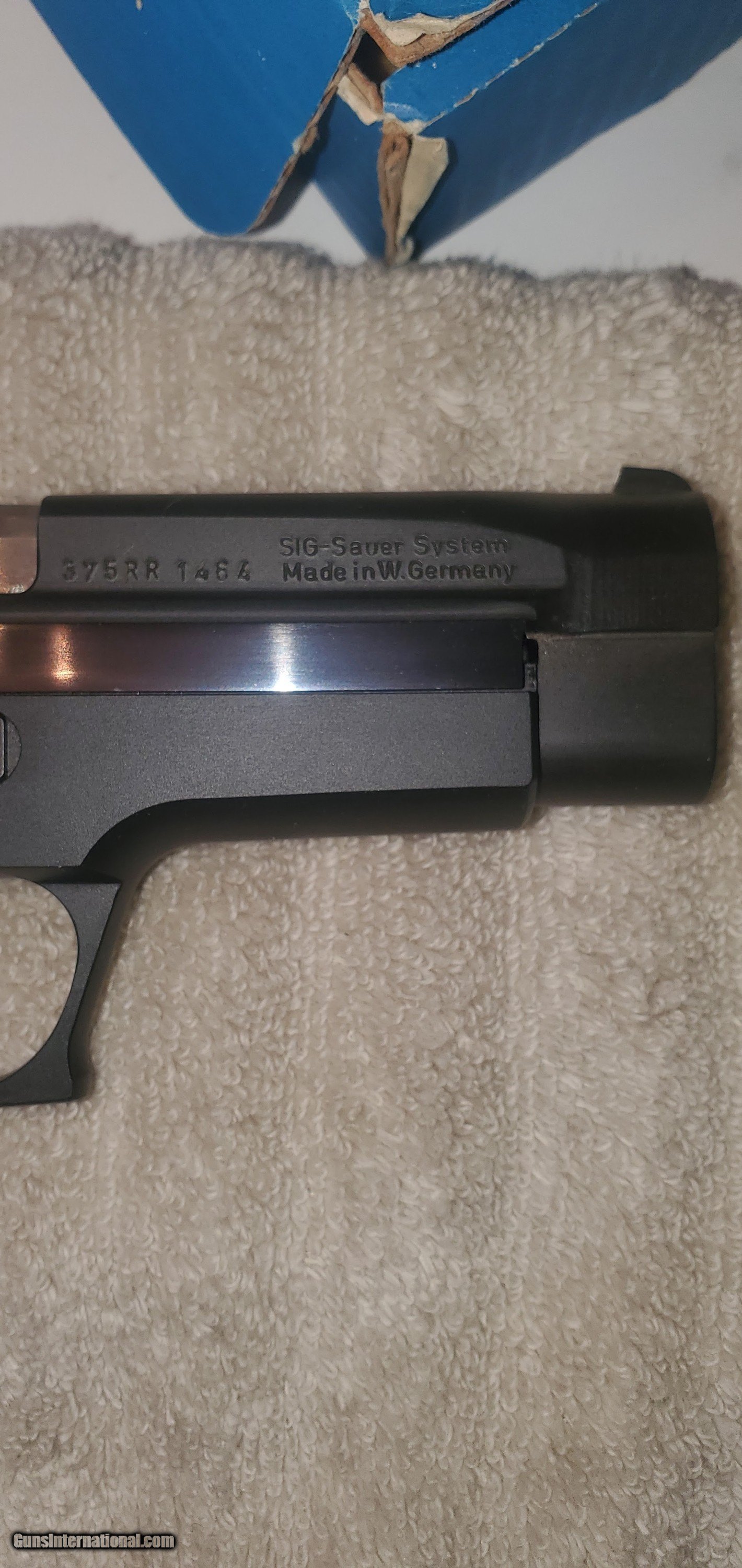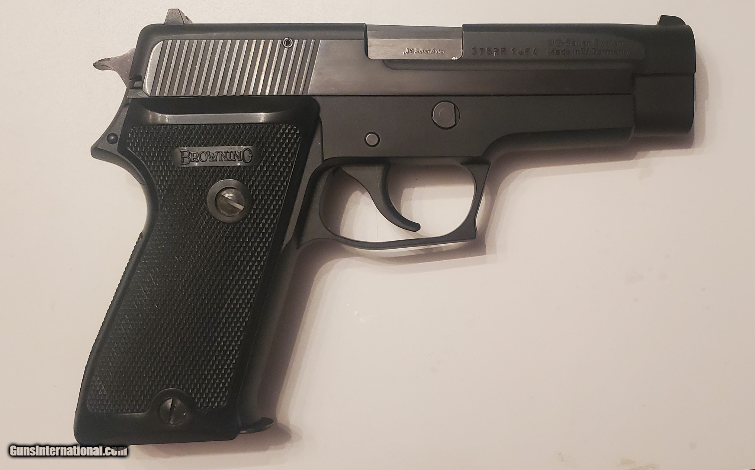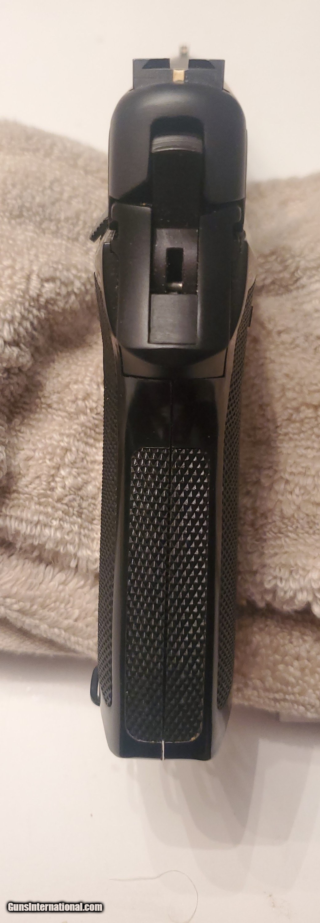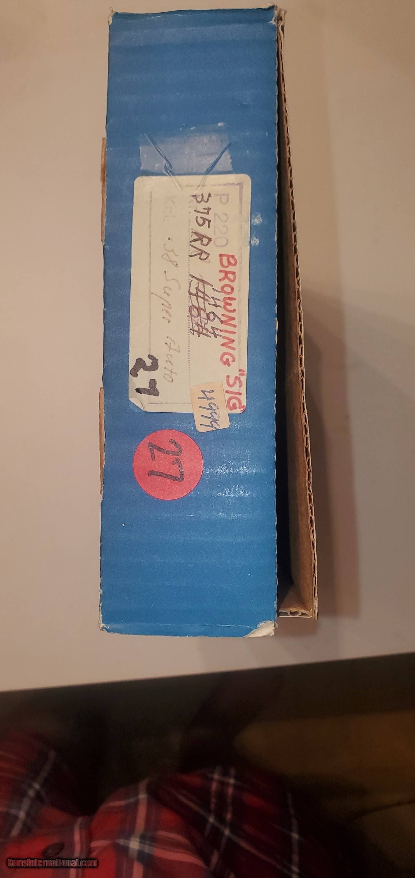 Description: Here we have a very rare Browning BDA in 38 Super. This gun is a Sig Sauer P220 that Browning imported prior to Sig exporting guns to the USA. This gun is in collector condition. HH date code (1977). Only around 750 of these were made. Comes with box, two magazines, and manual with blank registration card. This gun appears to be unfired outside of the factory and shows virtually no wear. Serial numbers match on front strap, barrel and slide. Beautifully polished flats on the slide. European style heel magazine release. This is a very special firearm, and the photos tell the story. You may never see another one this nice, and the time to buy it is when you see it. Ships FFL to FFL. Would prefer that a copy of the receiving FFL accompany payment. Payment by USPS money orders only. No sales to California. SPF SOLD Handgun Caliber: .38 Super Auto Manufacturer: Sig Sauer/Browning Model: P220/BDA Condition: Excellent Bore Condition: Excellent |