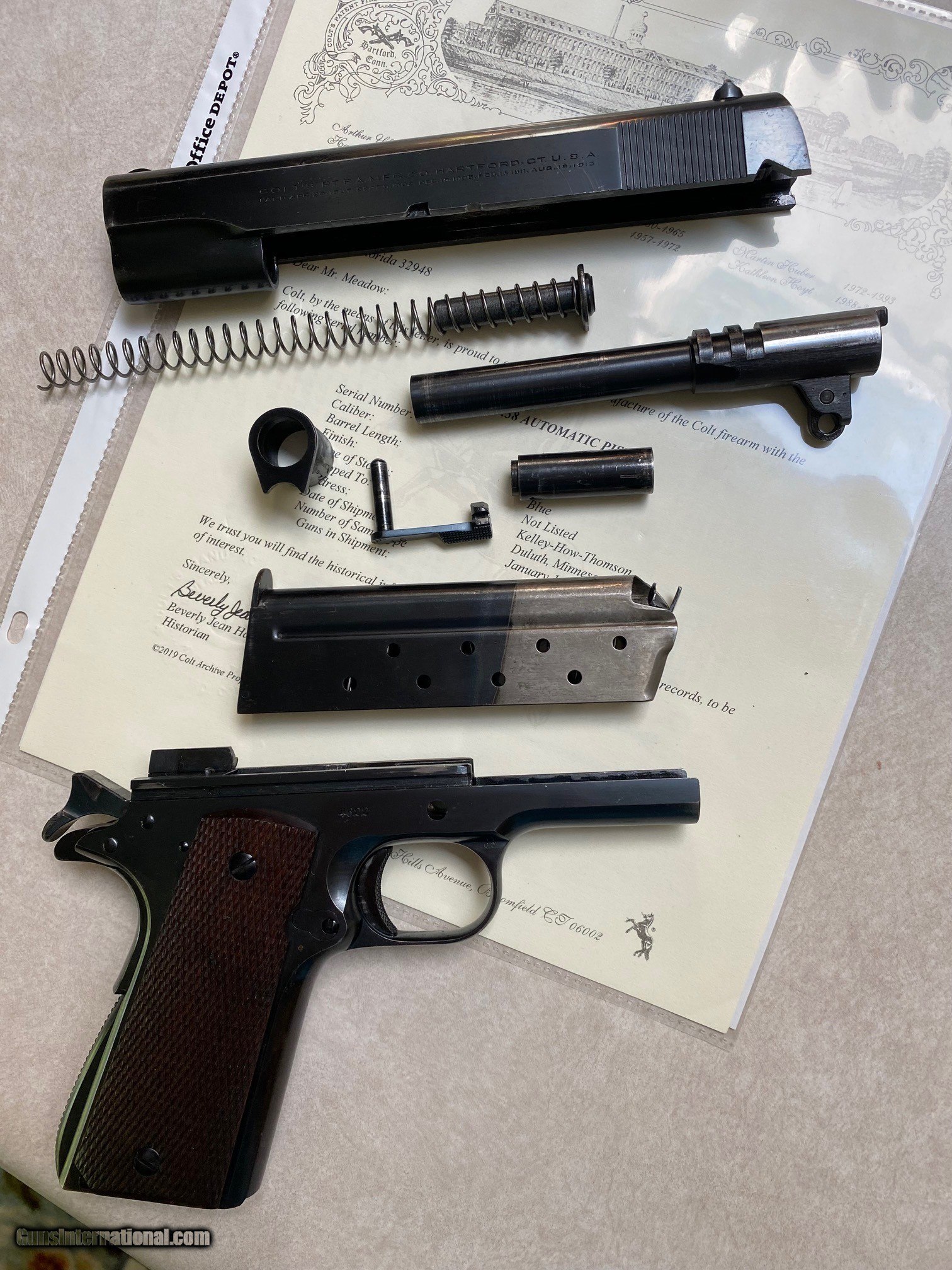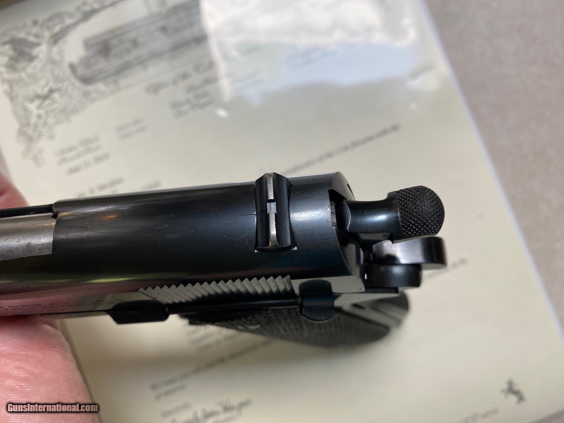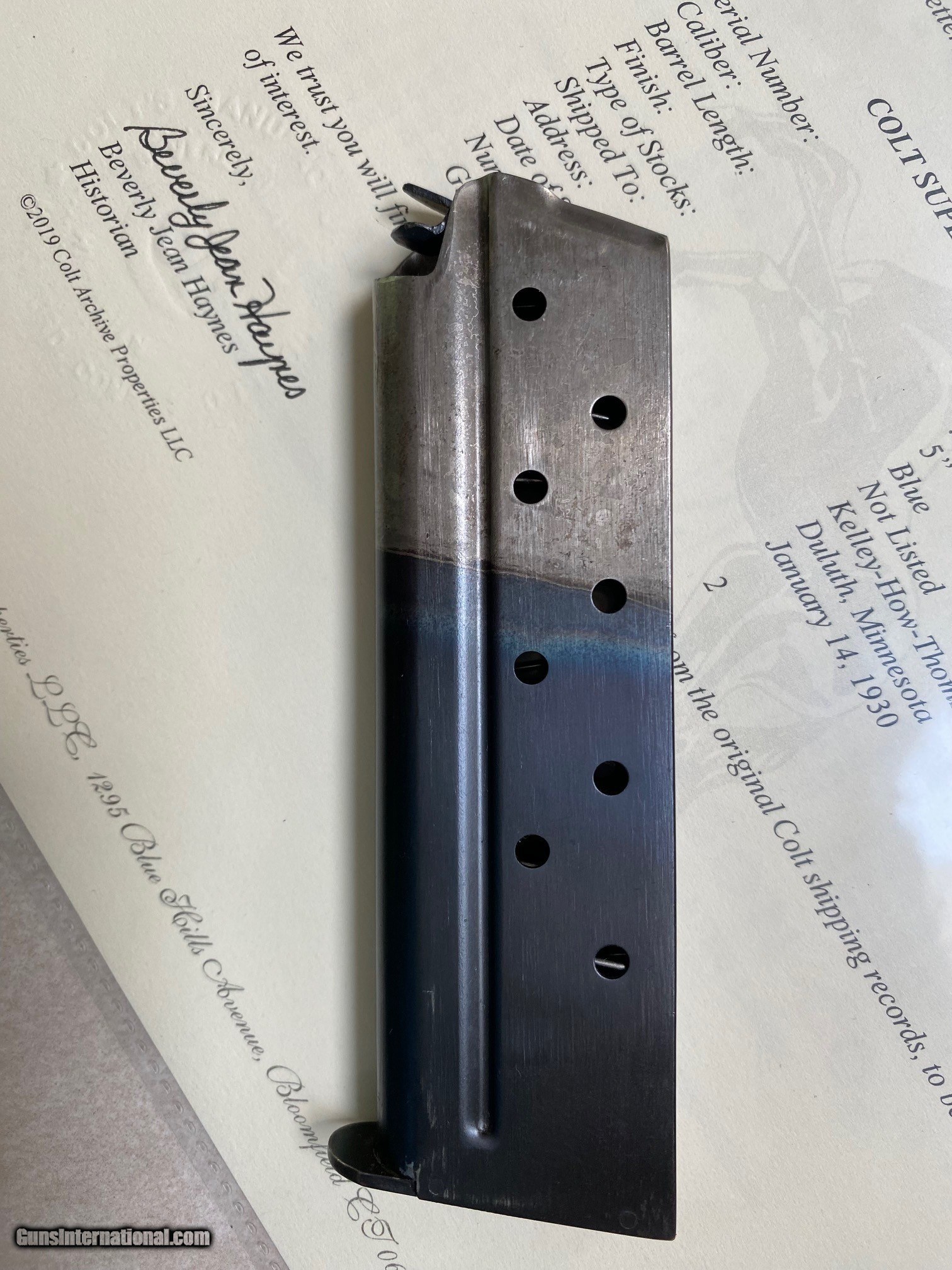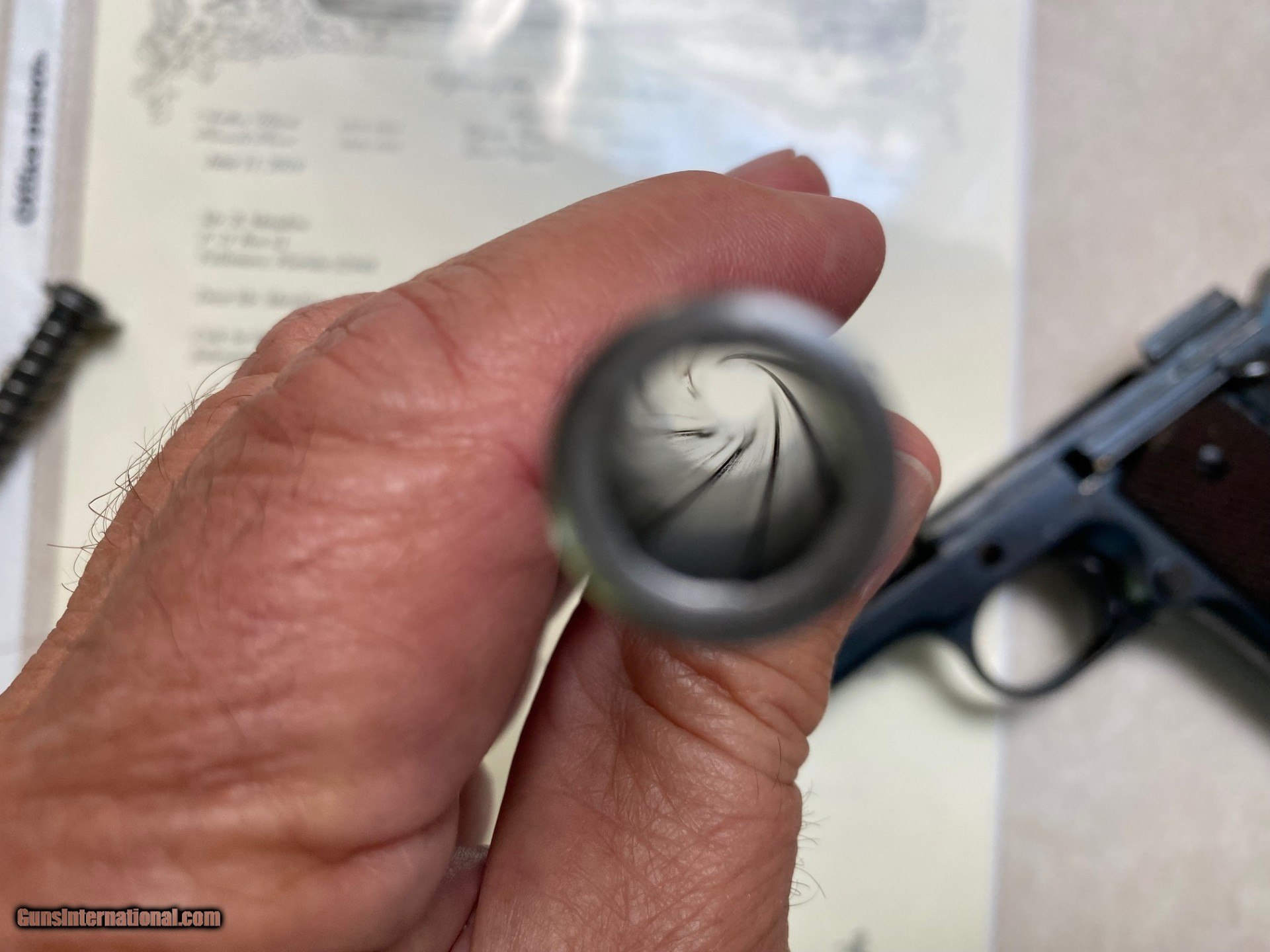 Description: Colt 38 super pre war. Made in 1929 the first year of production. Serial Number 4622 1929. A copy of the colt letter is included. . All original finish and all original parts. The Bore is minty, the mechanics are perfect and in perfect working order. It has very nice high polish finish.The finish is so much nicer and smoother than the pictures it has a polished nice finish not shown by the pictures. The magazine is correct for this piece. The grips are original and in excellent condition. A hard to come by 1929 in this shape. Its very tight and functions as it should and it is a tack driver as i have shot it a few times.It looks as though it hasent been shot much at all. The front strap has very minor wear marks. The barrel is un marked as its supposed to be. Its a totally correct 1929 super with a high percentage of original finish. A few small dummy marks but not very noticable. A nice piece of any collection. The receiver Kelly How Thompson in Duluth Minnesota is in the picture included in the discription. near the bridge. You will be pleased with this piece. Its very nice . Call with any Questions Tom 612 859 5673 I need a FFL or C+R to purchase. Price reduced but will only be for sale for a short time now. SOLD |