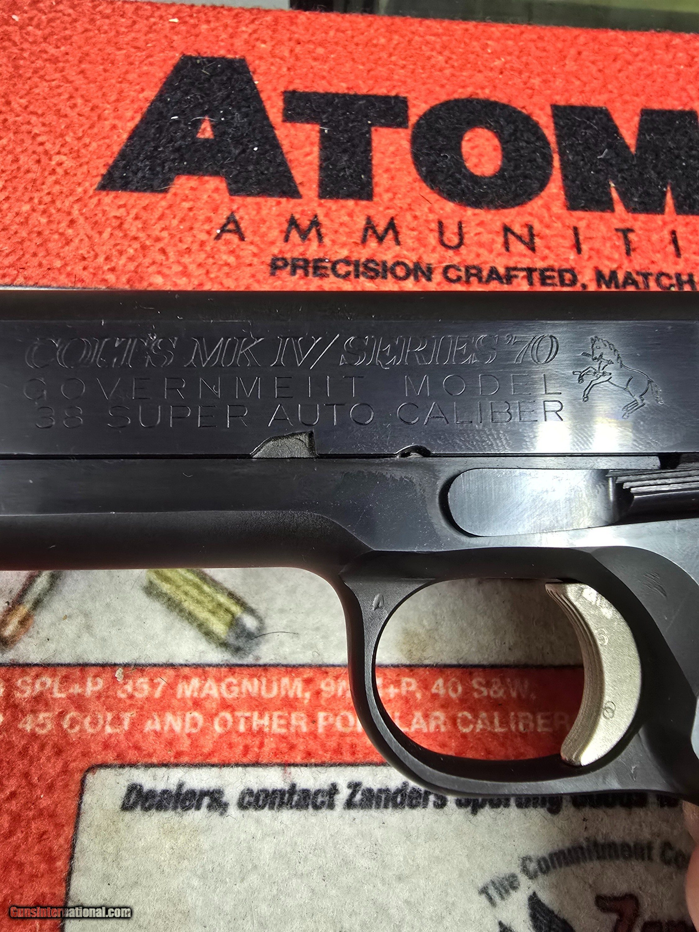Description: Colt .38 Super 70 Series with the large rollmarks near excellent condition minus the slight takedown mark with German Proof Marks shipped to Ulm Germany in 1977. Pistol has Adjustable Micro sights that are ERA correct. Comes with one magazine, manufactured in 1975 making it California compliant and C&R Eligible. We take cards with a 4% Charge, cashiers checks or Money Orders. Buy now price includes free shipping. This Colt can be shipped to CALIFORNIA. Zaap Tactical Firearms LLC PRICE: $5000.00 ADD 50.00 SHIPPING – HANDGUNS SHIP NEXT DAY AIR 110.00 OPTIONAL INSURANCE IS AVAILABLE AT 1.25 PER 100.00 I DO HAVE A LAYAWAY OPTION : of 60 DAY or 90 day NO FEE (WE ACCEPT CREDIT CARDS AT A 4 PERCENT CHARGE) PAYMENT OPTIONS- We accept money orders, cashier’s checks, bank checks. personal checks (with personal check - shipping hold for 10 days from check being deposited - no exceptions). We accept all major credit cards please add 4% to the ’s cash discount price. (Shipping within the state of Wyoming residents must pay sales tax) PLEASE do not send payment via FED EX. USPS & UPS are fine. Thank you. Curio/Relic: Yes Handgun Caliber: .38 Super Auto Manufacturer: Colt Model: 70 Series Serial Number: 70S18792 Barrel Length: 5 Bore Condition: good Manufacture Date: 1975 Price: $4,500.00 Contact Seller |