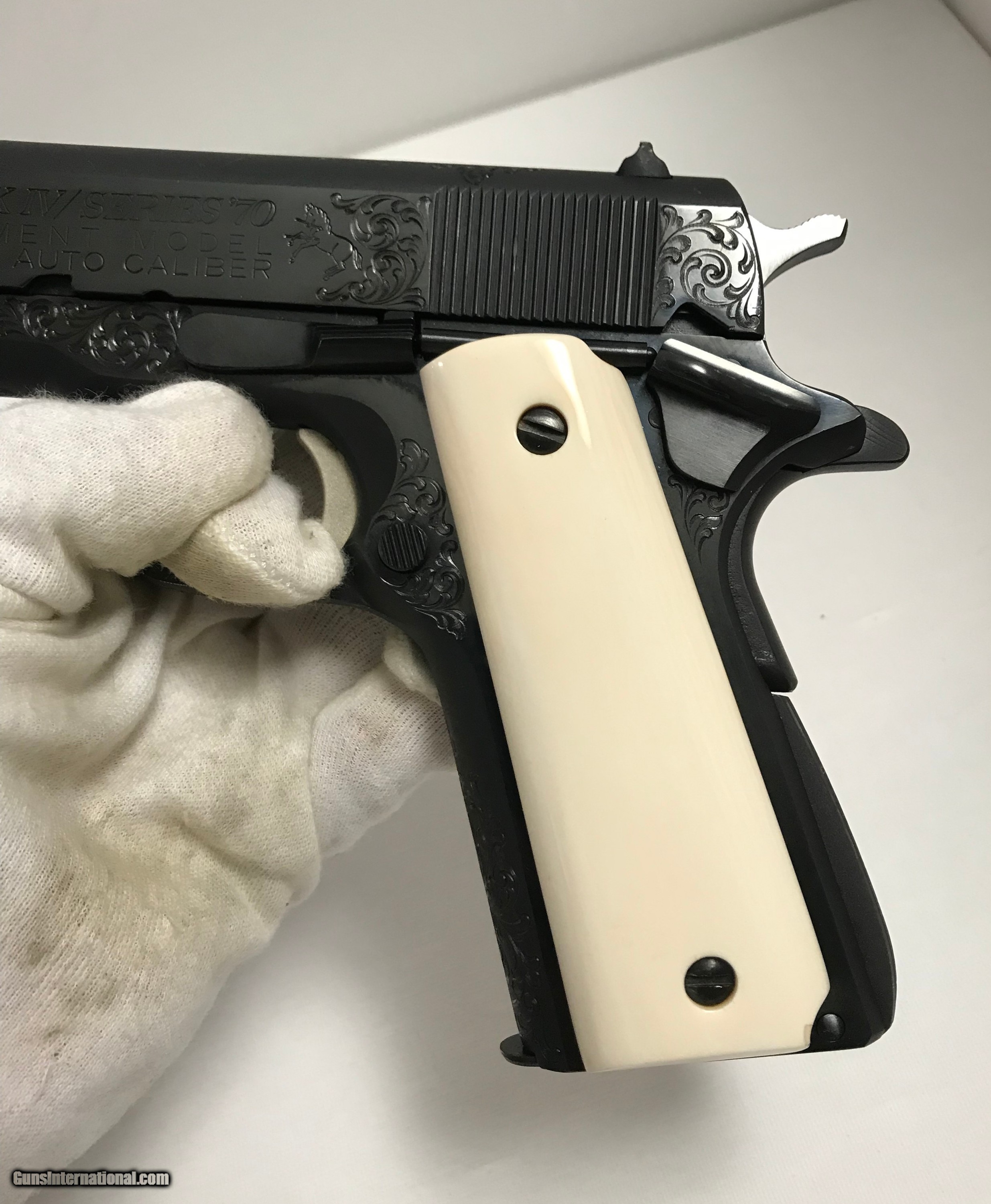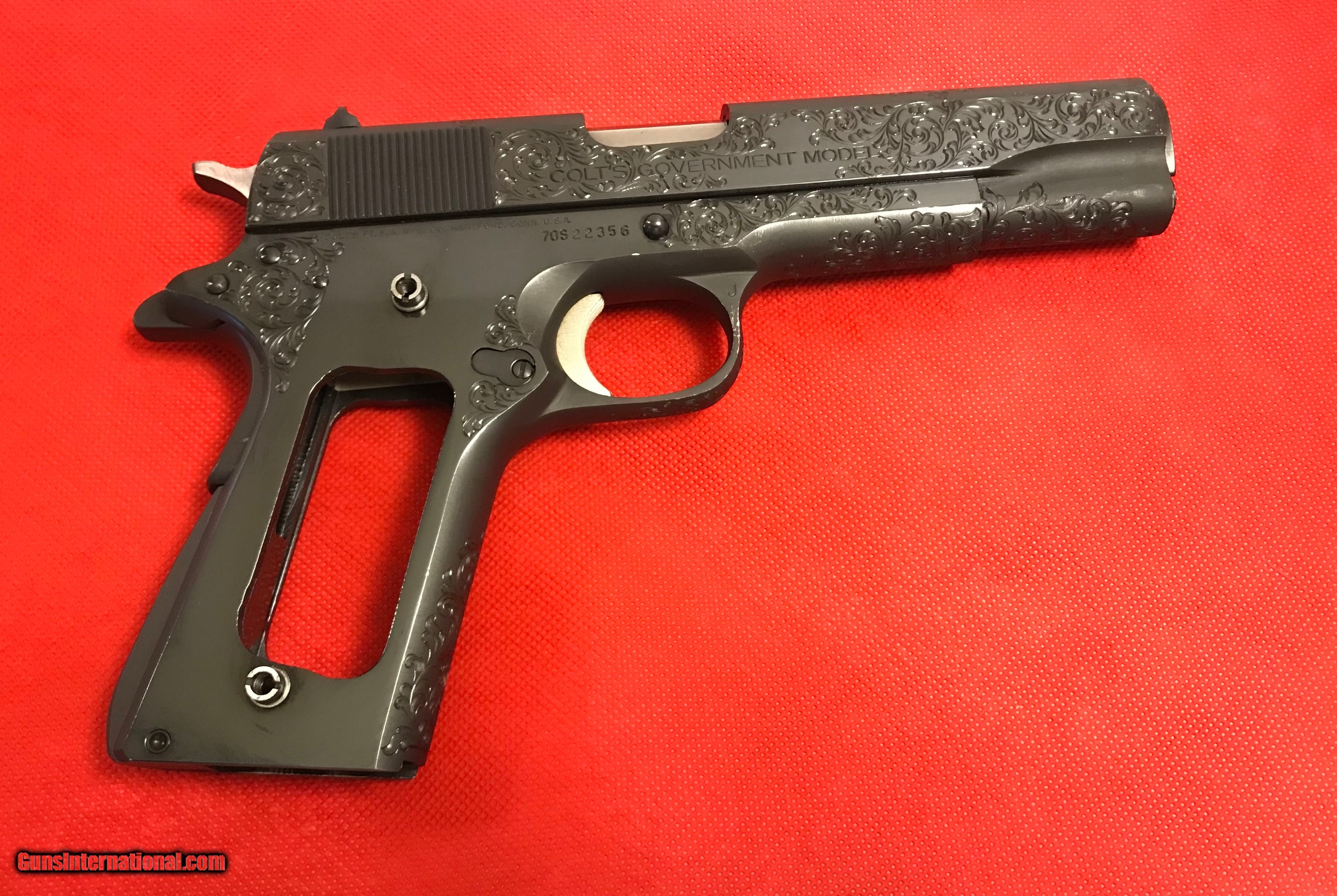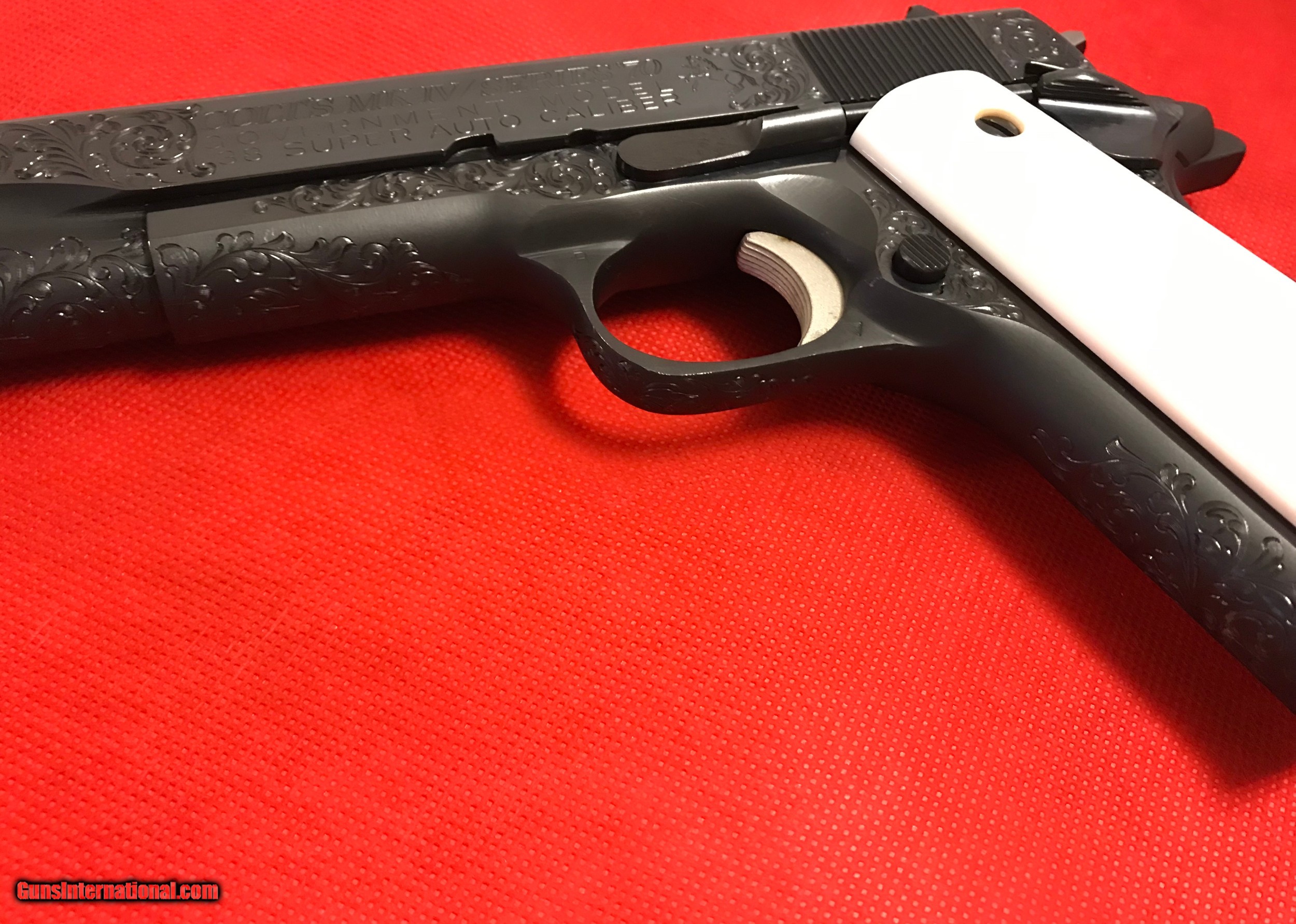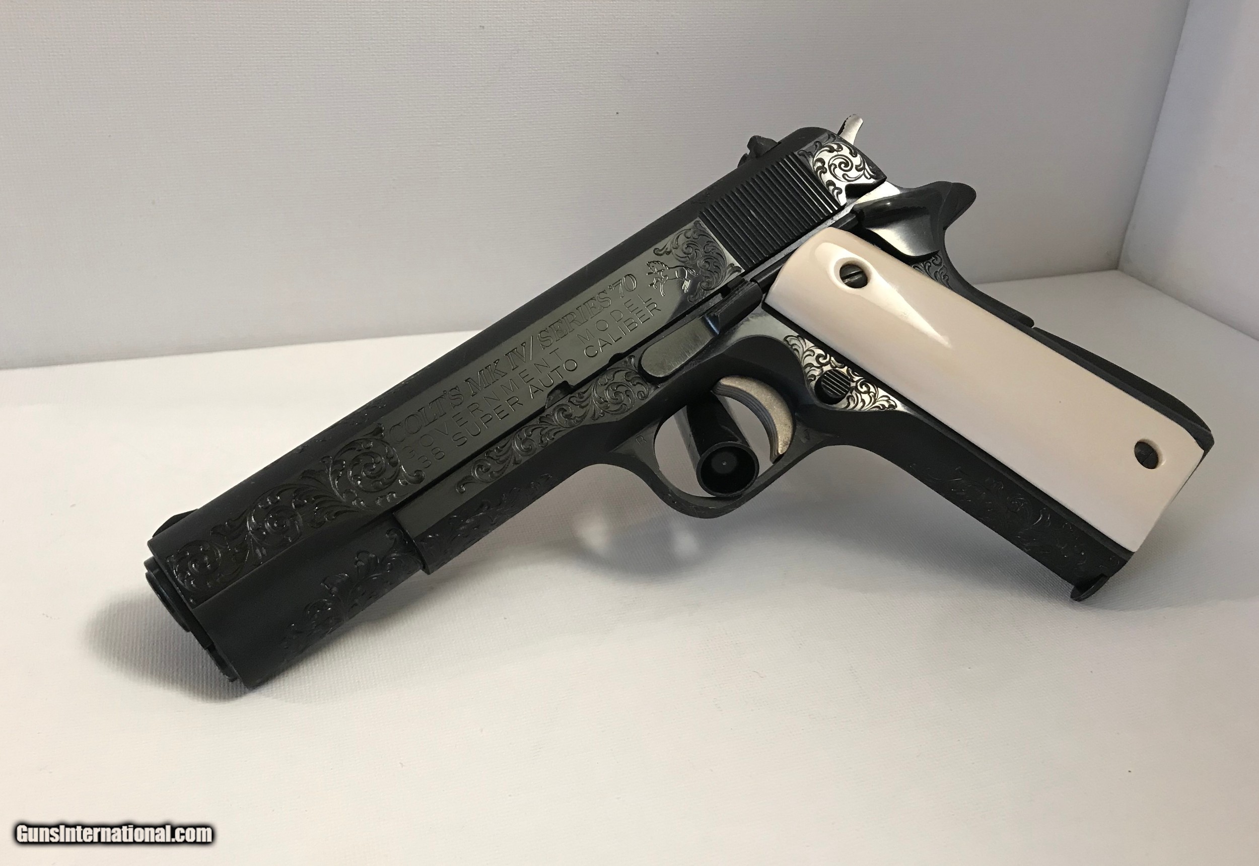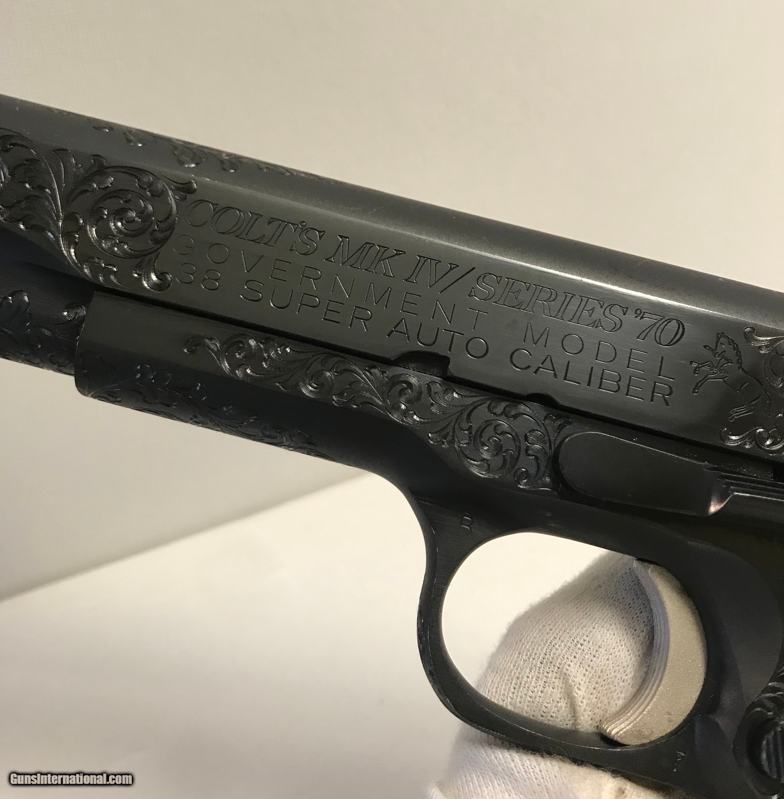Description: Colt .38 Super MK/IVSERIES 70 Factory Engraved, Dont miss out on owning a rare collectors pistol 100% factory original or money back guaranteed. As we all know not many 1911's were engraved by colt not mention in the rare .38 super caliber. Pistol in in very good condition except by the trigger guard shows some handling wear. Feel free to ask any questions or request additional pictures. SOLD |