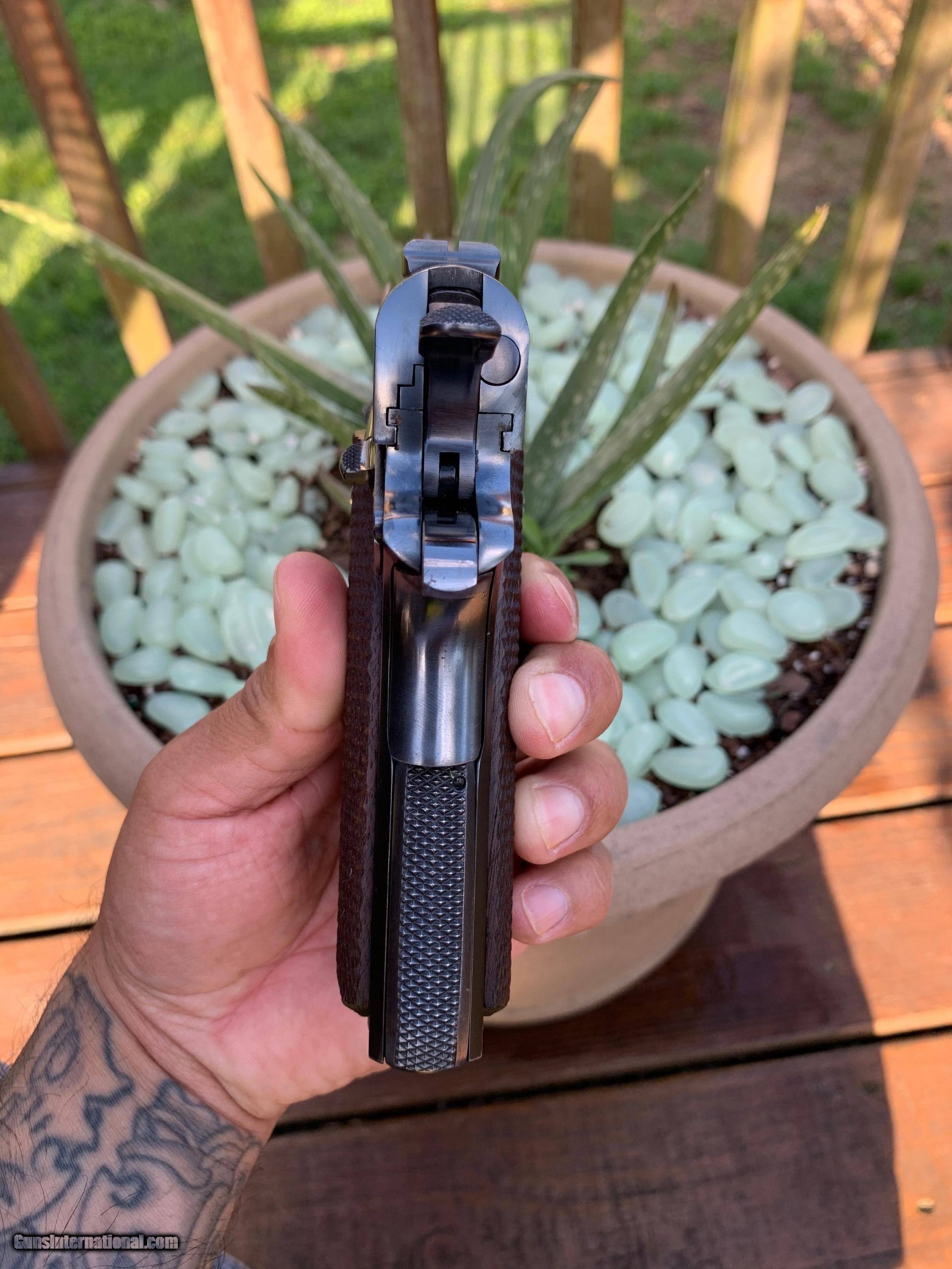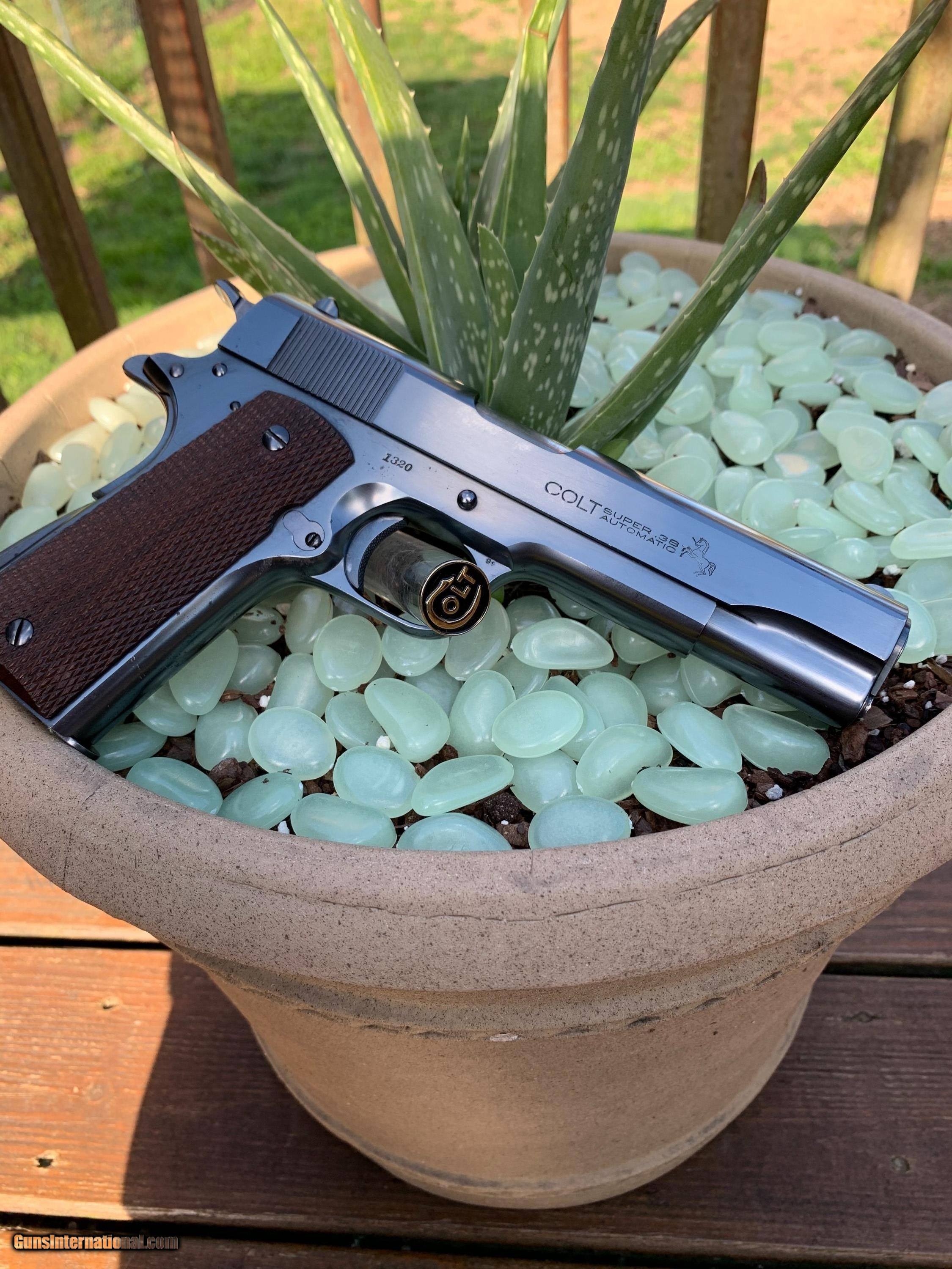 Description: First year of production 1929 Colt 38 Super in great condition! Low serial number 1320 one of the first 2500 produced, narrow front sight,no markingson the barrel, mag plate marked 38 auto. This is one of the nicest looking guns I've owned in the past produced in 1929. I'm really looking to trade for a supermatch but will listen to all trades. This pistol is 91 years old. SOLD Curio/Relic: Yes |