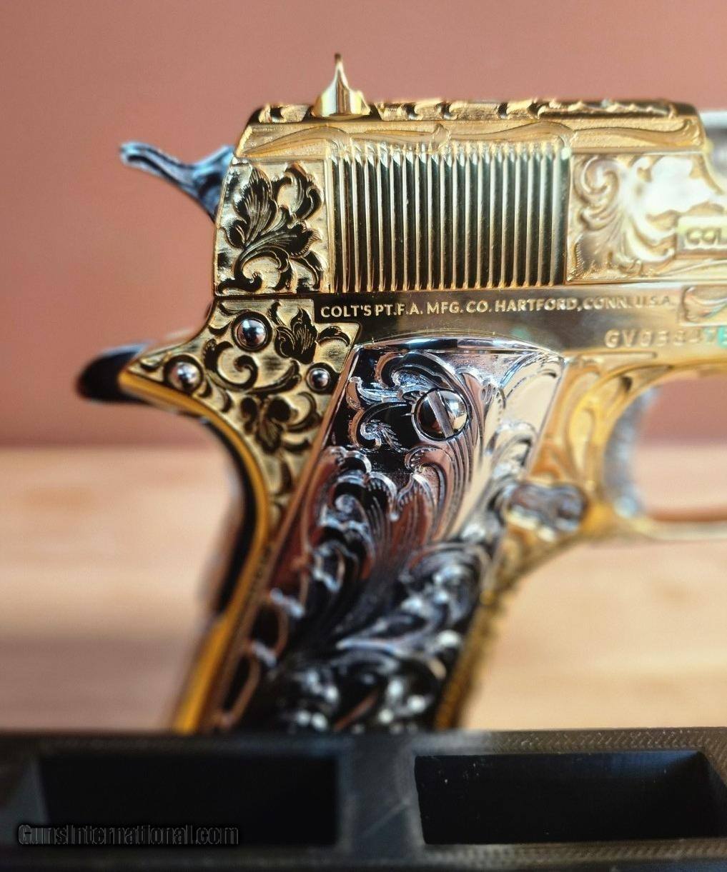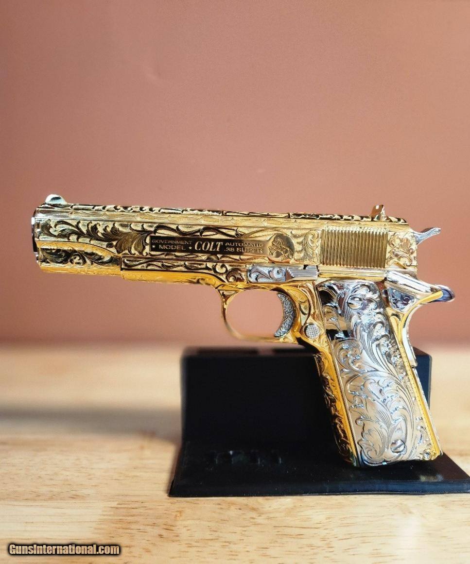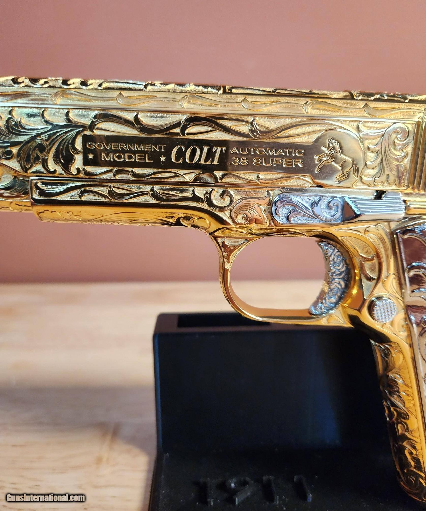 Colt .38 Super fully engraved 24k yellow gold with nickel small parts. Amazing!!!
