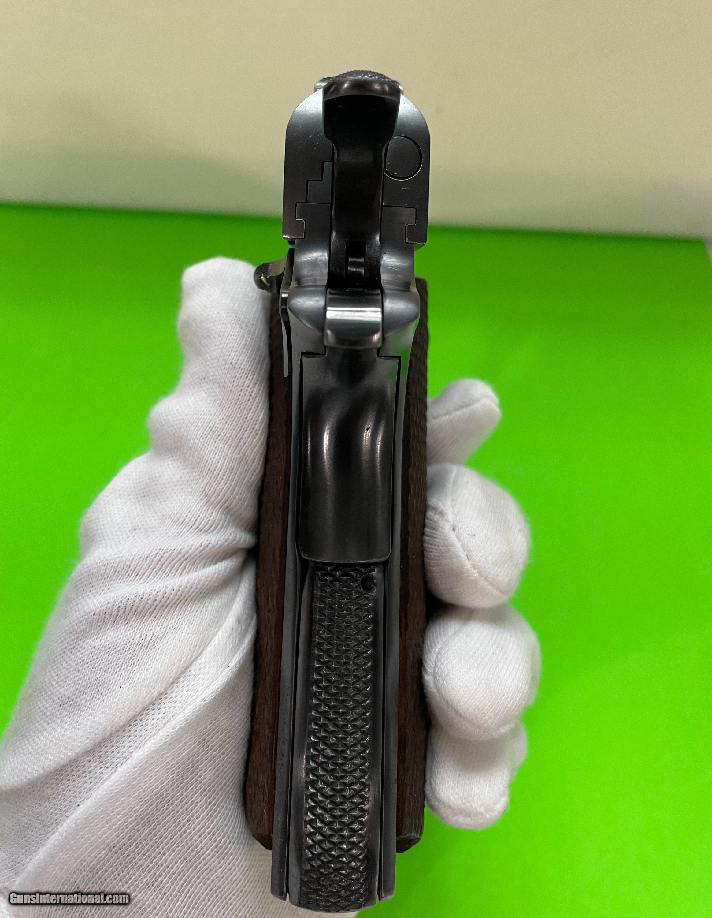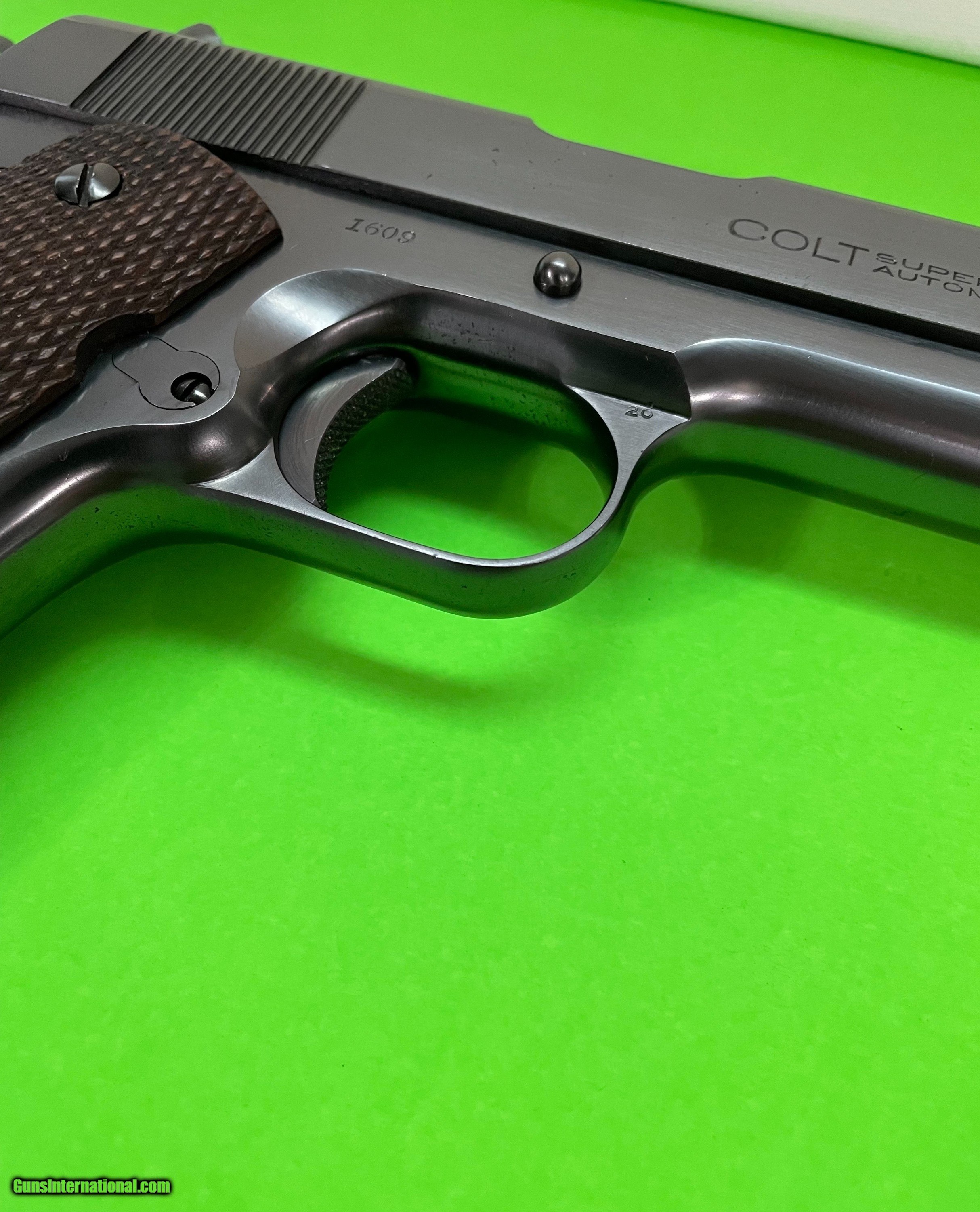 Description: HIGH CONDITION FIRST YEAR OF PRODUCTION LOW SERIAL NUMBER PRE WAR SUPER 38. This pistol is a must for a collector,high condition with matching numbers on frame and slide. This is an all original finish also as you notice it comes with first variation magazine marked 38 Auto, not Super. Please view all pictures and rate for yourself, additional pictures are availabe upon request. C&R, and California Compliant. SOLD Curio/Relic: Yes |