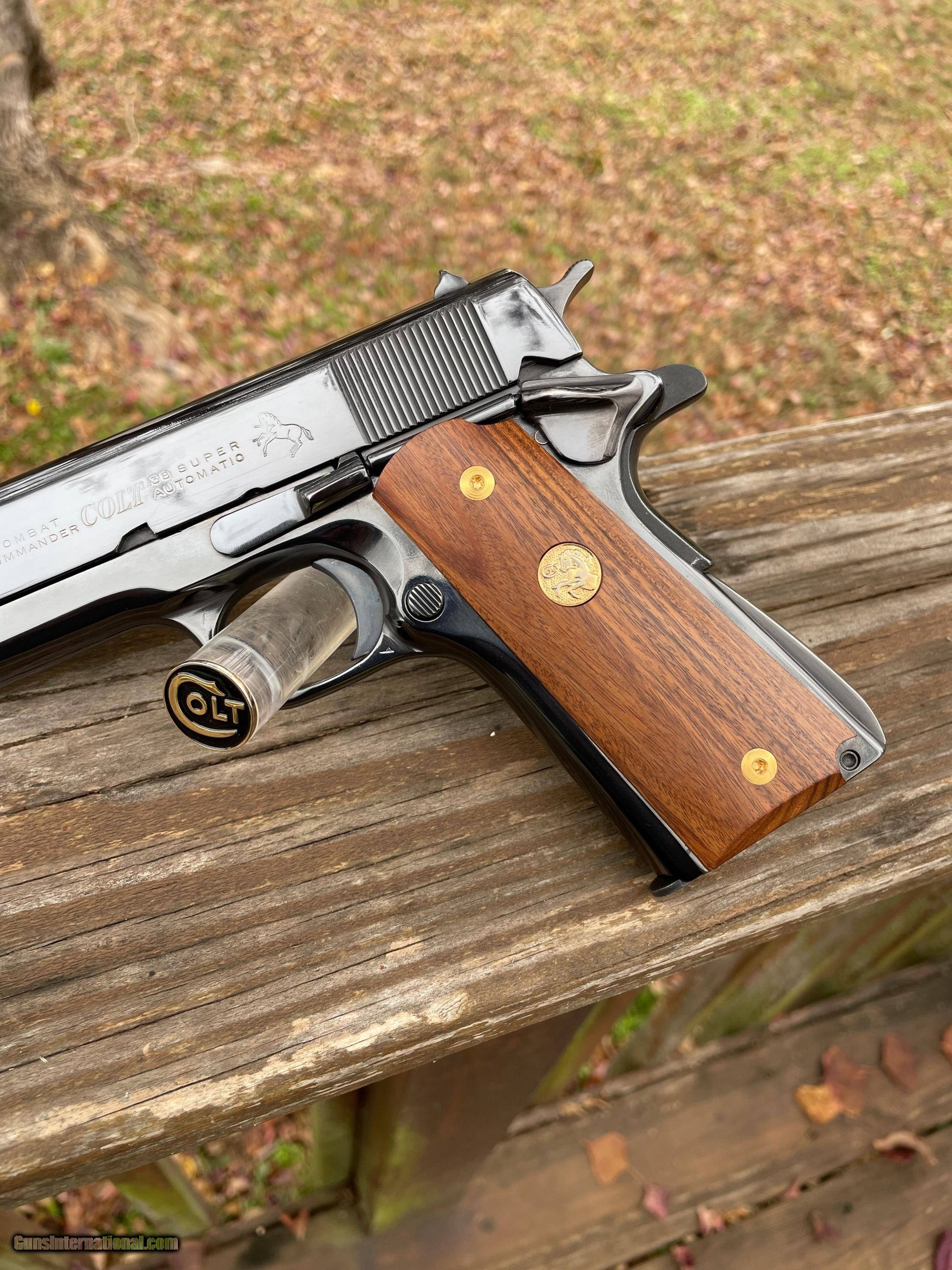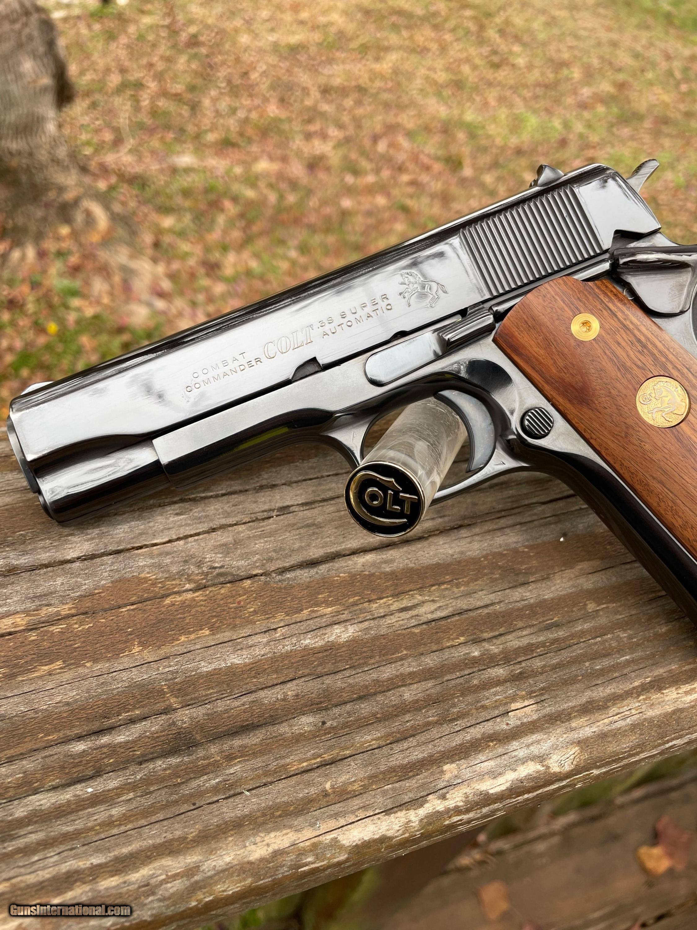 Description: 1976 Colt Combat Commander in the desirable caliber Super .38. Pistol has been refinished in a beuatiful royal blue. Not Califonia Compliant. SOLD |
