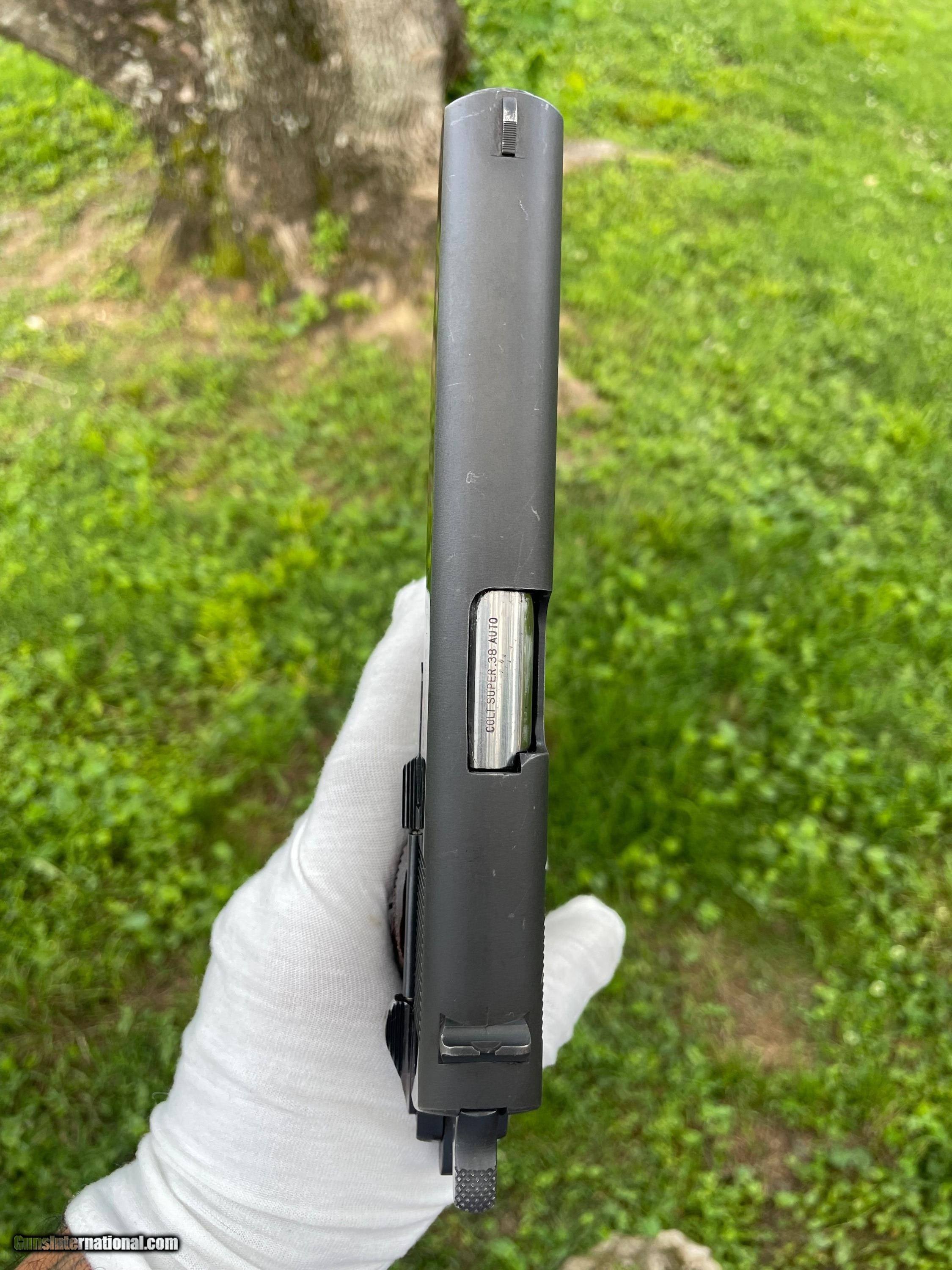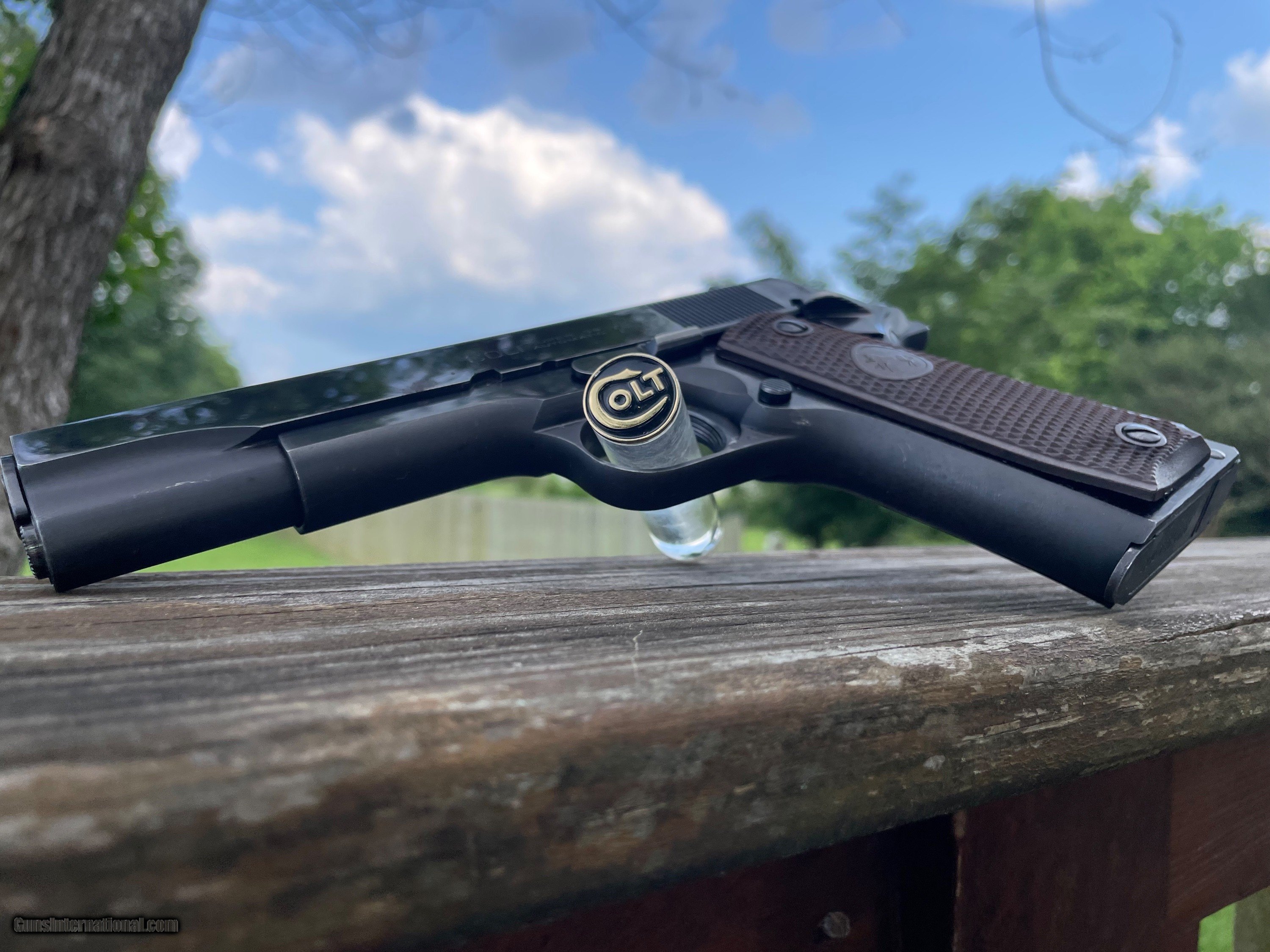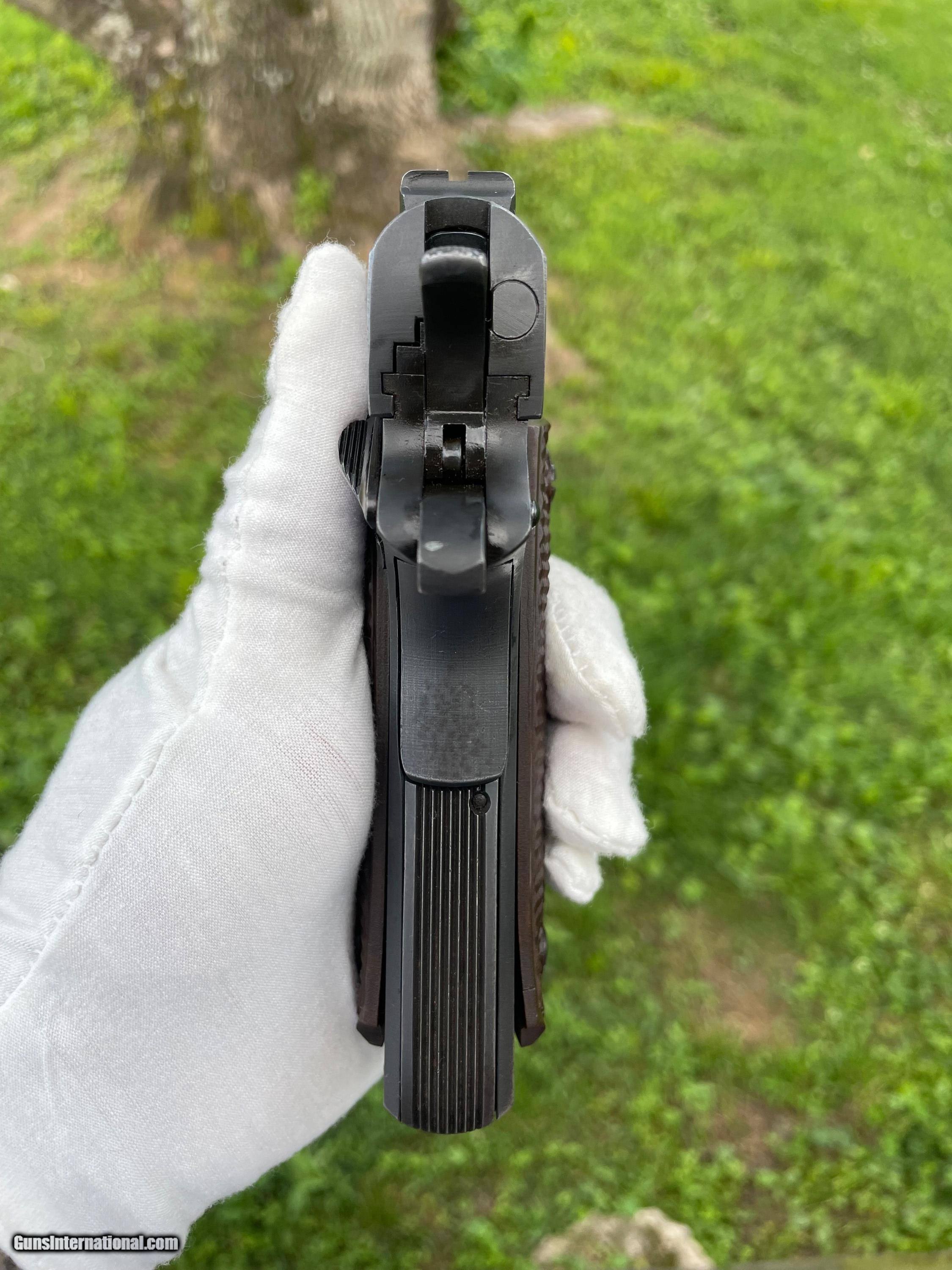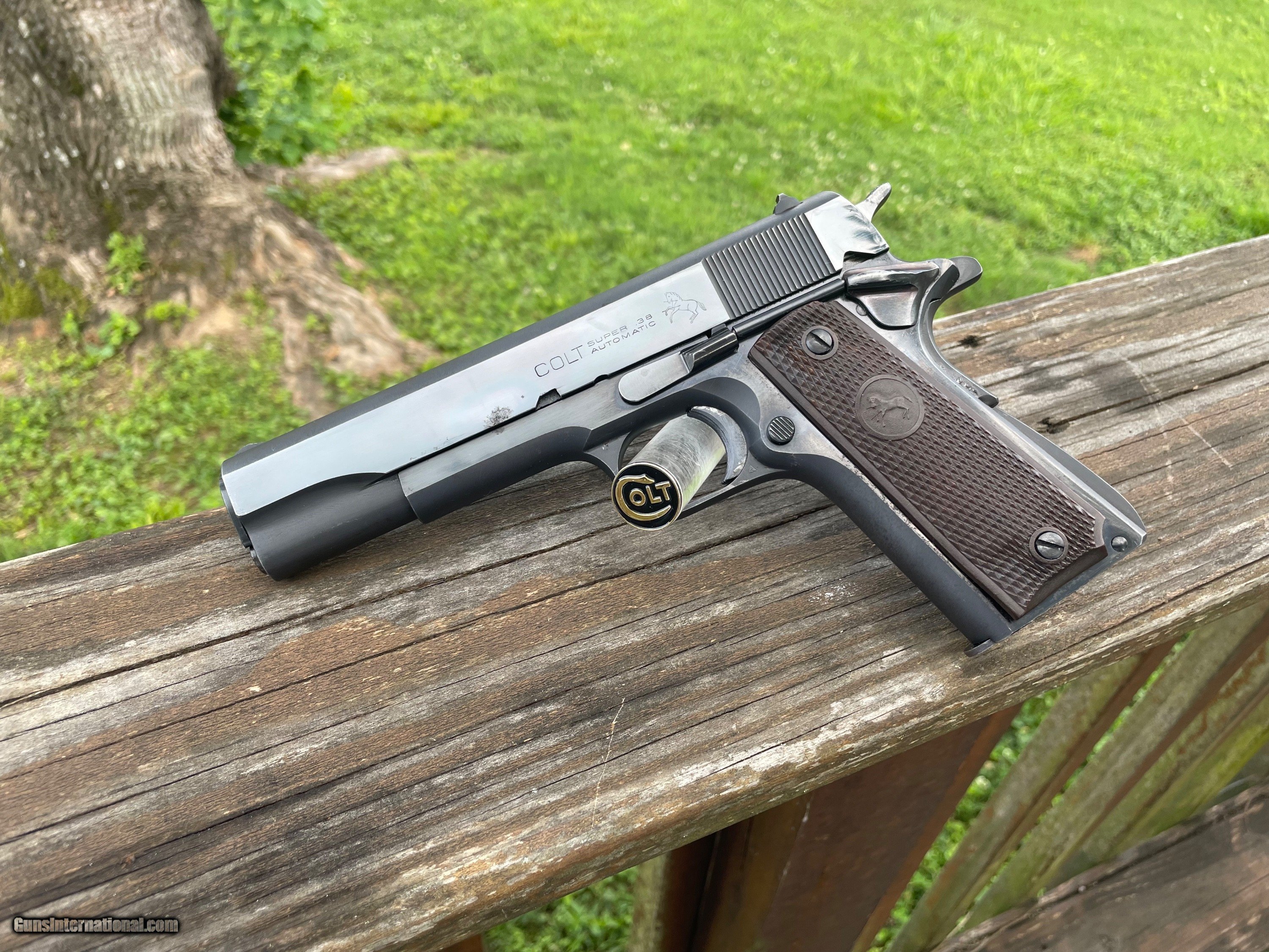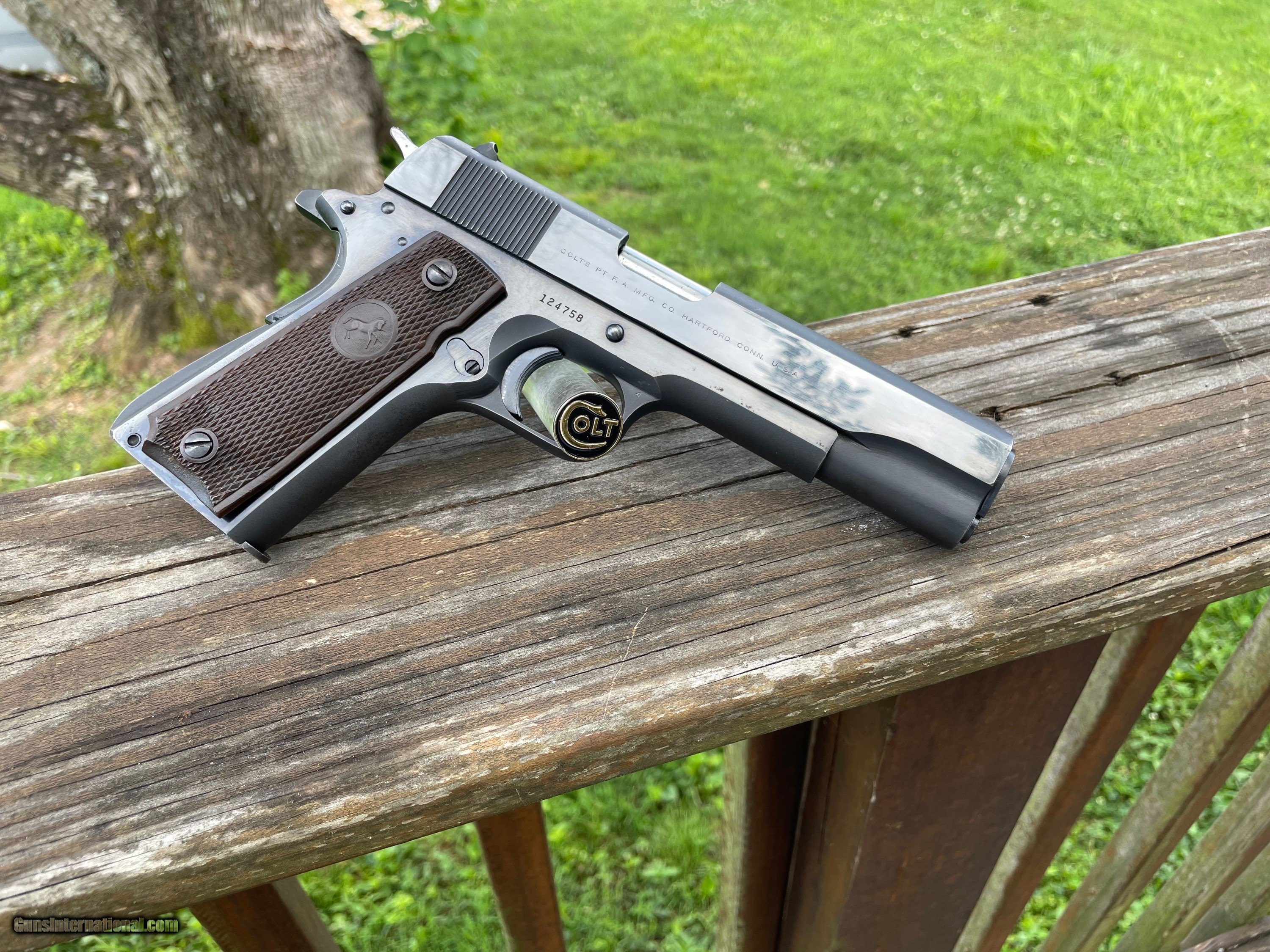 Description: We have a Colt .38 Super dating back to 1957 making a Third model with a thin and correct barrel,checkered hamme. As you can see it's all original showing some wear also notice the grips have shrunk or someone has tried to heat them in the past to stretch, it also shows some very light pitting on one left side. Cali Compliant. Free Shipping w/buy now. SOLD Curio/Relic: Yes |